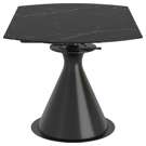 L´utilité et le style s´unissent en quelques tours de main. Cette table passe d´une table spacieuse en forme de stade à une table ronde de grand diamètre en quelques secondes il suffit de tourner le dessus de table d´une seule main quelques fois.