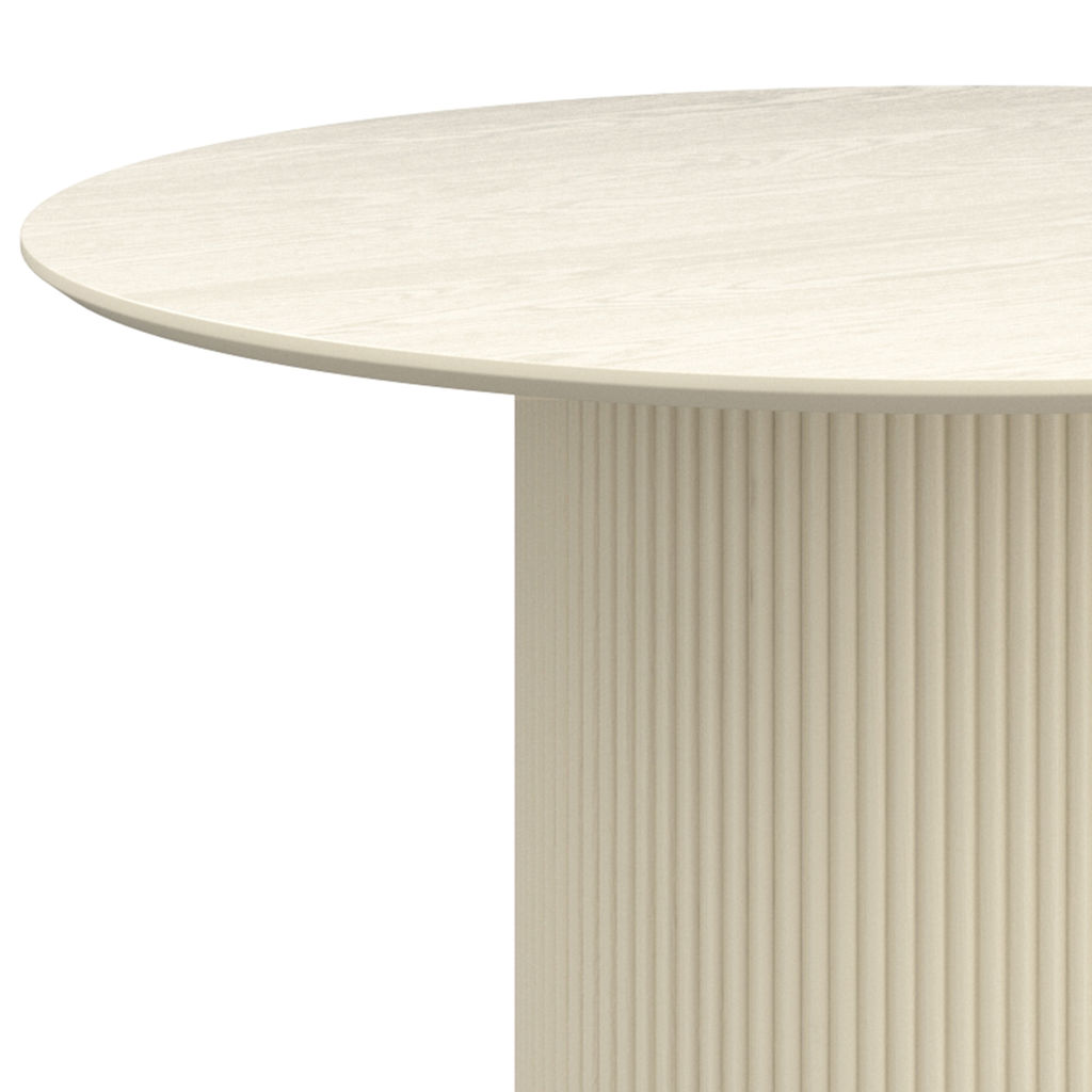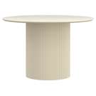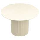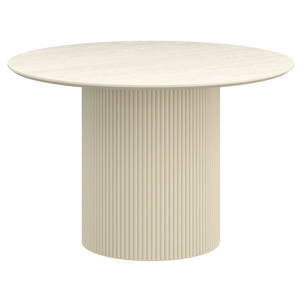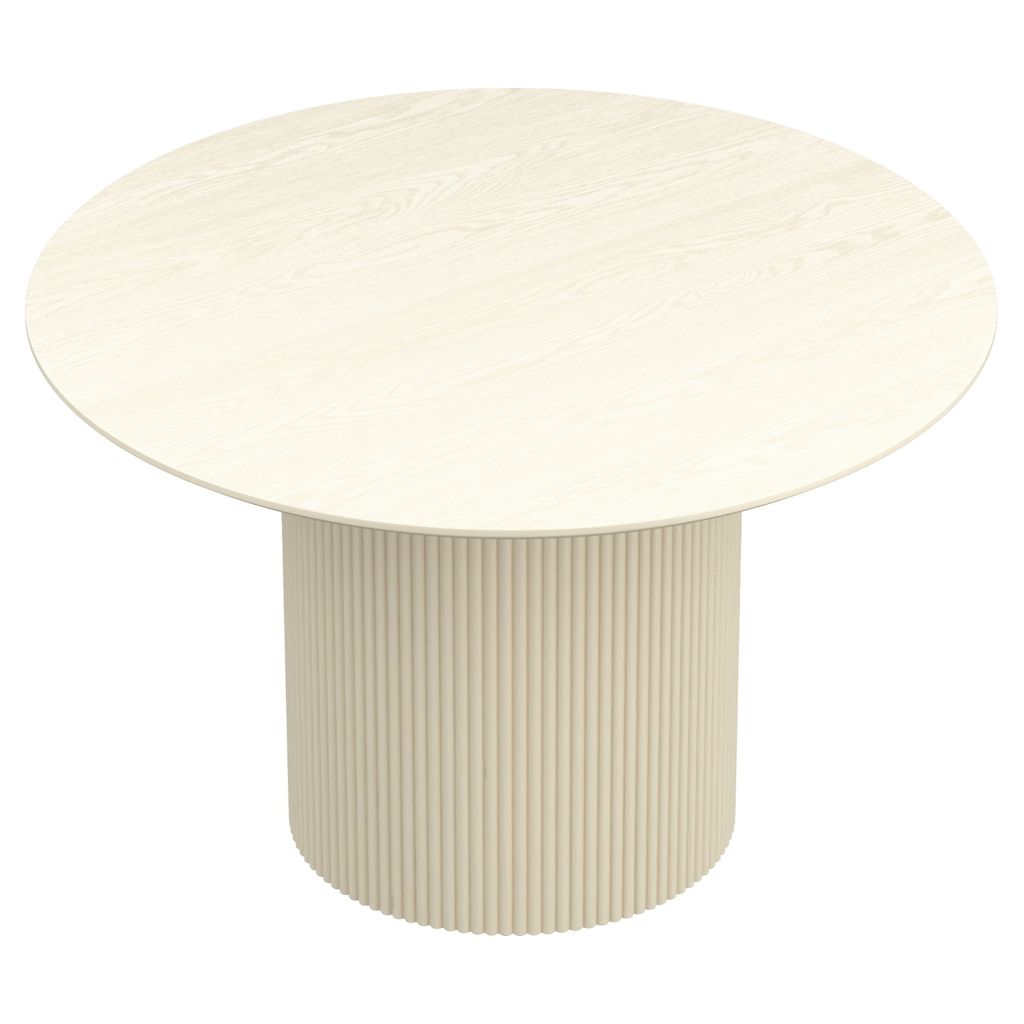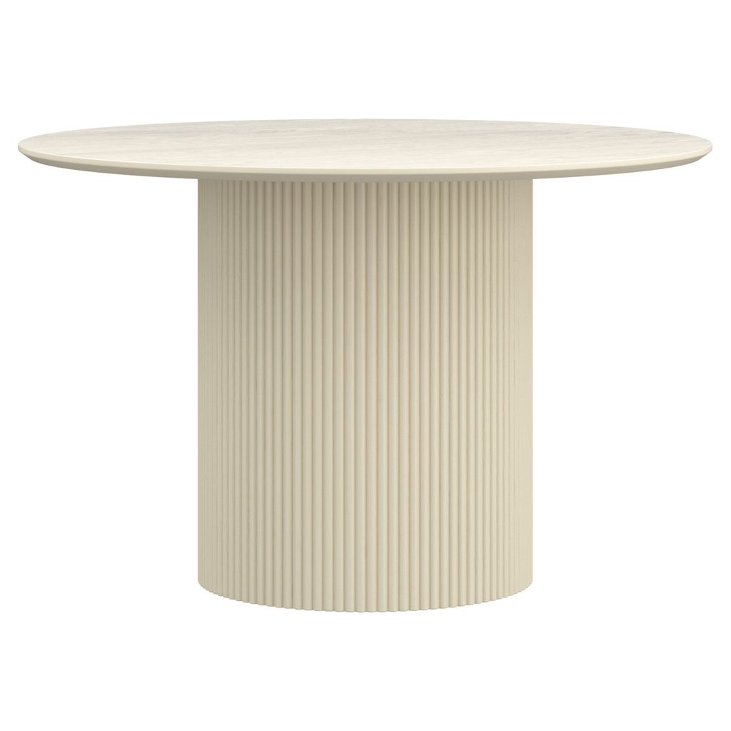 Arborant une base en bois joliment cannelée, cette table dégage un charme intemporel, offrant un point central élégant pour tout espace de salle à manger.