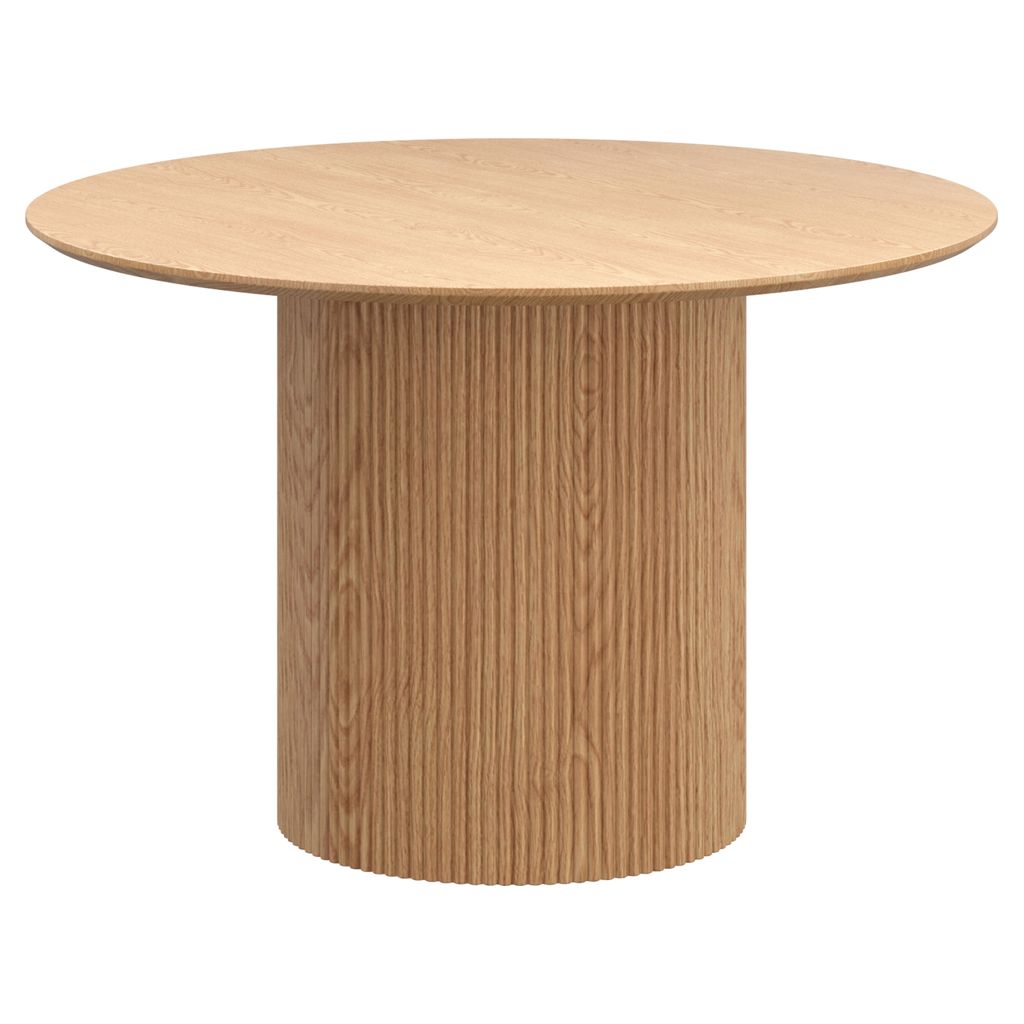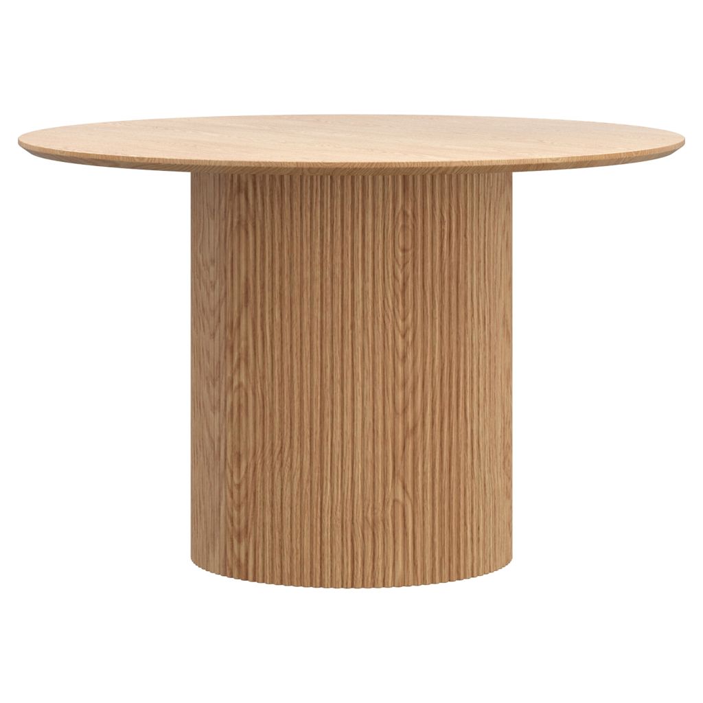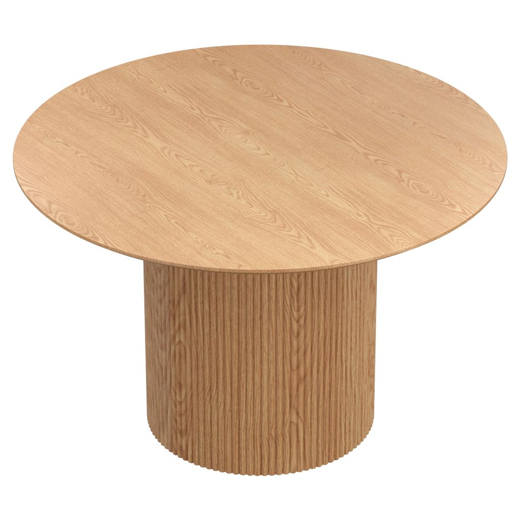 Arborant une base en bois joliment cannelée, cette table dégage un charme intemporel, offrant un point central élégant pour tout espace de salle à manger.