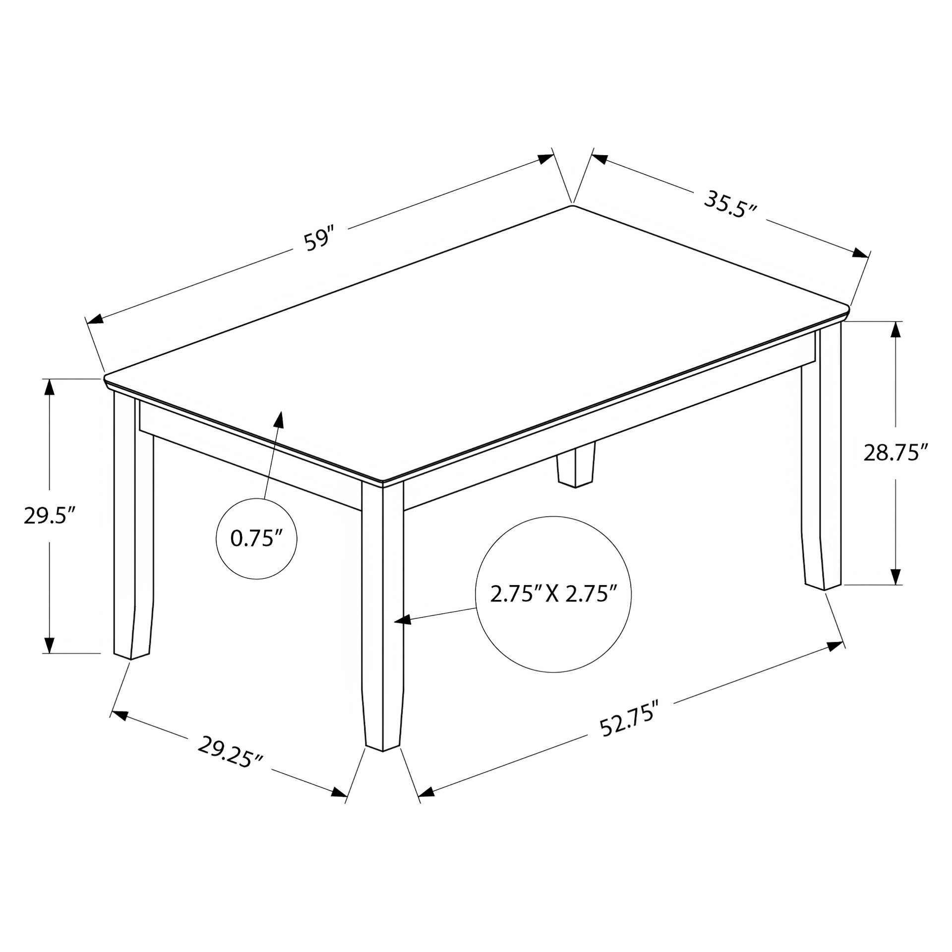 • Longueur de la table : 59 po