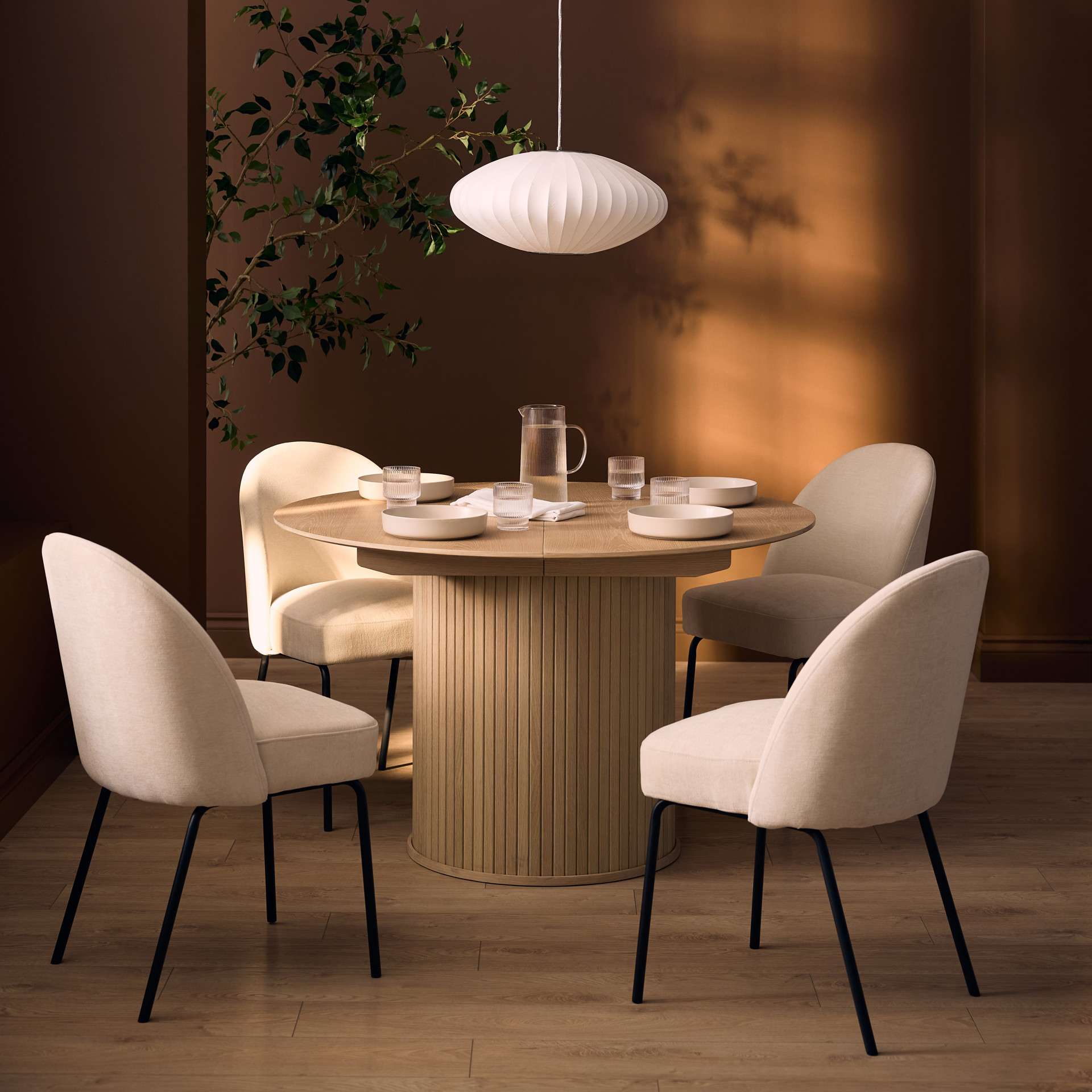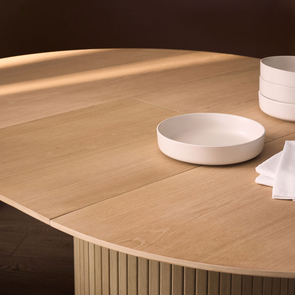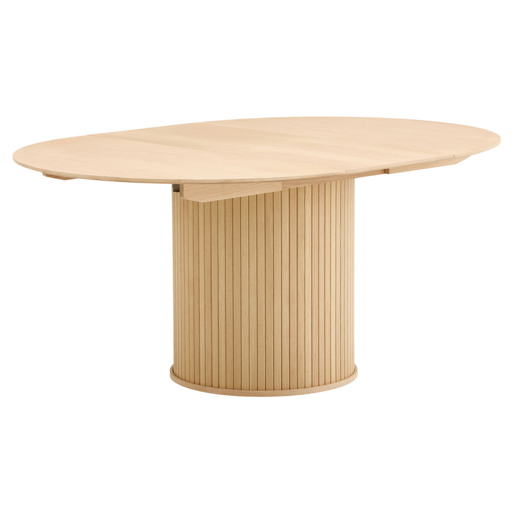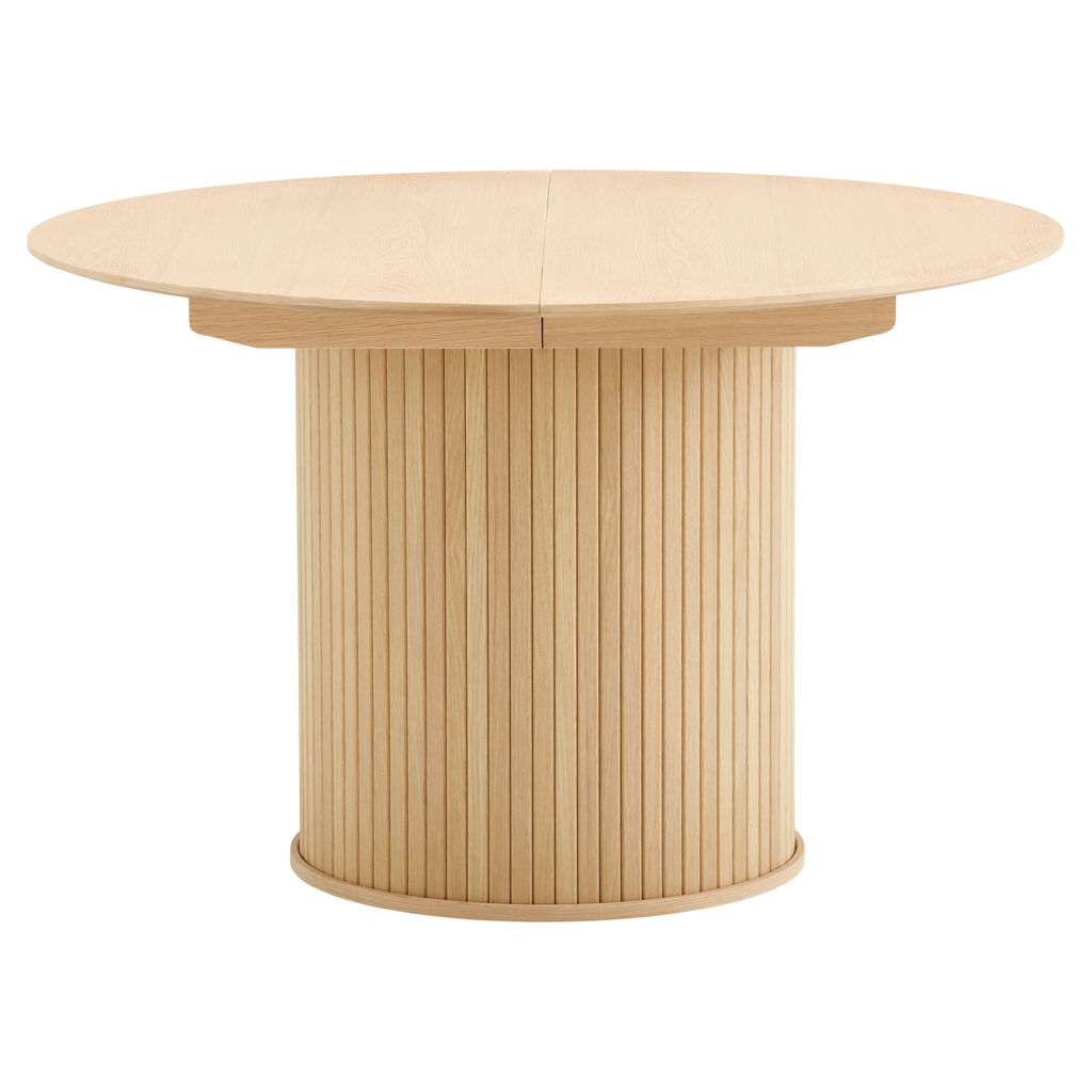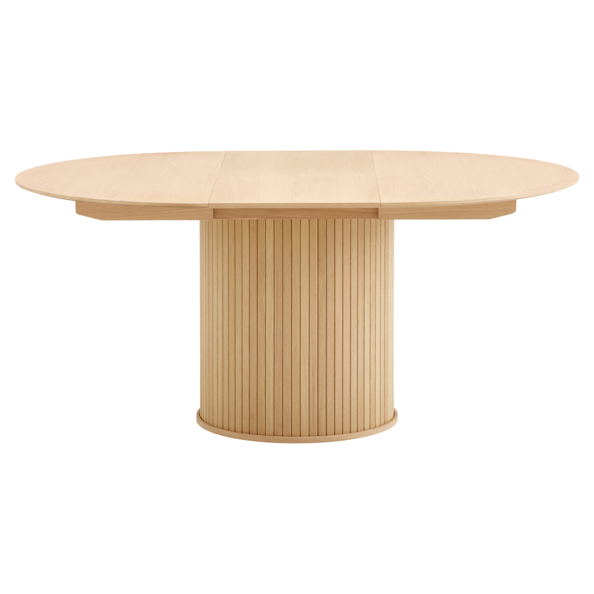 Créez un espace repas accueillant et sophistiqué avec cette magnifique table au design unique. Son piédestal central orné de cannelures verticales apporte une touche architecturale distinctive, tandis que sa finition en bois naturel réchauffe instantanément votre salle à manger.