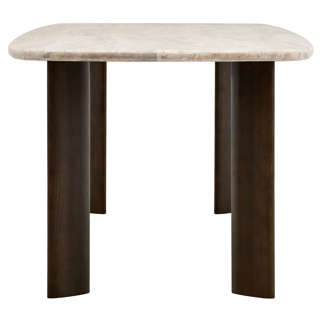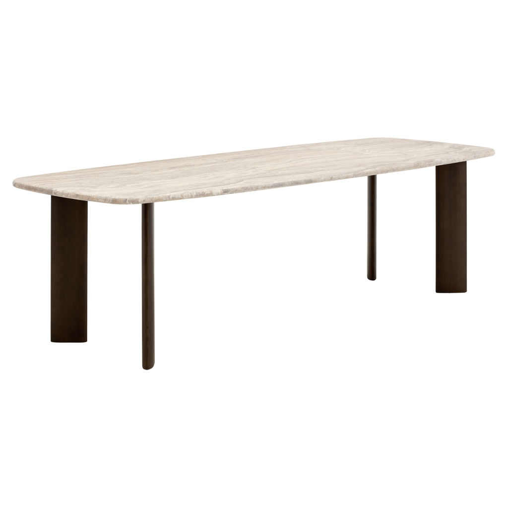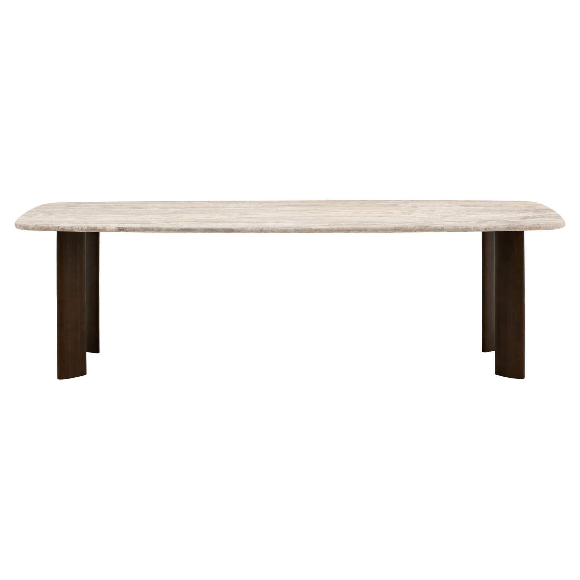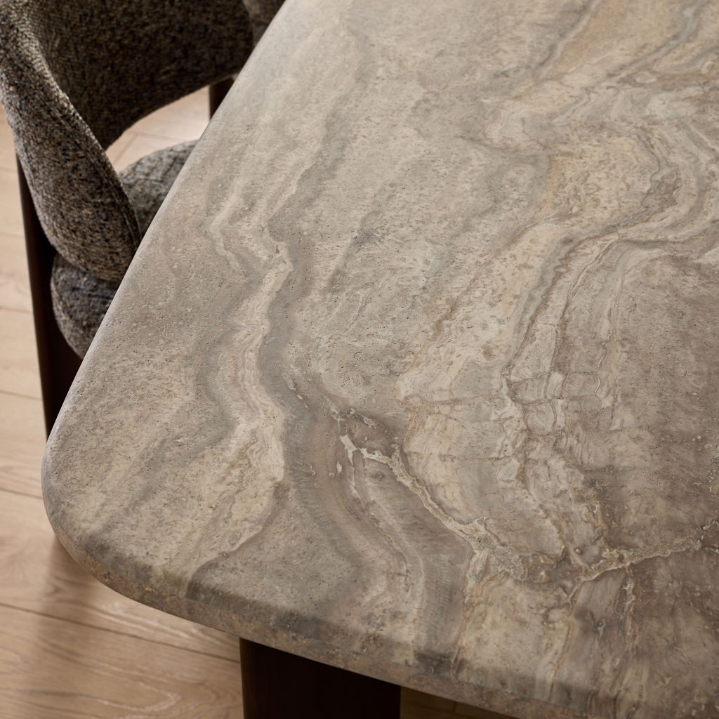 Découvrez la table à manger Shoku, où élégance et design moderne se marient. Avec son superbe plateau en marbre travertin gris argenté, cette table sublimera n'importe quel espace repas. Ses bords incurvés apportent une touche de douceur, invitant à la chaleur et à l'intimité lors de vos réceptions.