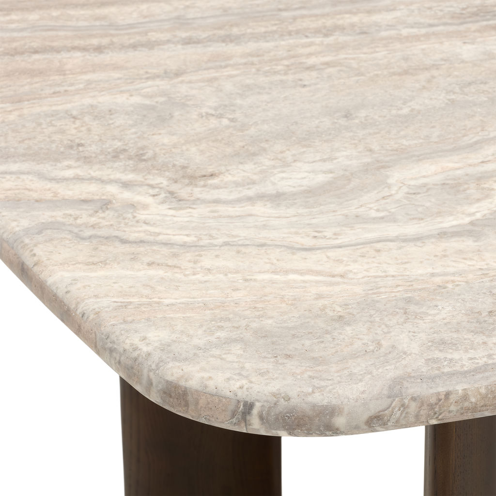 Fabriqués avec précision, les pieds en frêne ébène, d'une belle couleur, sont inclinés pour créer une esthétique épurée et minimaliste qui s'harmonise avec la surface luxueuse en marbre.
