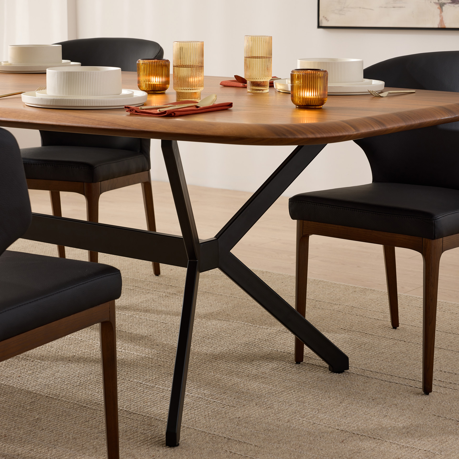Son design mid-century aux influences scandinaves apporte une touche de sophistication naturelle. La forme organique du piètement contraste harmonieusement avec la géométrie du plateau, créant un équilibre visuel saisissant.