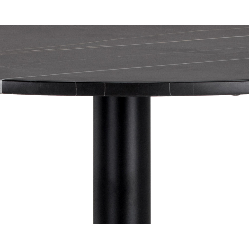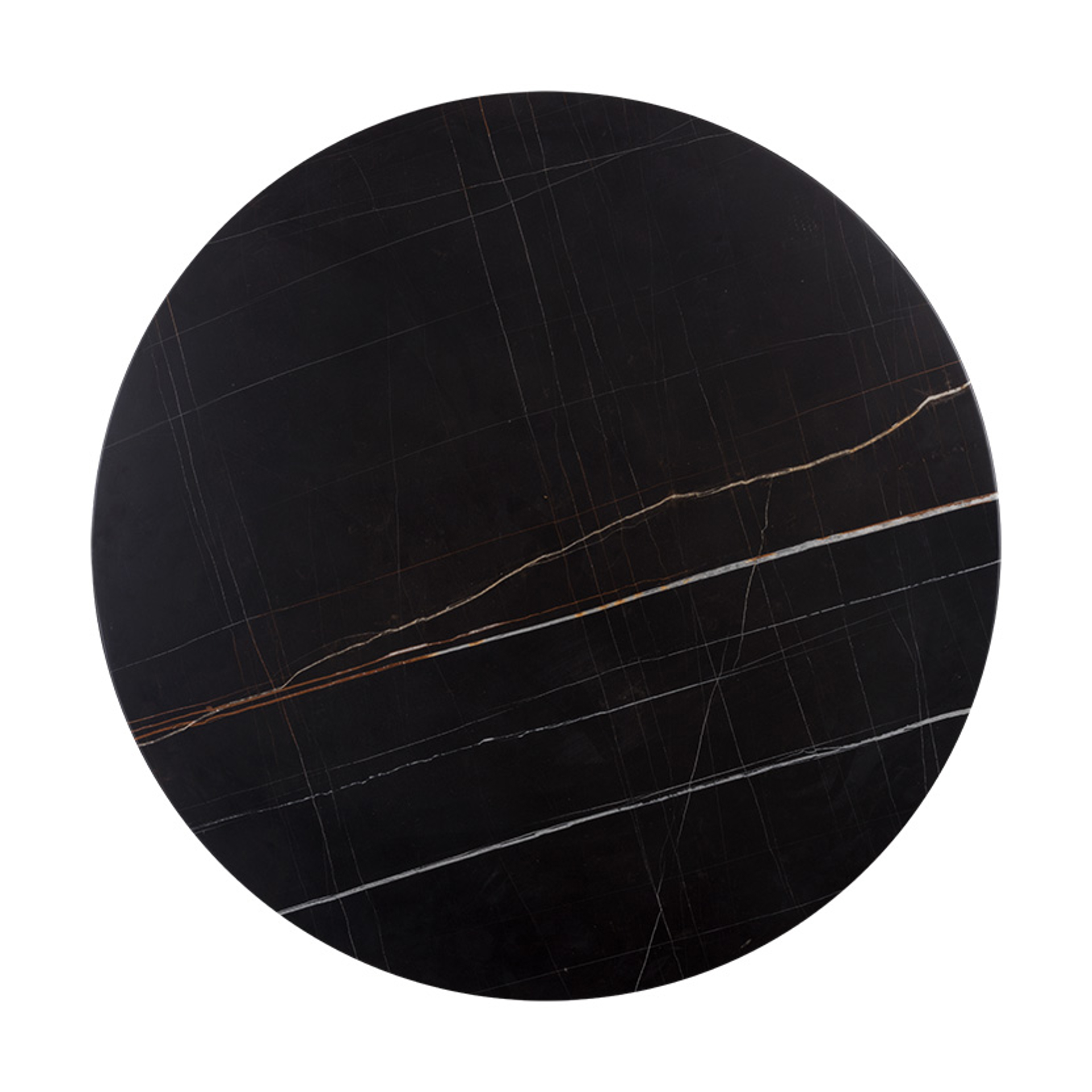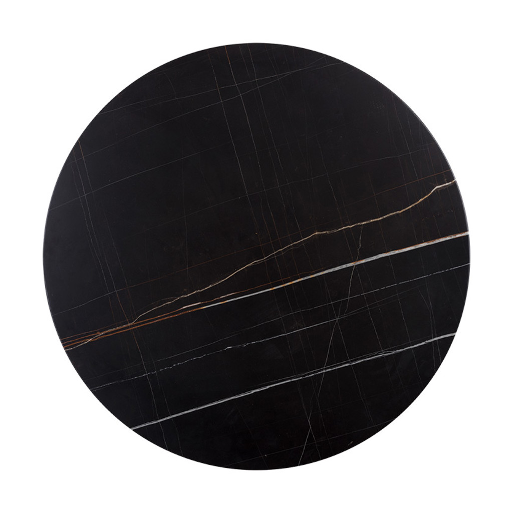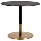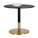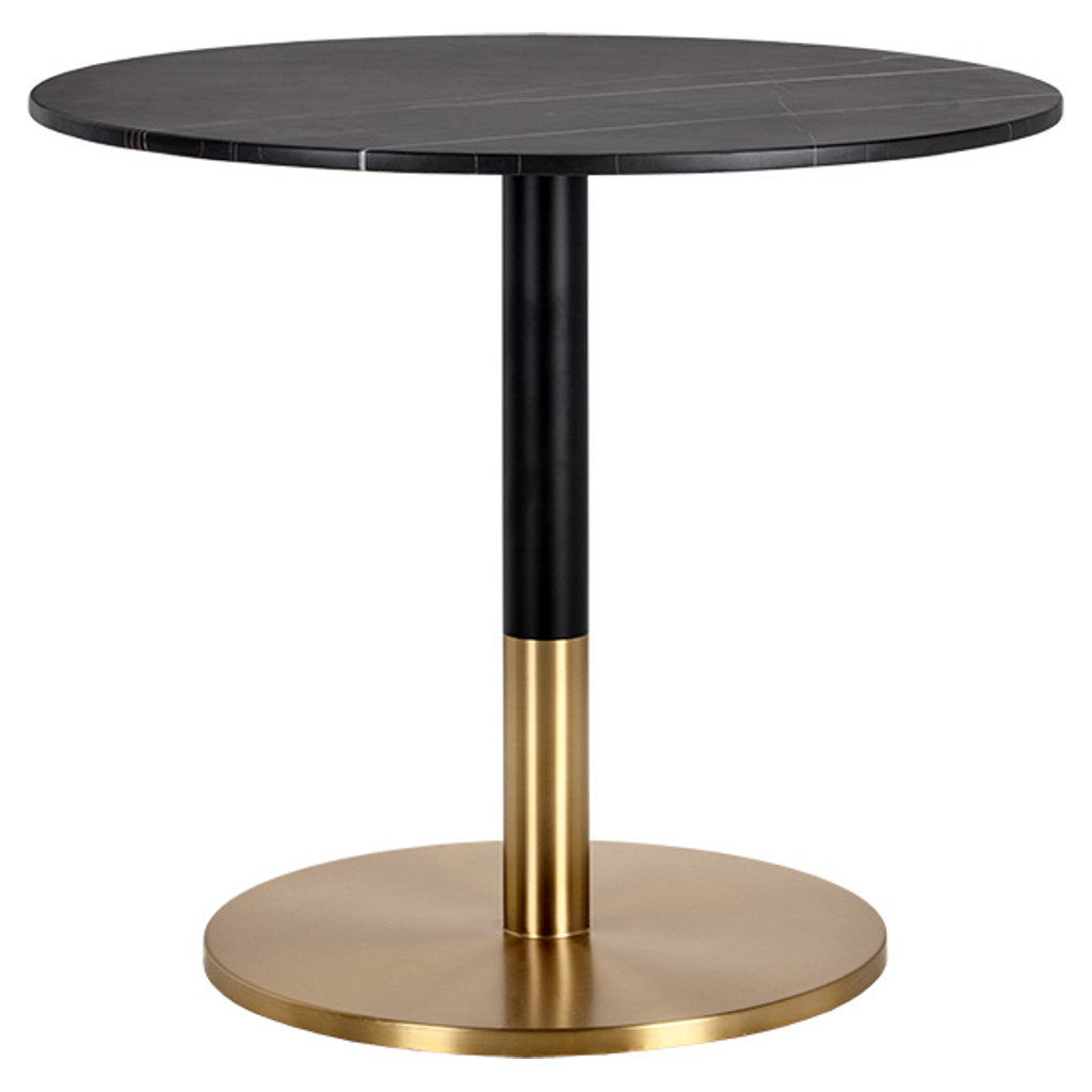 Une table de bistrot ronde de notre collection Ikon inspirée du luxe Art Déco. Comprend un dessus en marbre avec des veines dorées et blanches frappantes et une base en acier. Parfait pour les petites cuisines et salles à manger. Le marbre étant un matériau naturel, veines uniques, piqûres, fissures, micro-fissures et variations de couleur sont toutes des caractéristiques qui ajoutent à l'unicité et à la beauté de chaque pièce.