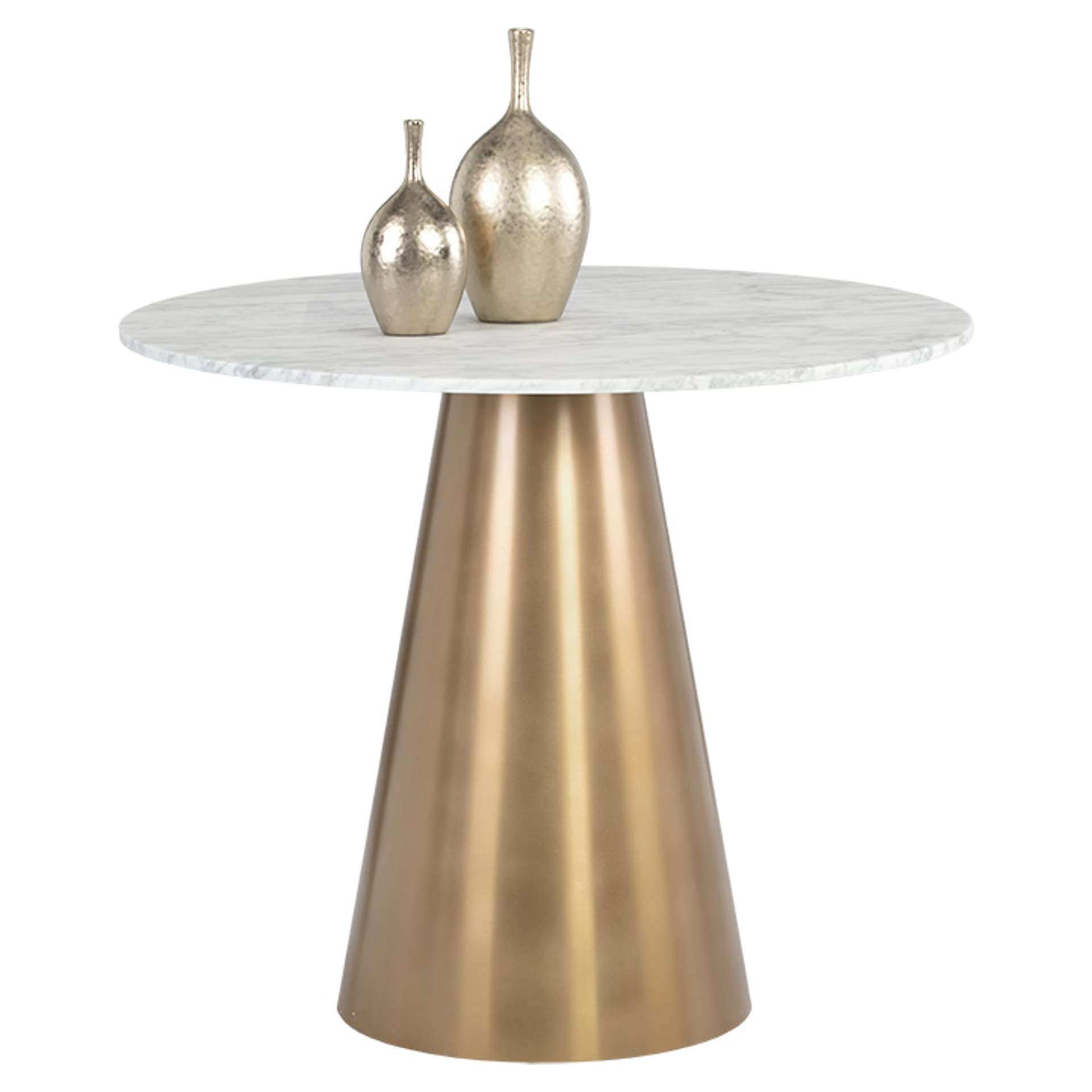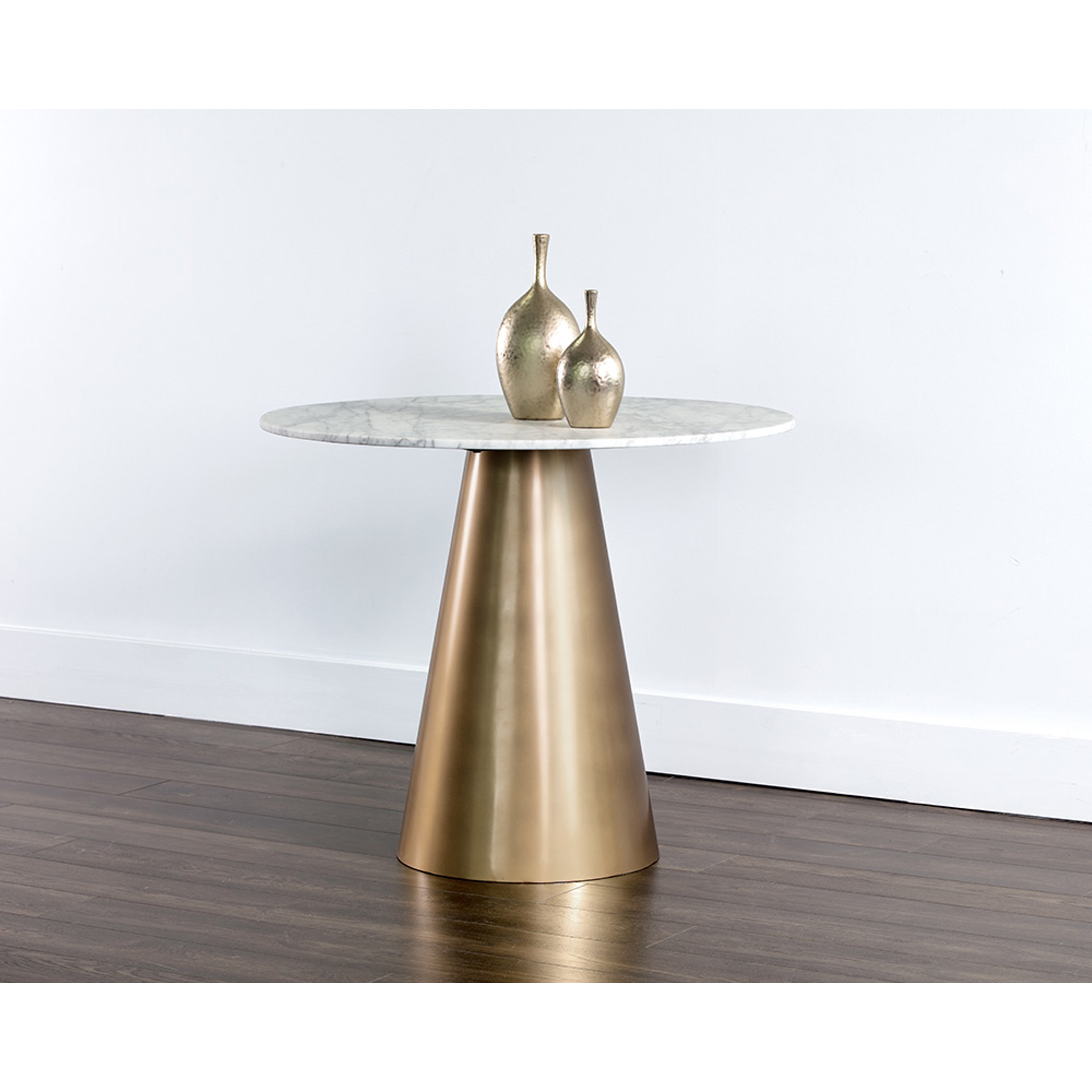 Une table de bistrot effilée absolument magnifique de notre collection Ikon. Fabriqué avec une base au fini or brossé et un superbe dessus en marbre pour rehausser tout espace de salle à manger ou de salon contemporain.