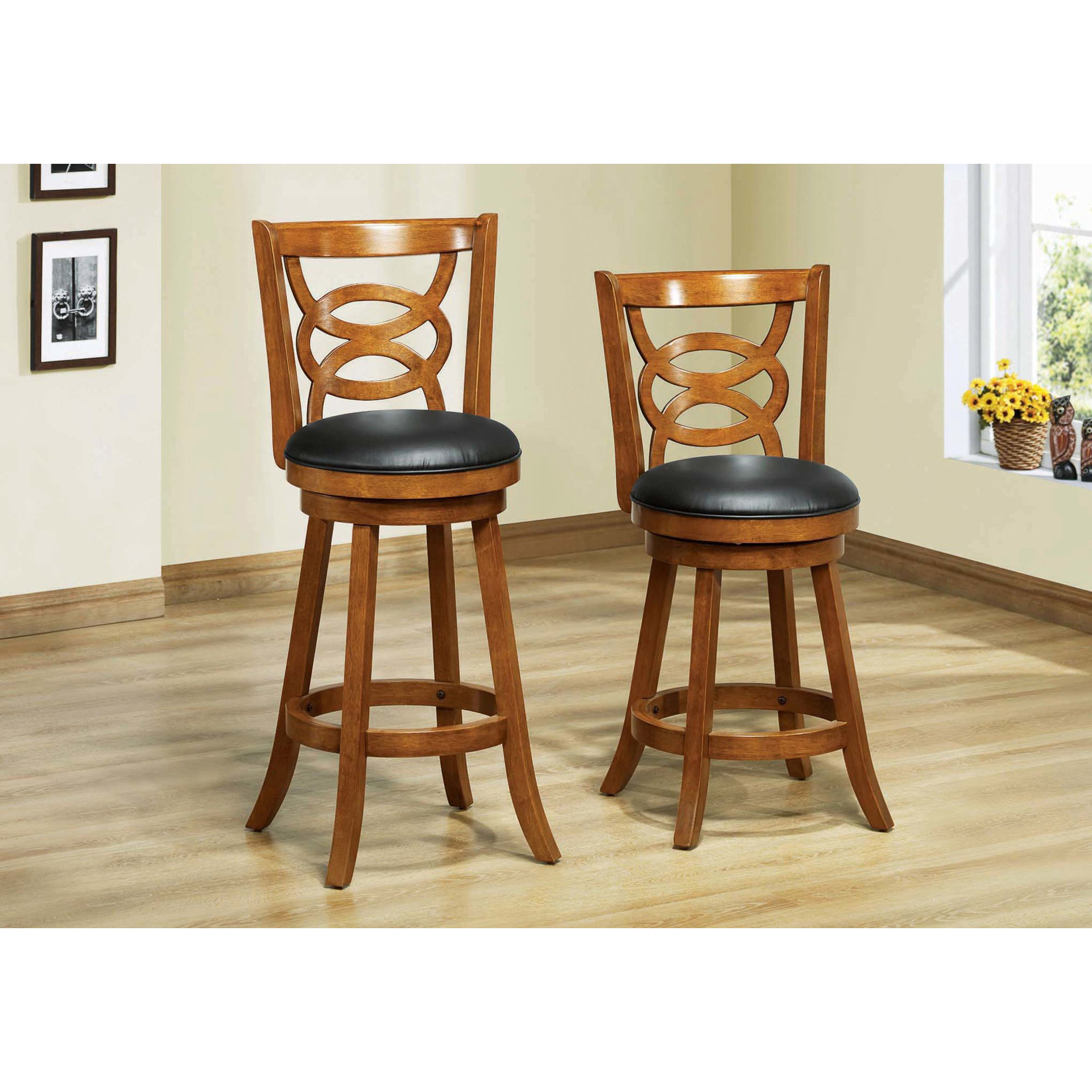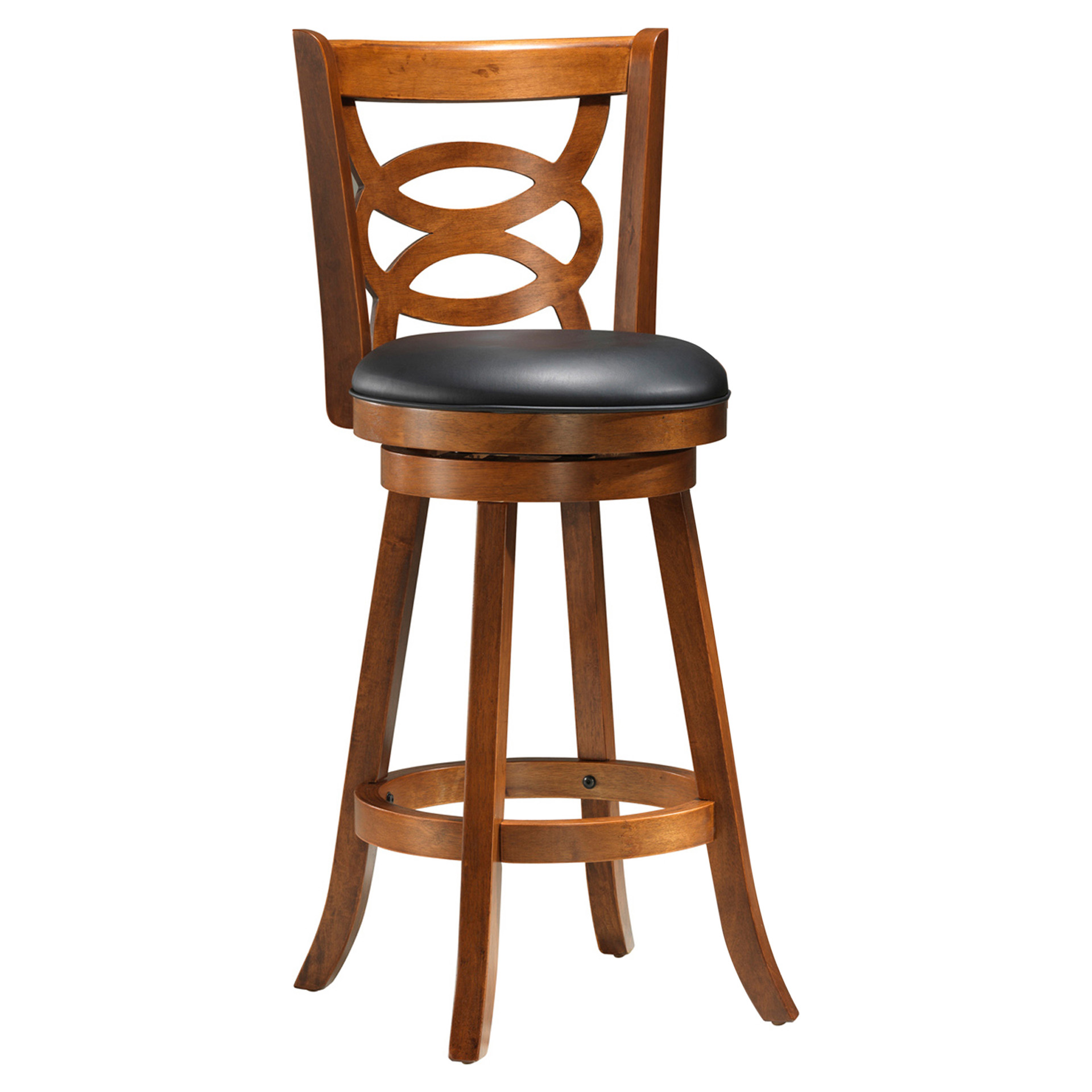 Style ou confort? Pourquoi choisir quand ce tabouret en bois au fini noyer peut vous offrir les deux. Avec son siège pivotant rembourré noir, son dossier au design circulaire et son appui-pied parfaitement positionné, le tabouret de hauteur bar sera sans doute ajouter une touche d'élégance dans vos pièces à la maison.