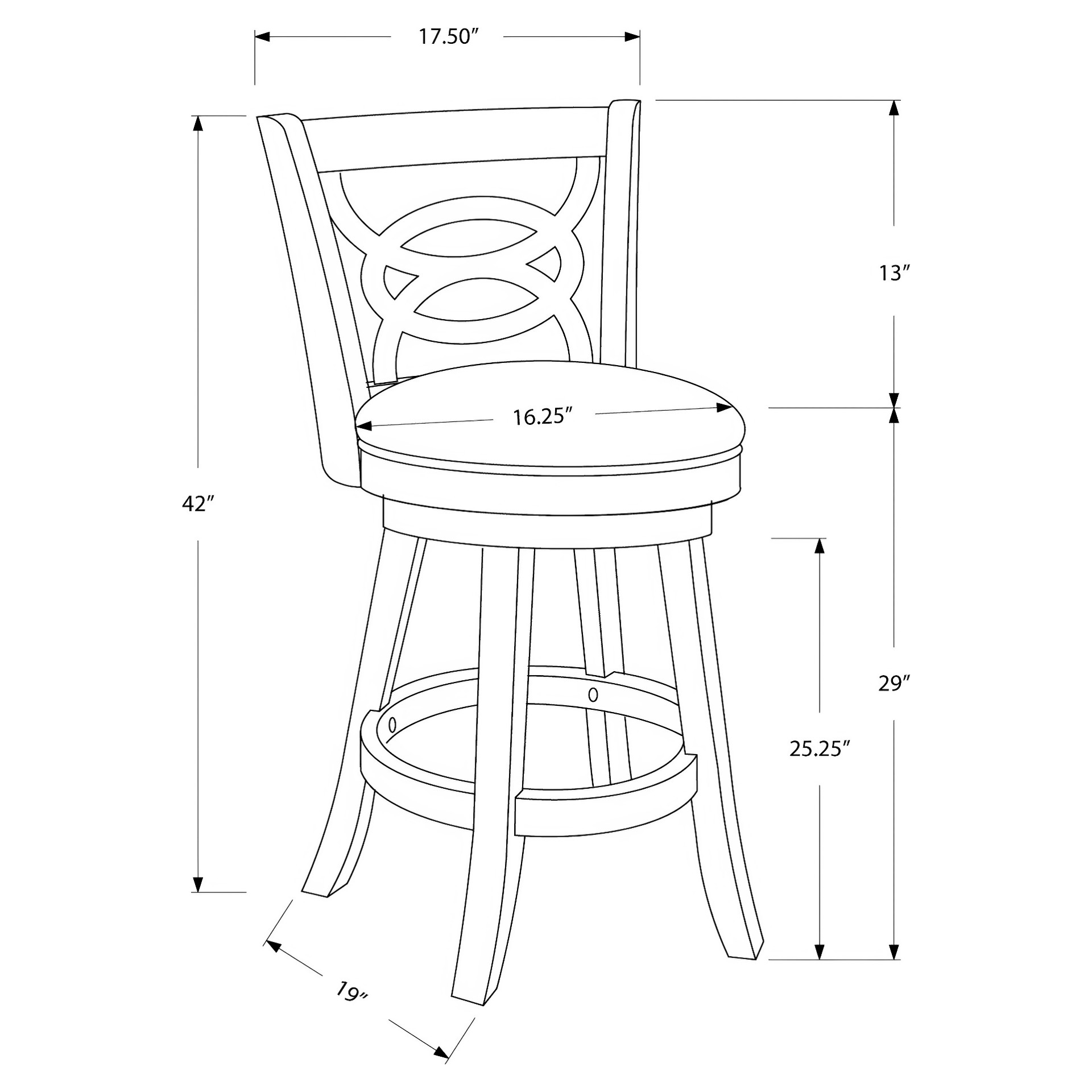 • Hauteur du dossier : 13 po