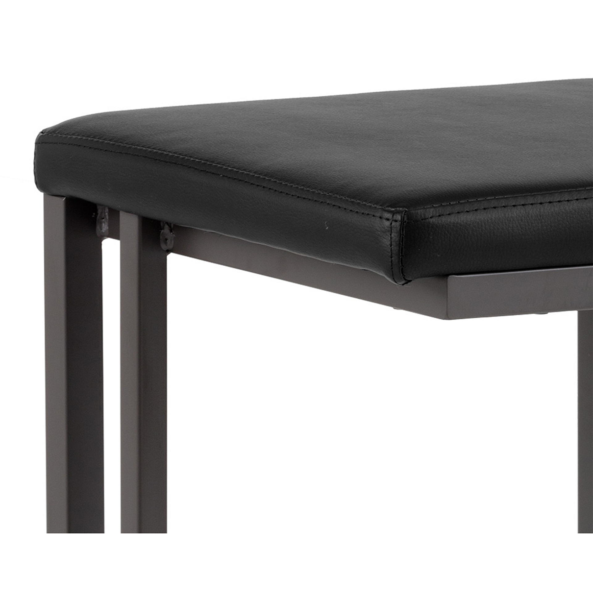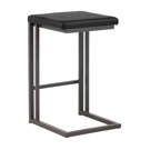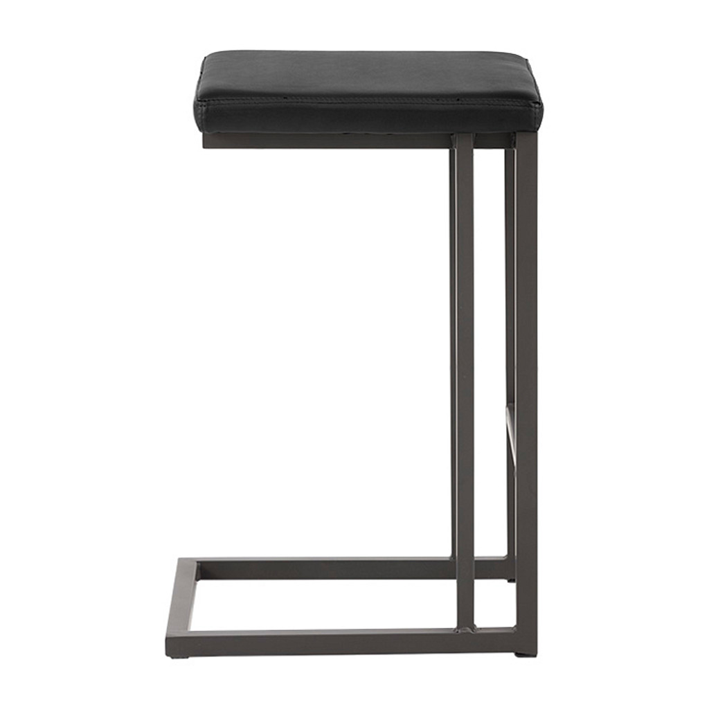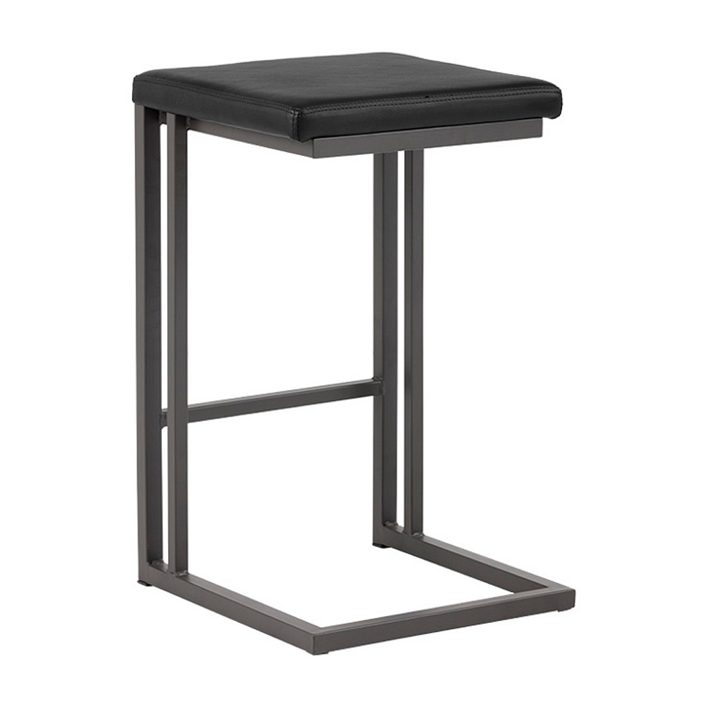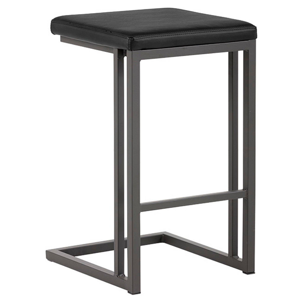 Tabouret industriel moderne de notre collection Urban Unity avec assise sans dossier en simili cuir onyx et structure en porte-à-faux avec repose-pieds en acier enduit de poudre grise.