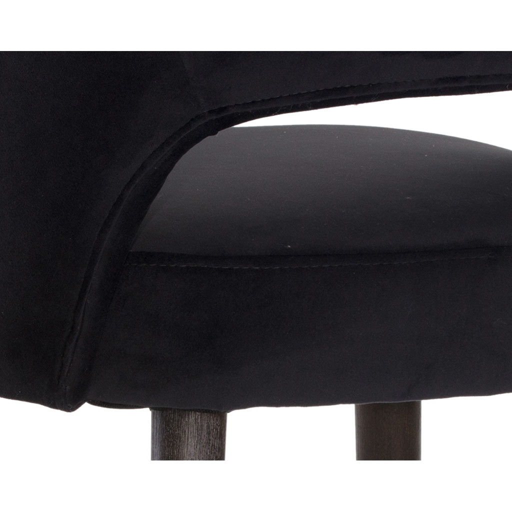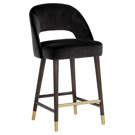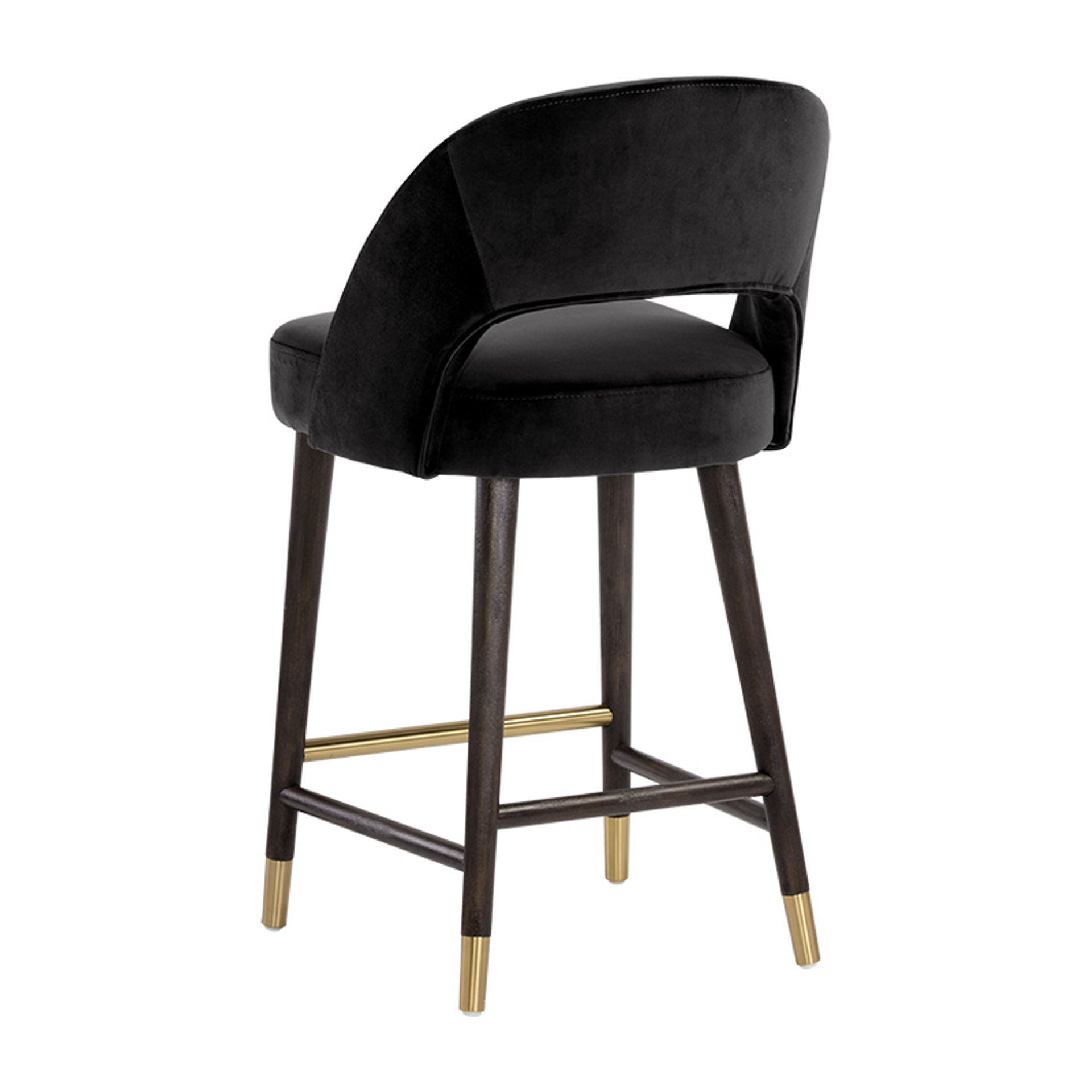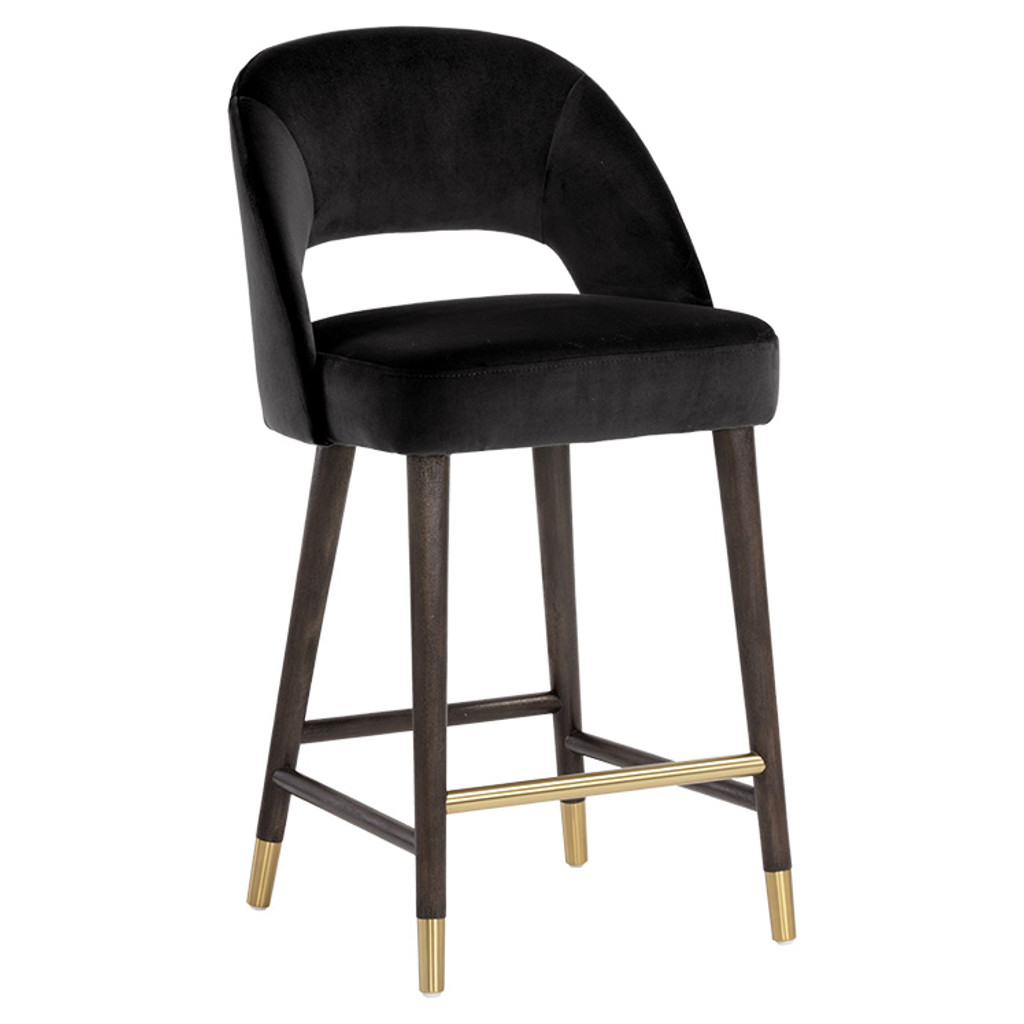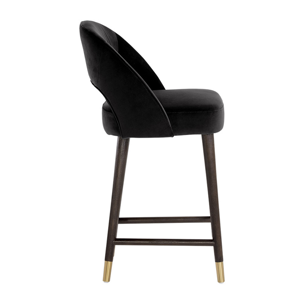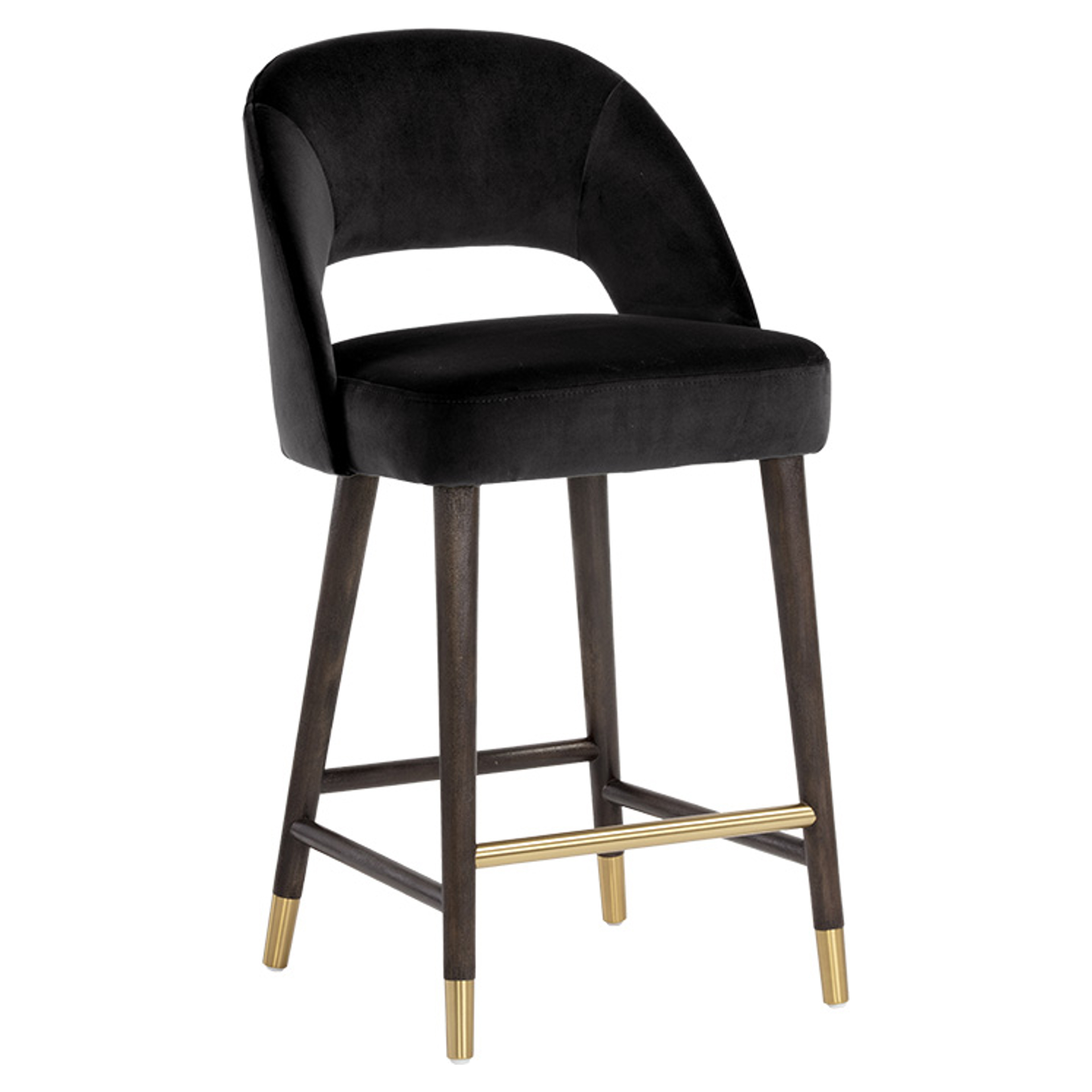 Un tabouret de comptoir chic de notre collection 5West avec une influence vintage. Article fabriqué dans un tissu doux noir Abbington. Fini avec des pieds en bois de peuplier et des chapeaux en laiton antique. Convient à divers espaces de restauration, de cuisine et de bar de toutes tailles.