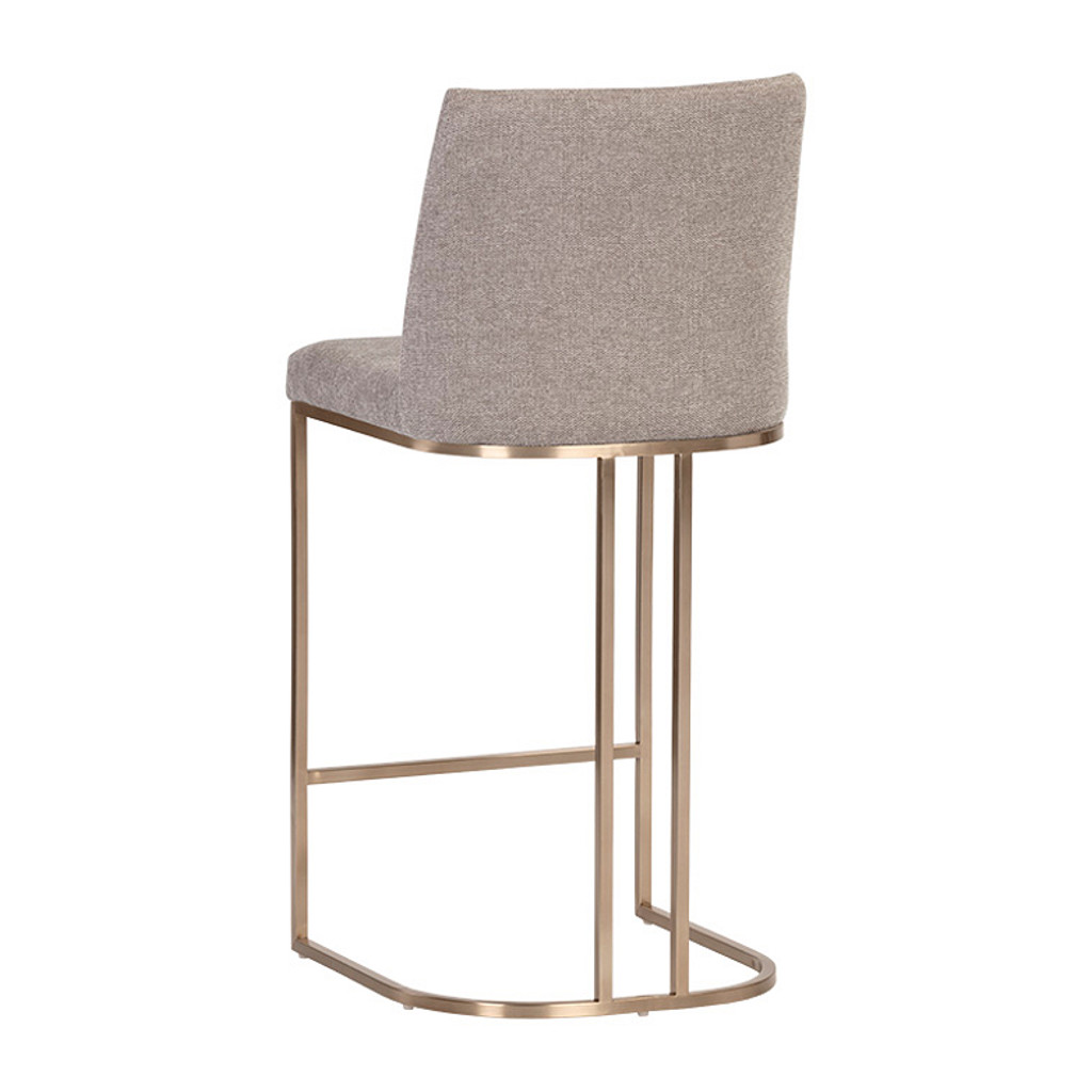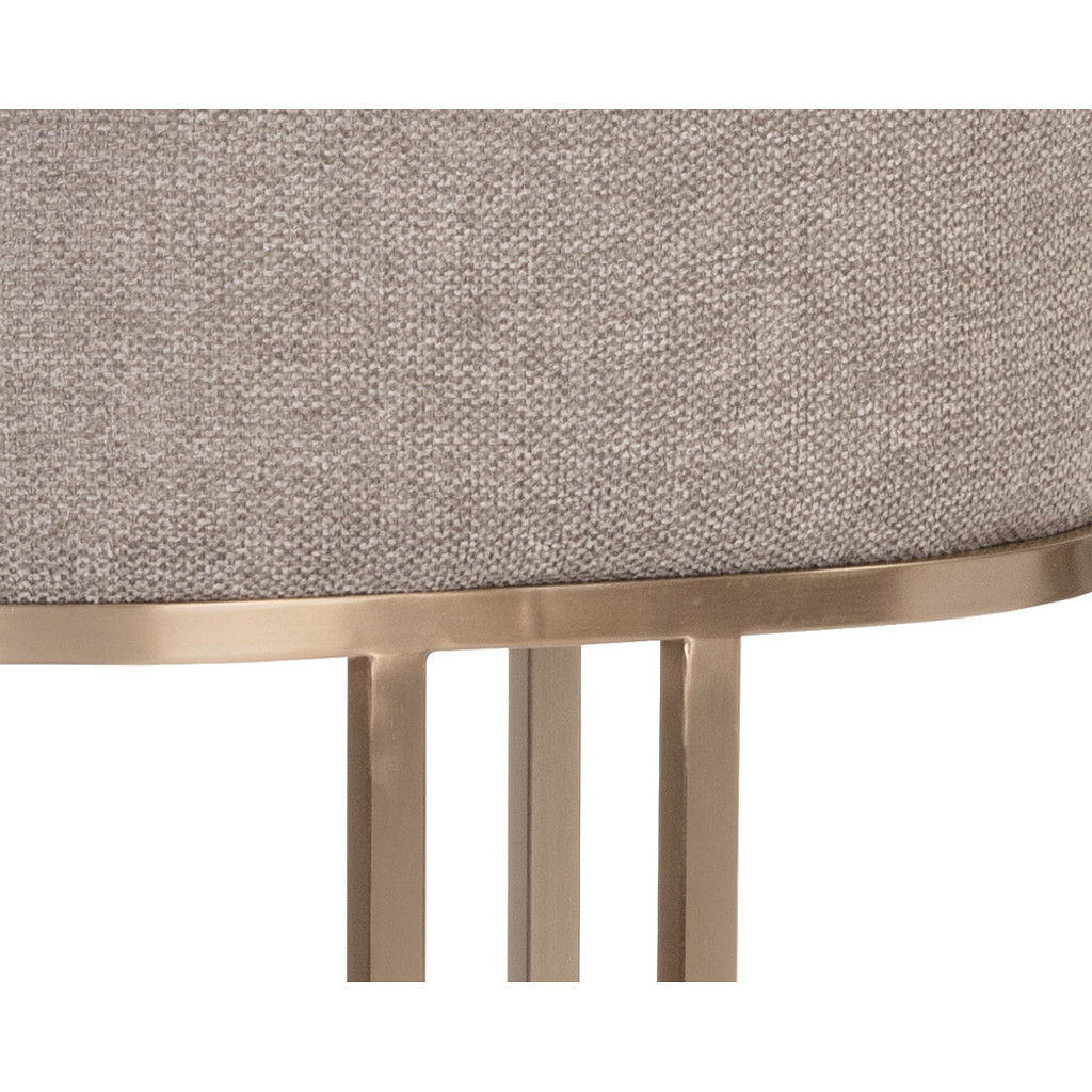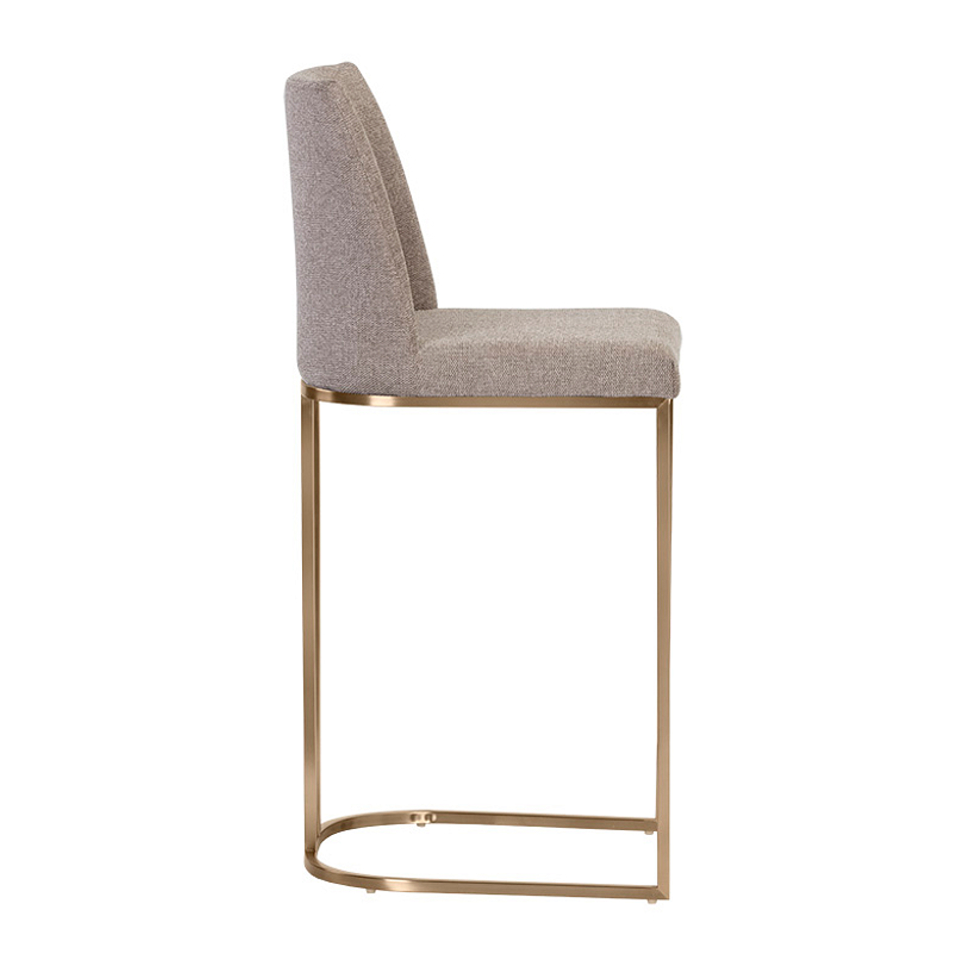 Un tabouret de comptoir Rayla en porte-à-faux qui ajoutera une touche élégante et moderne à votre cuisine ou à votre bar. L'assise et le dossier, revêtus d'un tissu doux coquille d'huître, sont posés sur un socle élégant et présente un cadre en acier inoxydable en laiton antique subtilement exposé. Choisissez parmi une gamme de couleurs disponibles.