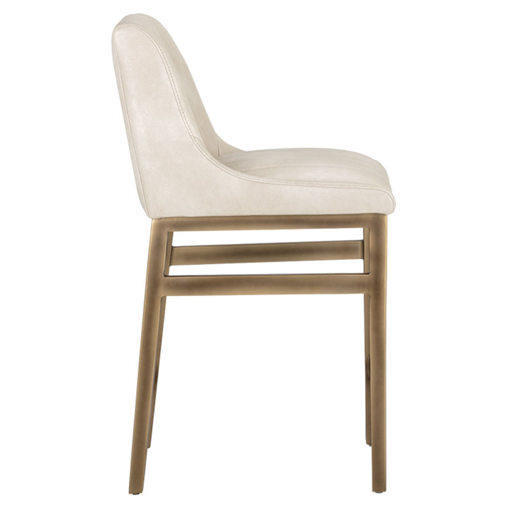 La structure en métal doré apporte une note chaleureuse et moderne, parfaitement stable grâce à ses renforts latéraux. Sa hauteur idéale s'adapte parfaitement aux comptoirs standards, créant un ensemble harmonieux dans votre intérieur.