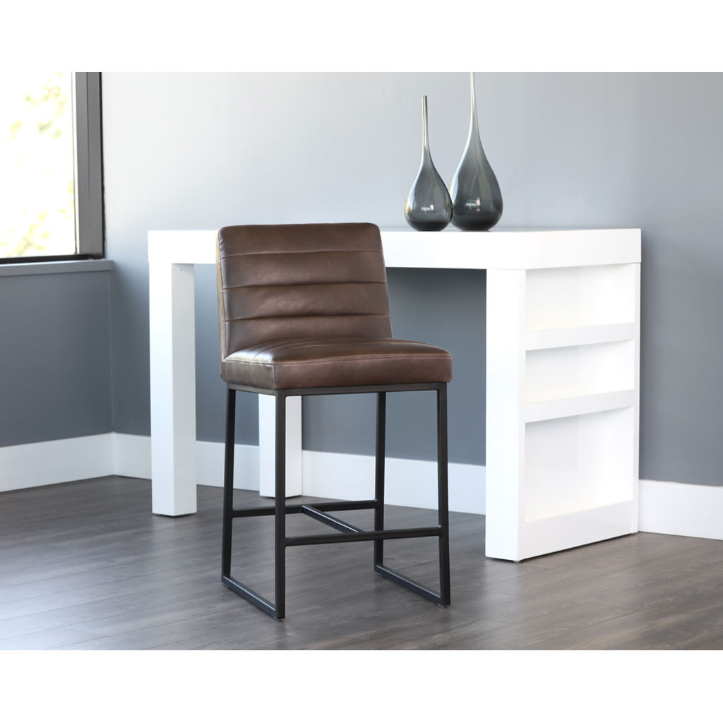 Ce tabouret de comptoir allie confort et durabilité pour transformer votre espace. Son assise rembourrée en cuir synthétique offre une expérience d'assise agréable, tandis que les coutures horizontales apportent une touche d'élégance discrète.
