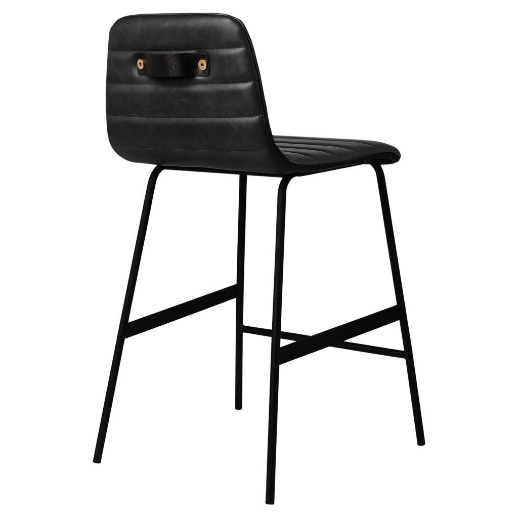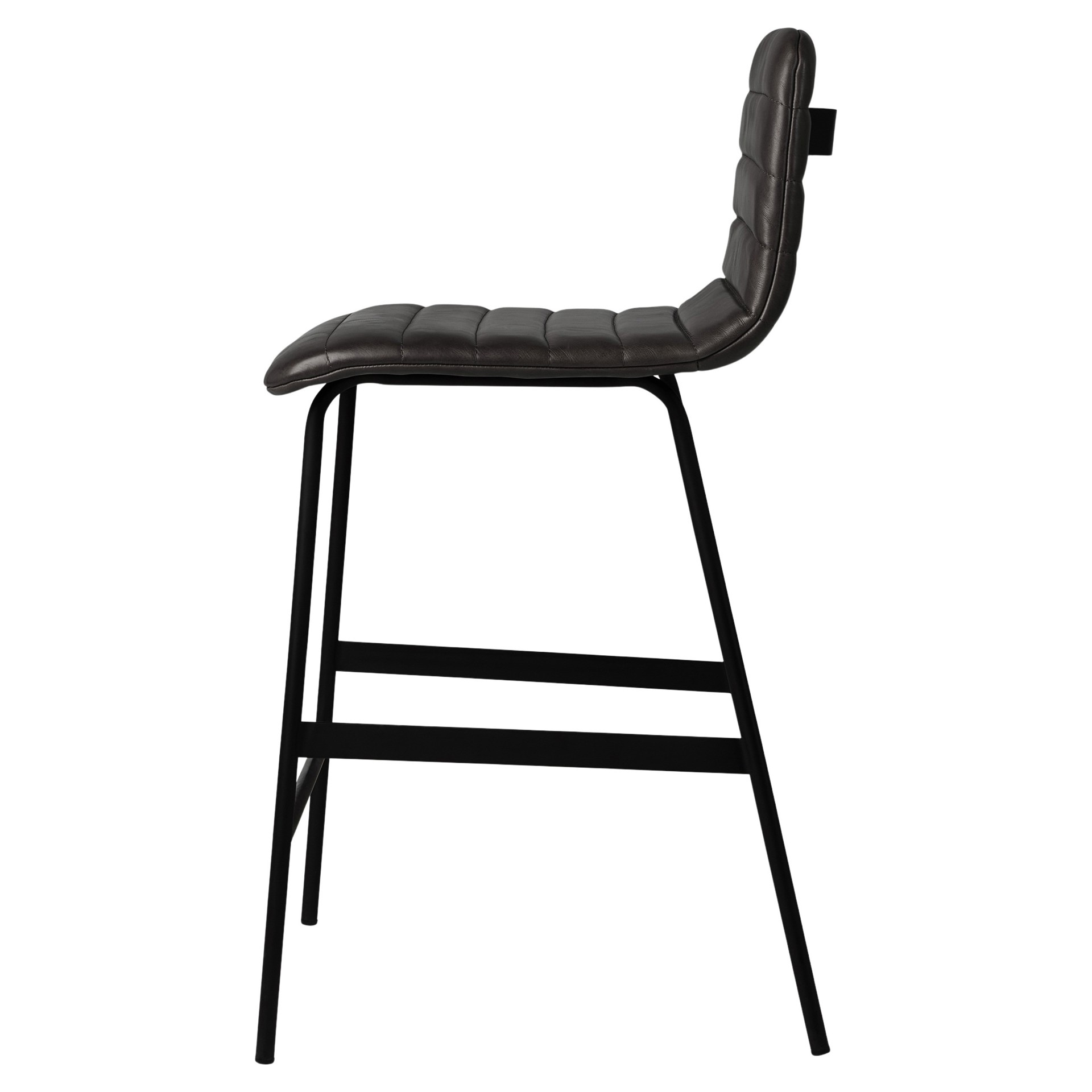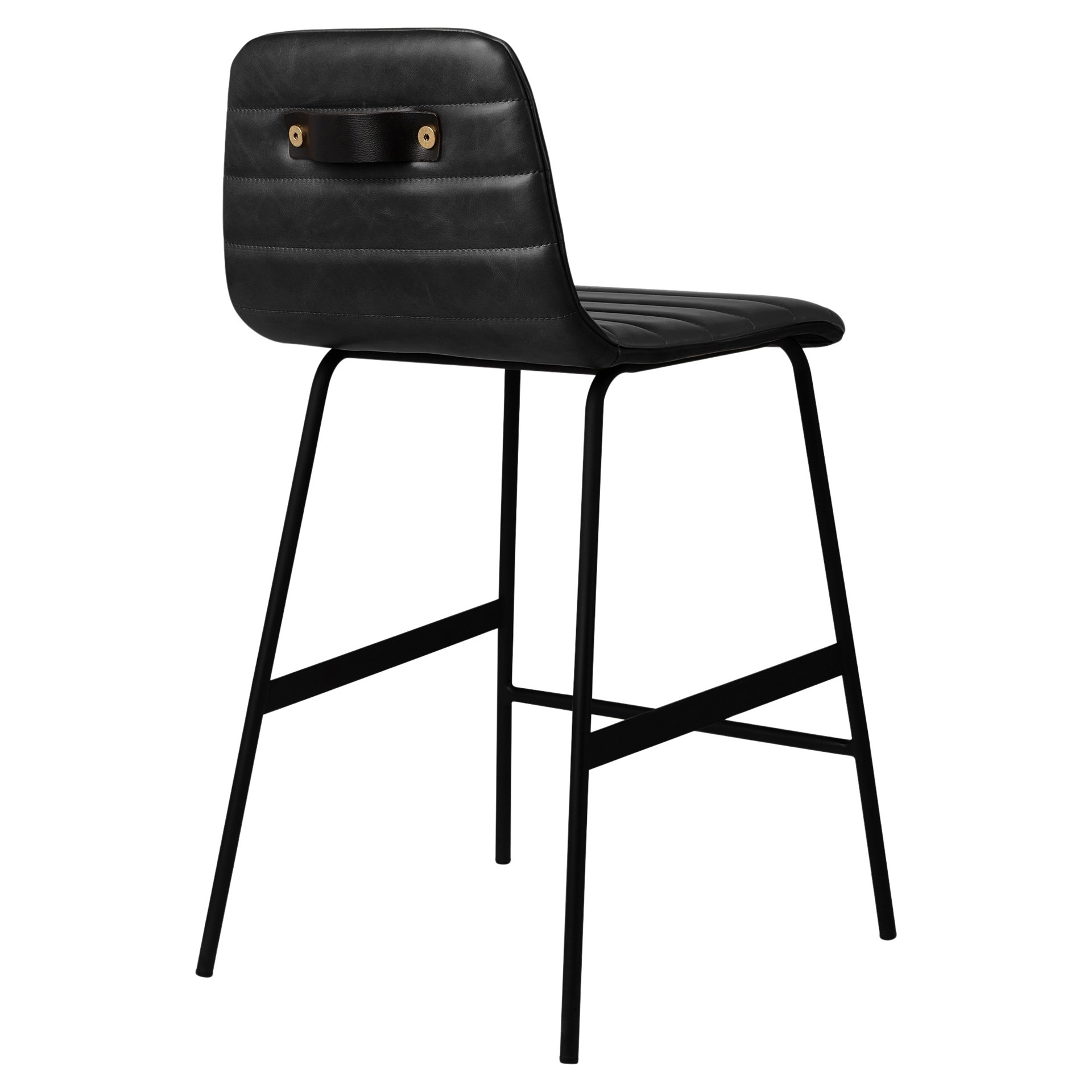 Le tabouret Lecture est une réinterprétation moderne d'une conception classique de chaise d'école élémentaire, adaptée pour une utilisation à hauteur de comptoir. Cette version comprend un siège et un dossier rembourrés d'une seule pièce, avec des détails uniques en point de chaîne.