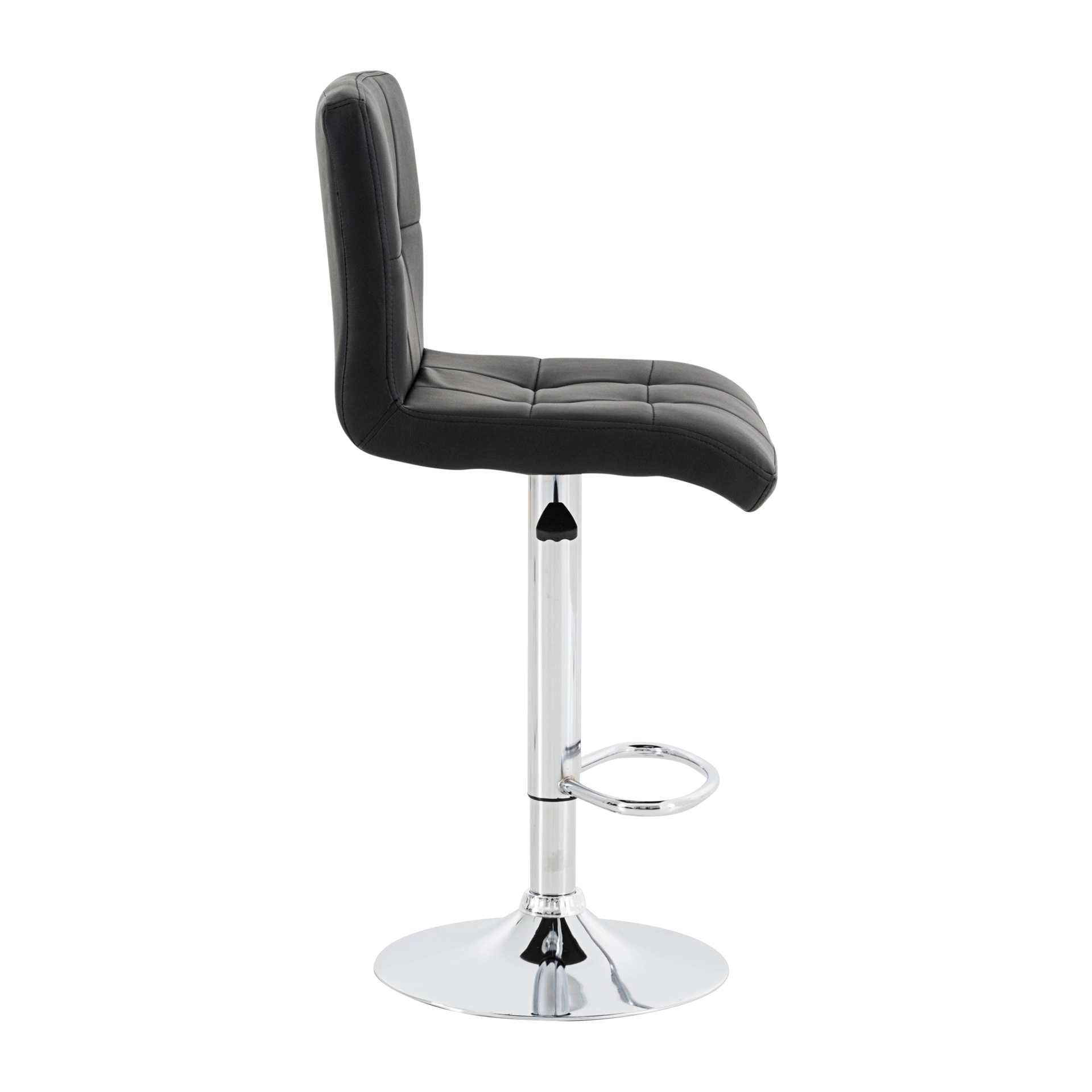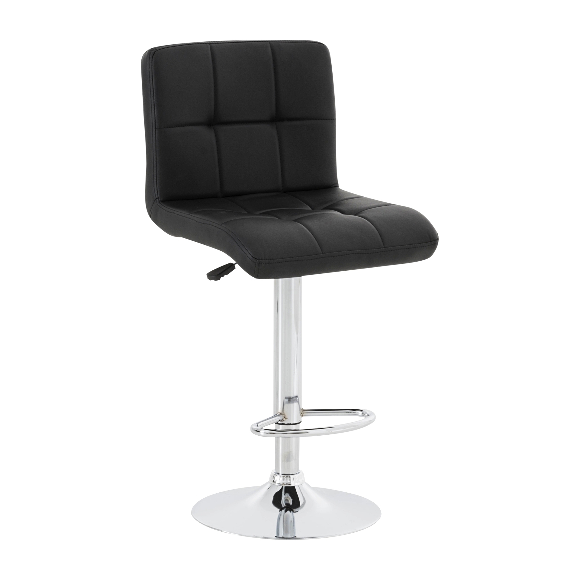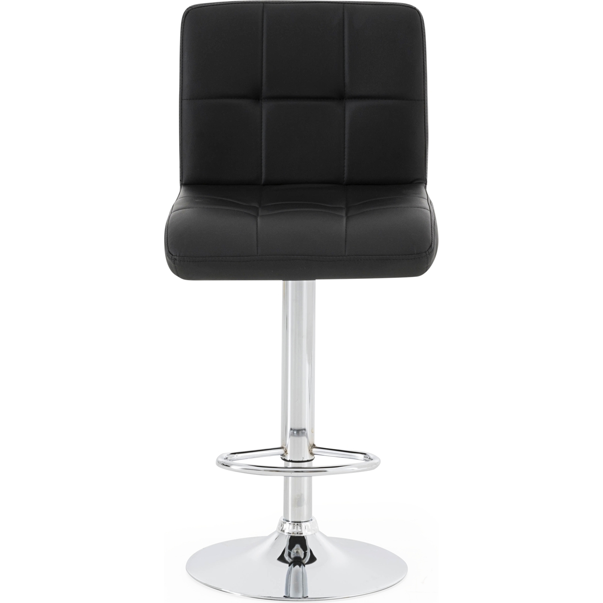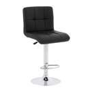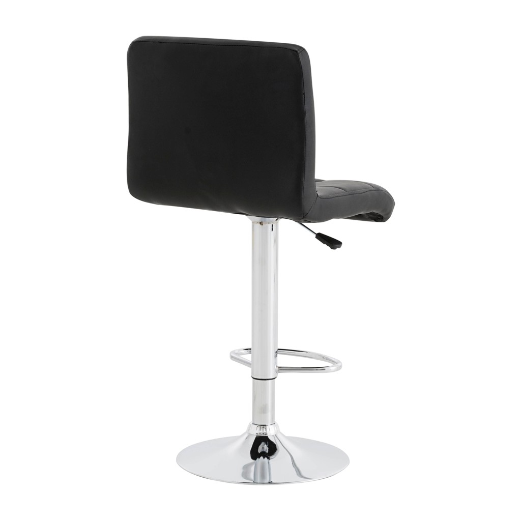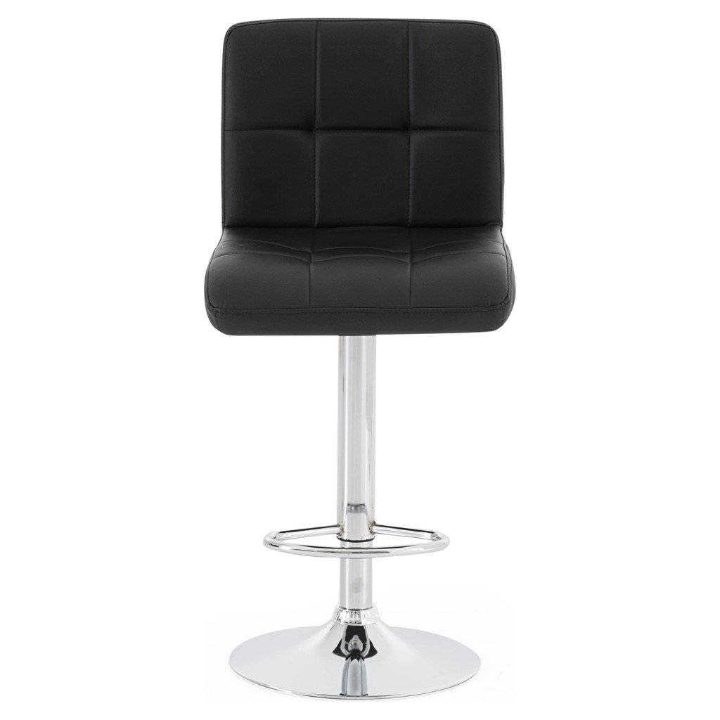 Transformez votre comptoir ou îlot de cuisine avec ce tabouret au design épuré. Son siège matelassé en cuir synthétique noir offre un confort optimal, tandis que sa base chromée ajustable en hauteur s'adapte parfaitement à vos besoins.