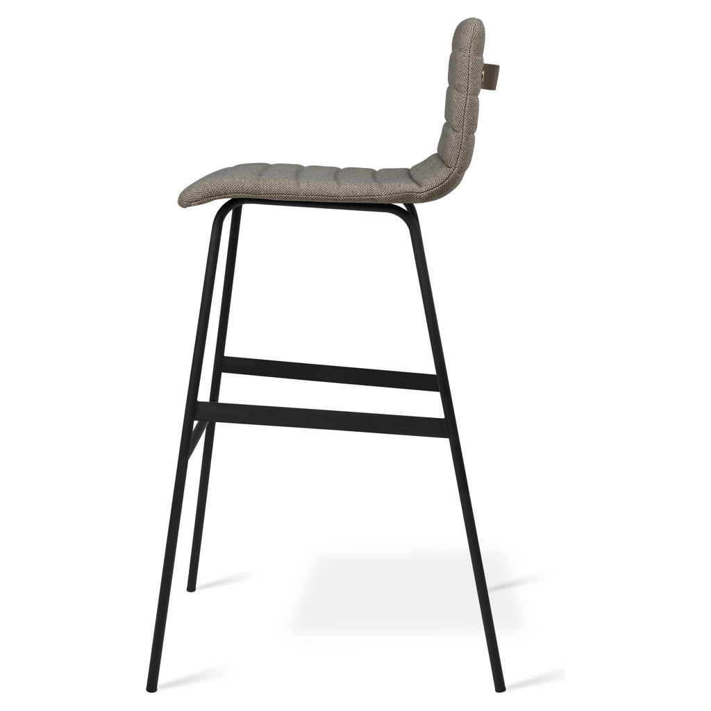 Les pieds en acier noir thermolaqué sont renforcés par des barres stabilisatrices plates robustes et un repose-pieds ergonomique simple. Fonctionnel, confortable et élégant, le tabouret de bar Lecture convient parfaitement à n'importe quel espace de travail, bar ou salle à manger.
