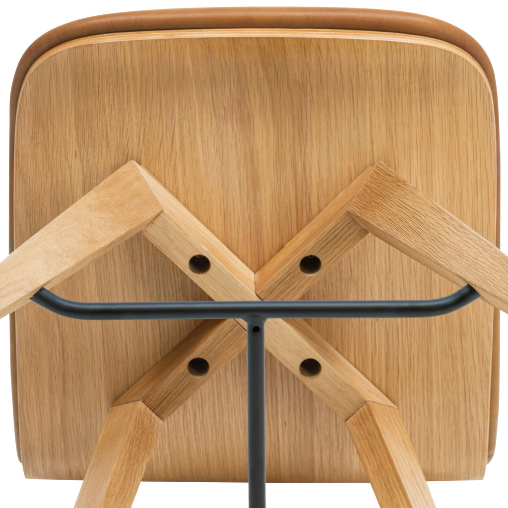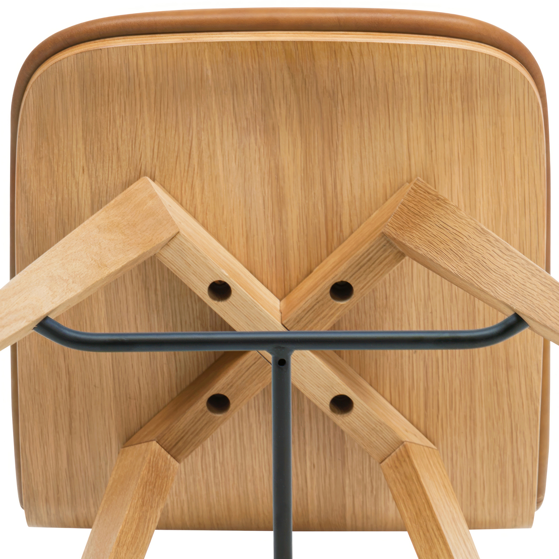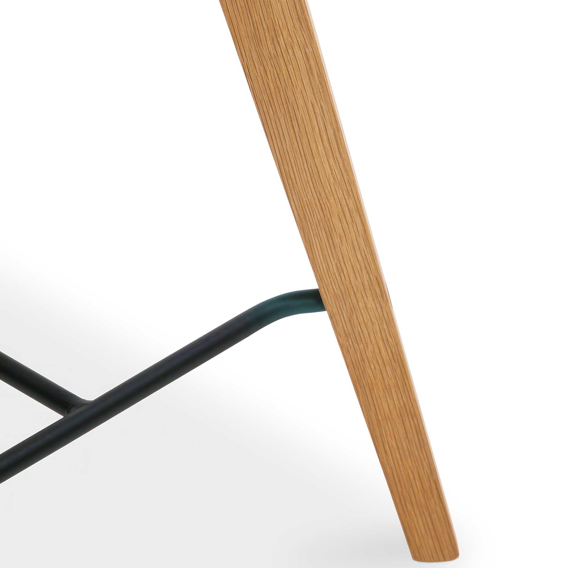 Reposant sur des pieds en chêne massif, cette chaise forme un léger L pour le soutien et le confort du bas du dos.