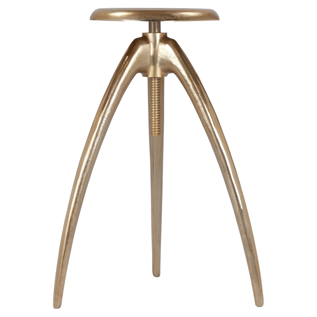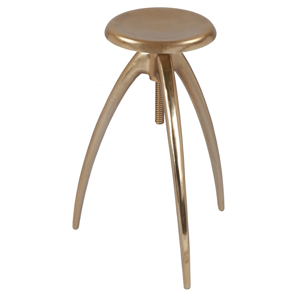 Ce tabouret présente une construction robuste dans une finition dorée qui ajoute une touche industrielle à votre cuisine ou à votre bar à domicile.