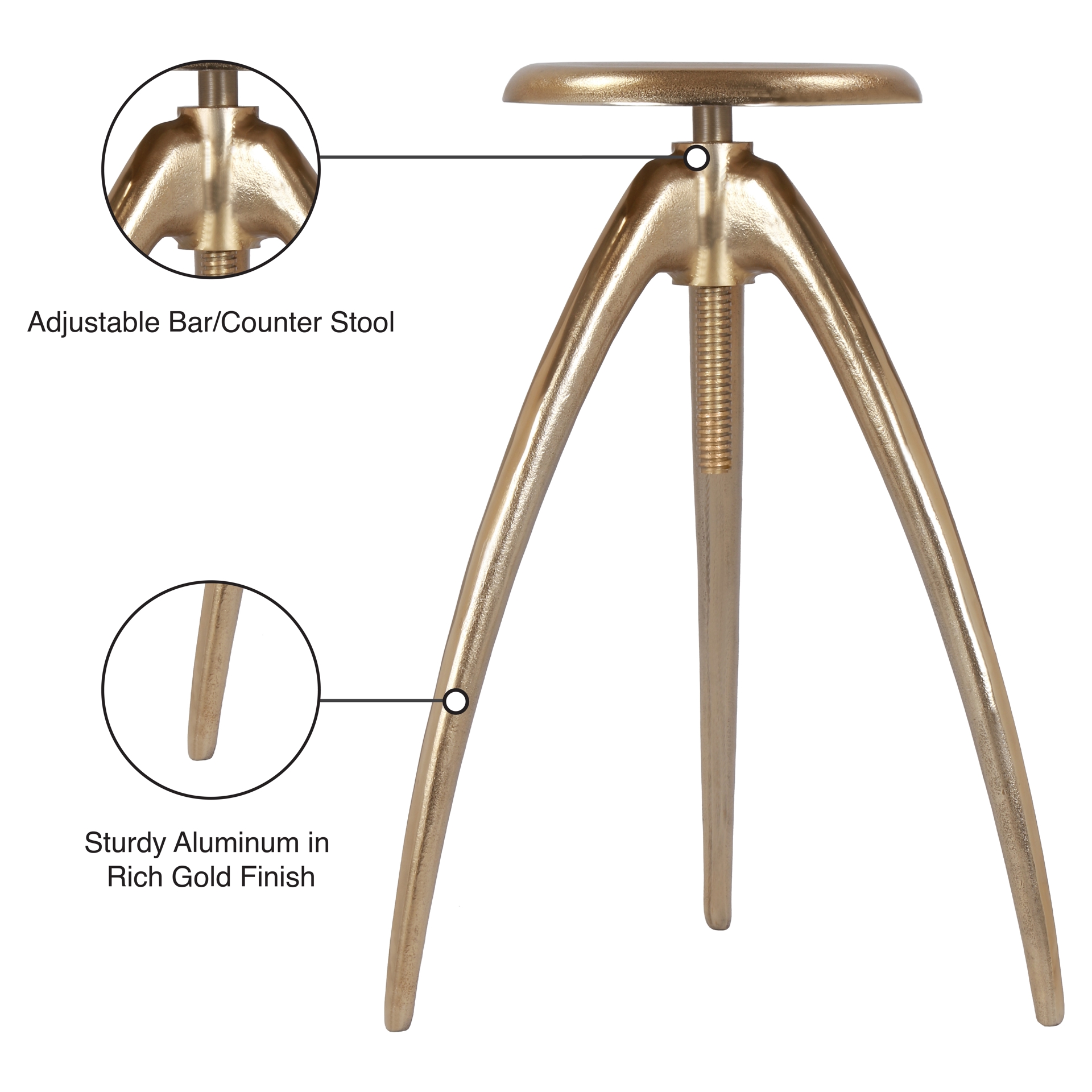 Construit en métal pour plus de résistance et d'endurance, ce tabouret présente une conception réglable qui vous permet de visser le siège vers le haut ou vers le bas pour transformer sa hauteur en quelques tours d'un minimum de 28 pouces à un maximum de 33.