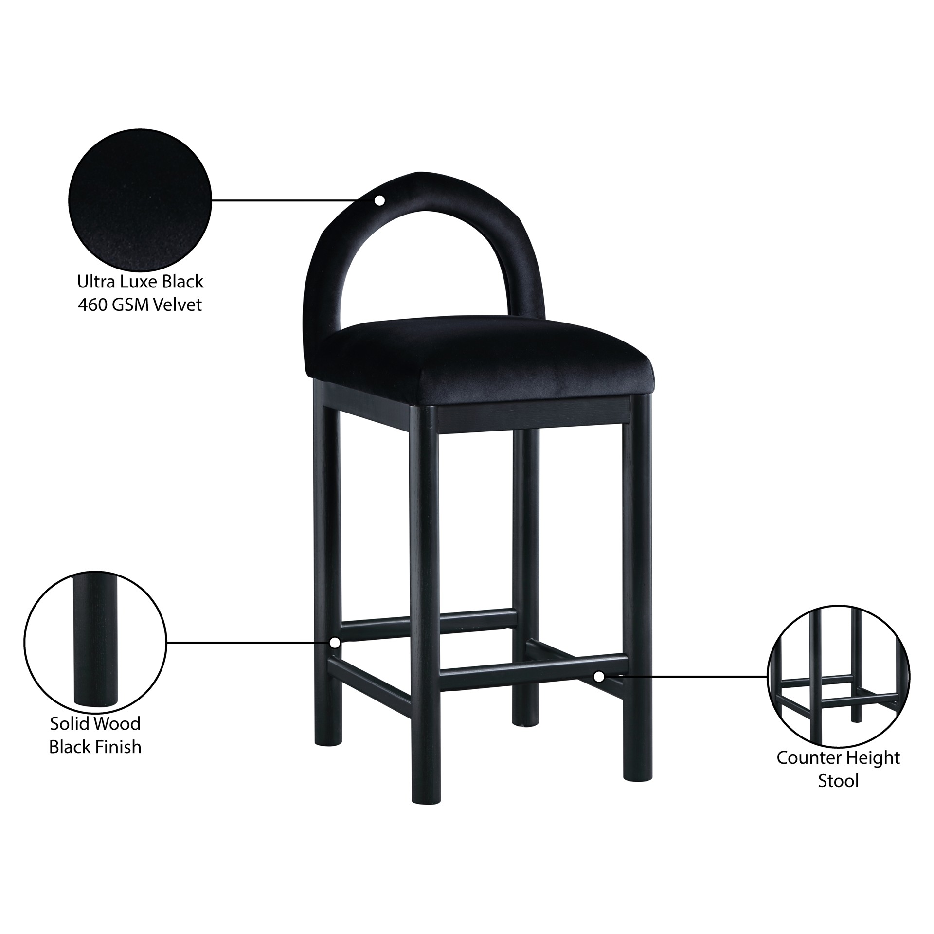 Laissez-vous séduire par le charme du tabouret de comptoir Conrad en velours de Meridian Furniture. Son design captivant et sa luxueuse finition en velours noire rehaussent n'importe quel espace avec une élégance sans effort.