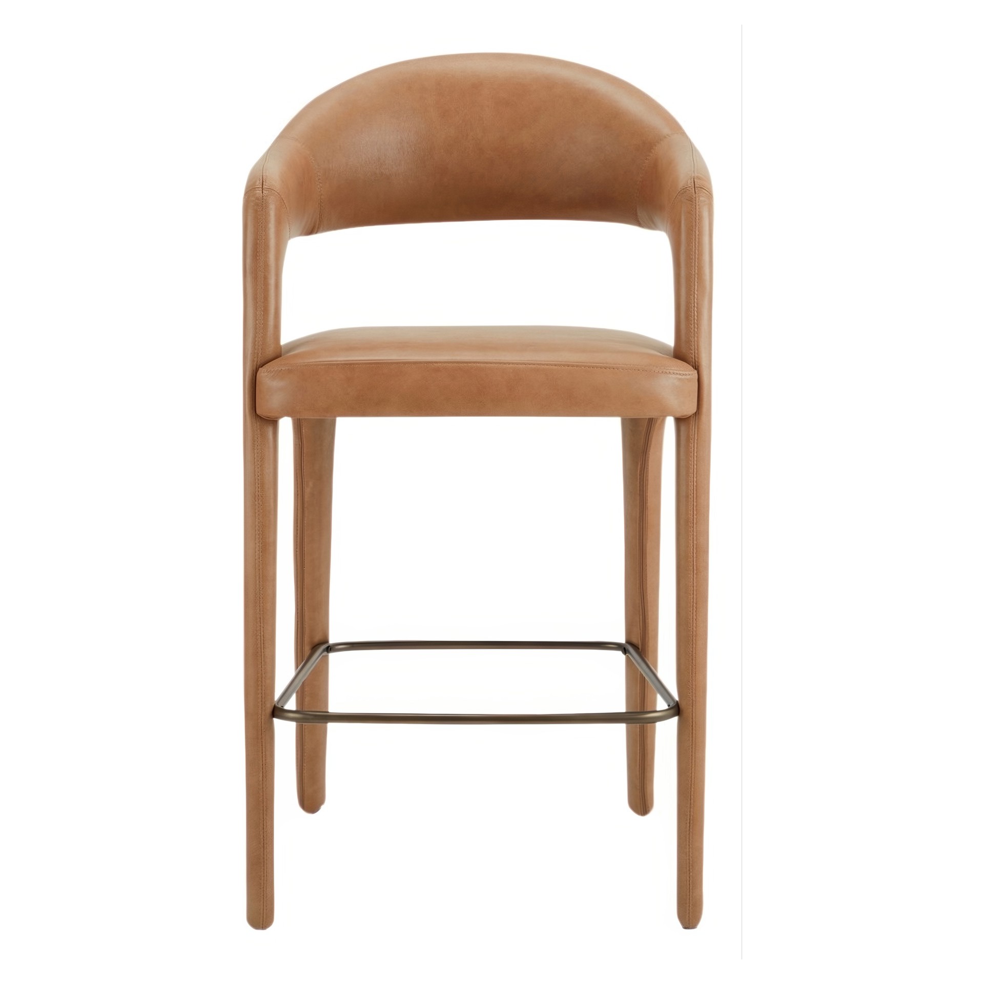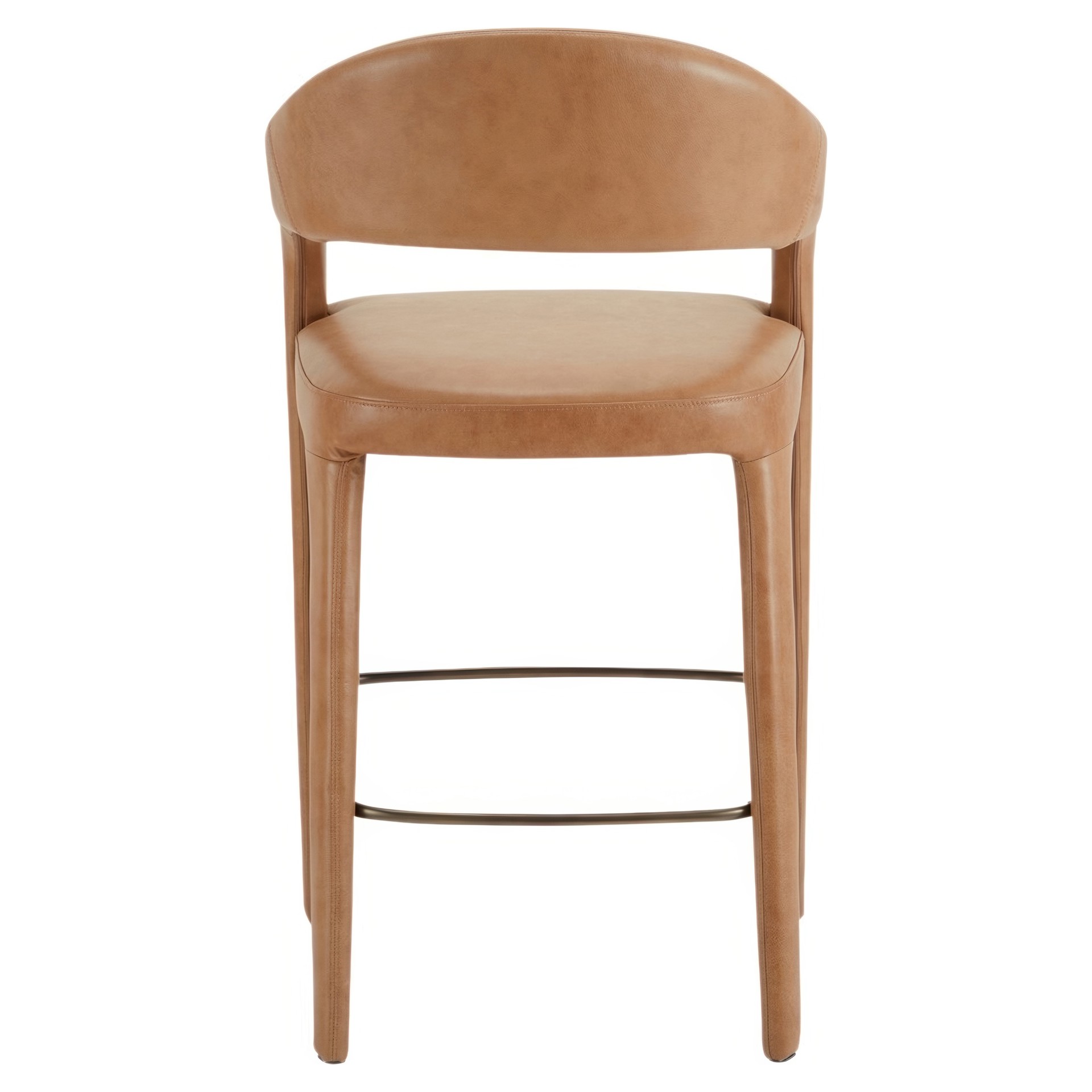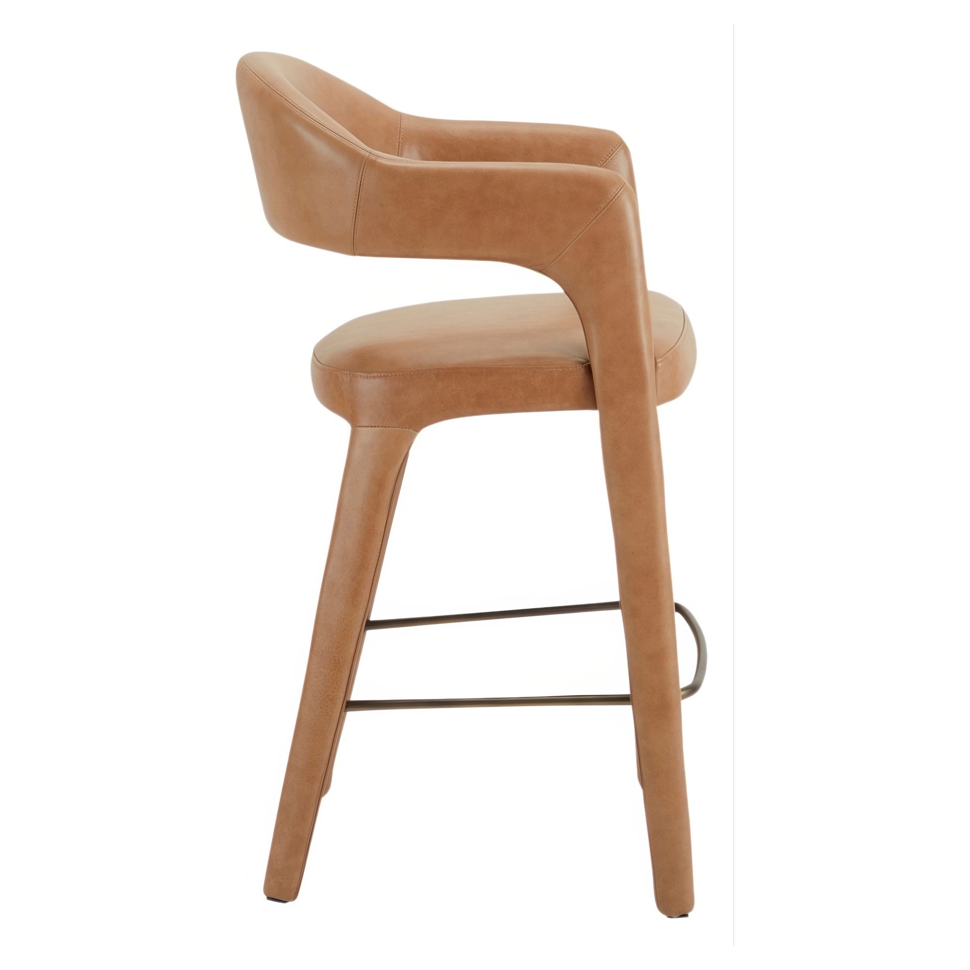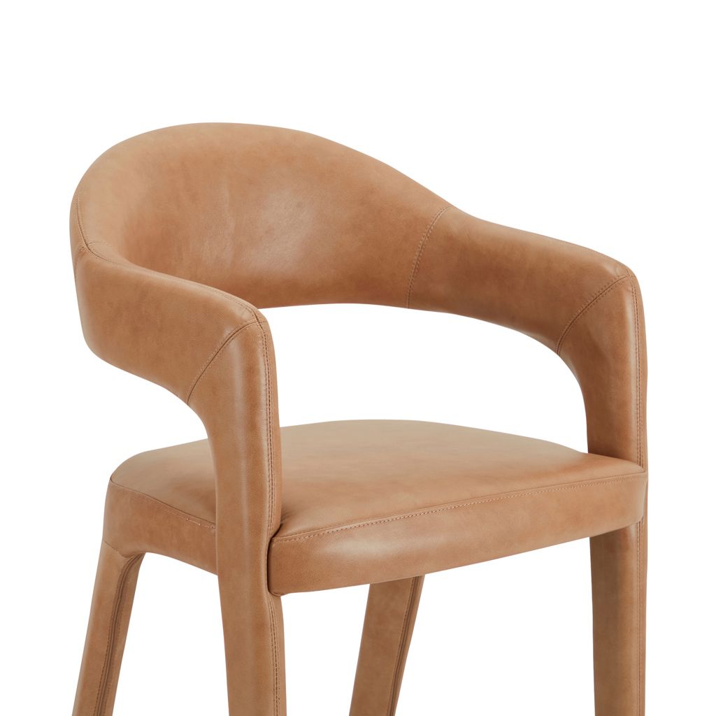 Le tabouret de bar Martens présente un dossier ouvert en forme de tonneau et une courbe continue du pied au cadre.