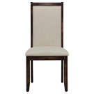 Cette chaise de salle à manger allie parfaitement confort et raffinement pour transformer vos repas en moments privilégiés. Son assise et dossier rembourrés, recouverts d'un tissu beige élégant, vous offrent un confort exceptionnel même lors des longues soirées entre amis ou en famille.