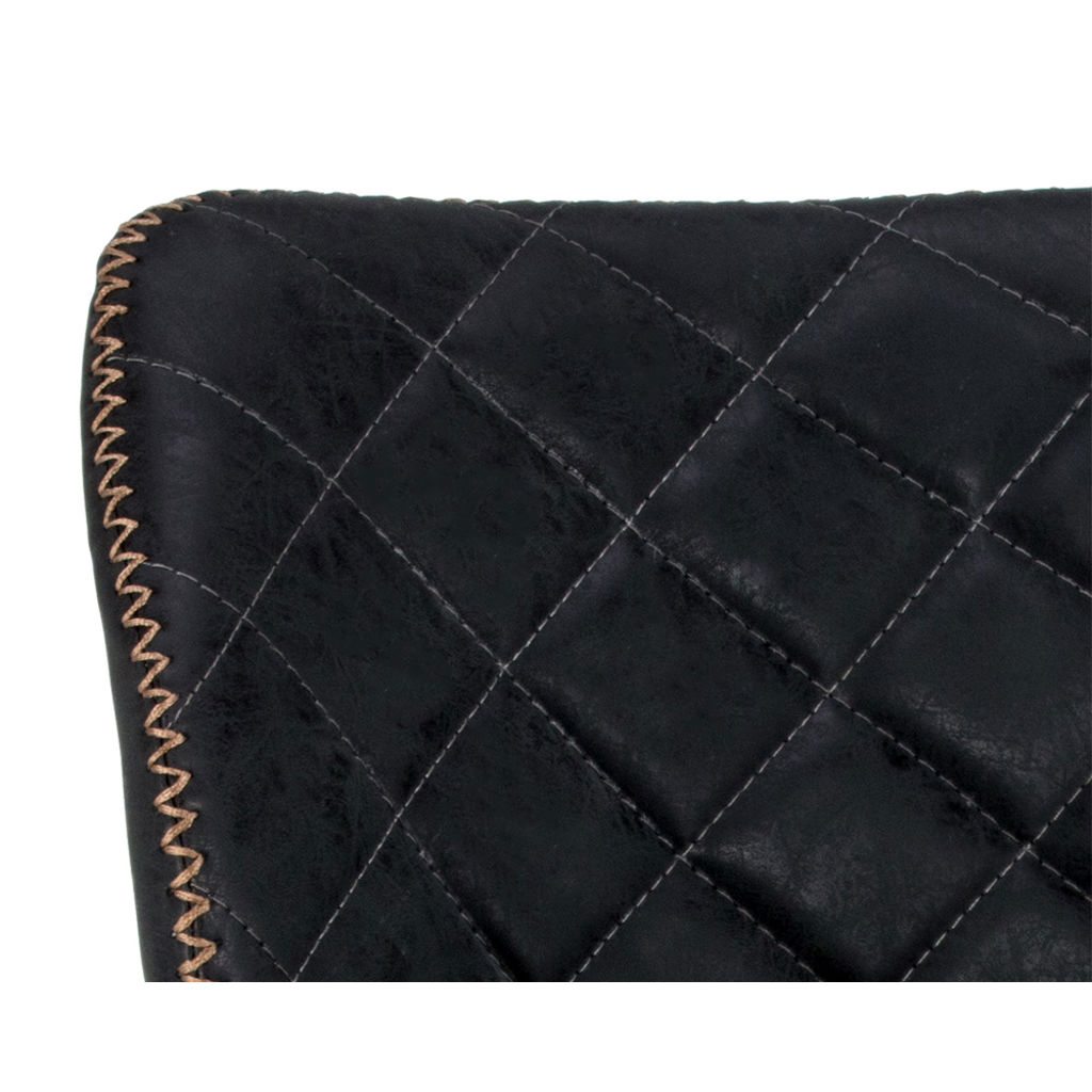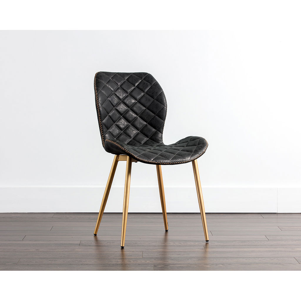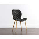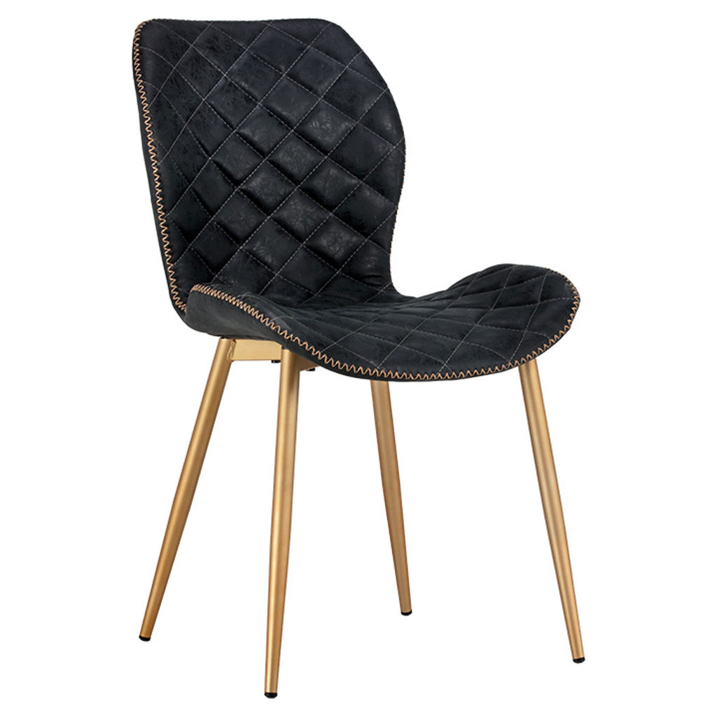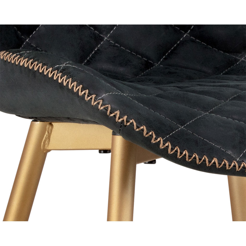 Découvrez la chaise Lyla, où le raffinement rencontre le confort au quotidien. Son assise en cuir synthétique noir matelassé apporte une touche de luxe à votre intérieur, tandis que les finitions dorées créent un contraste saisissant qui attire tous les regards.