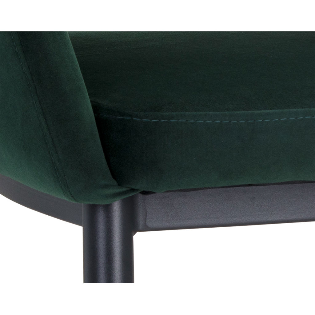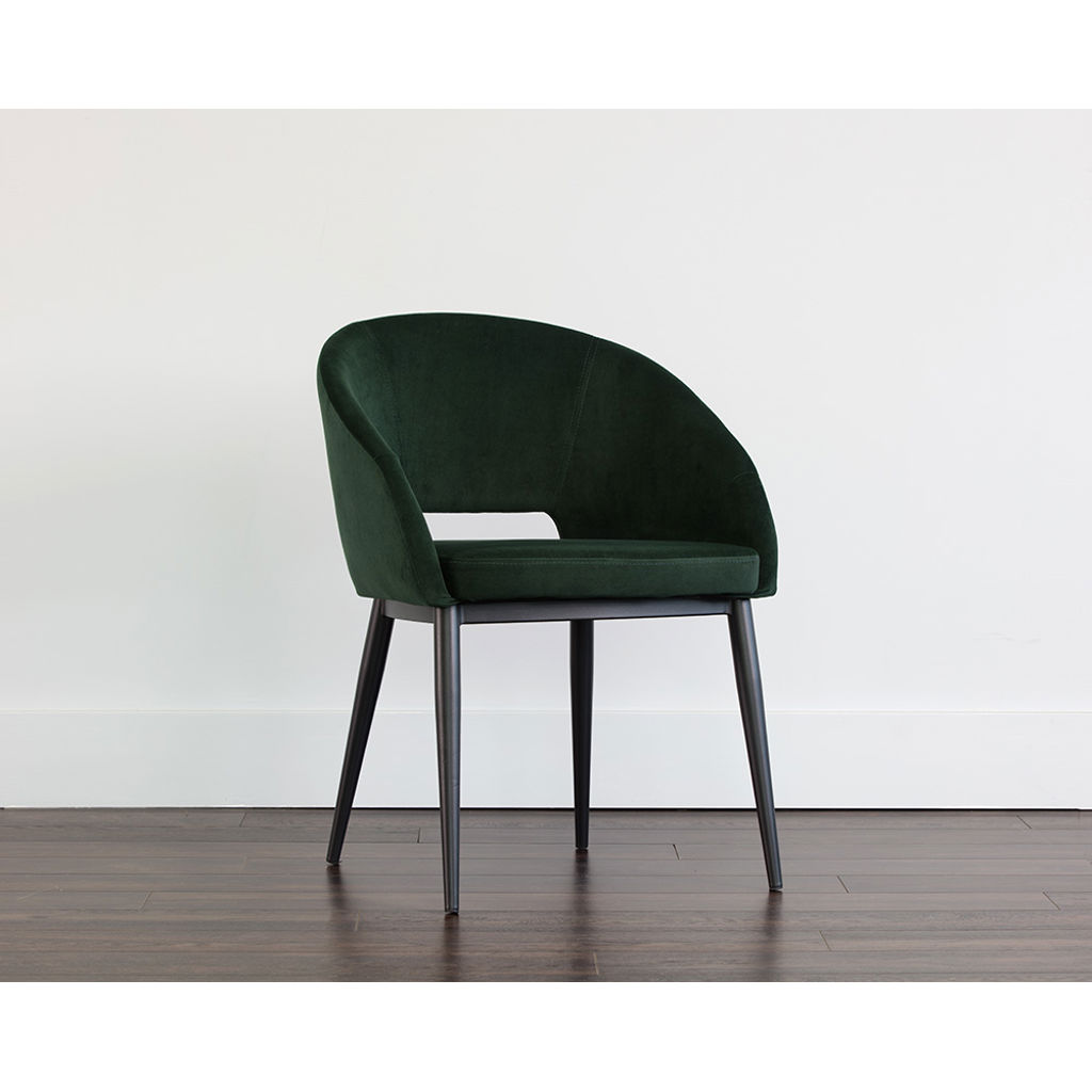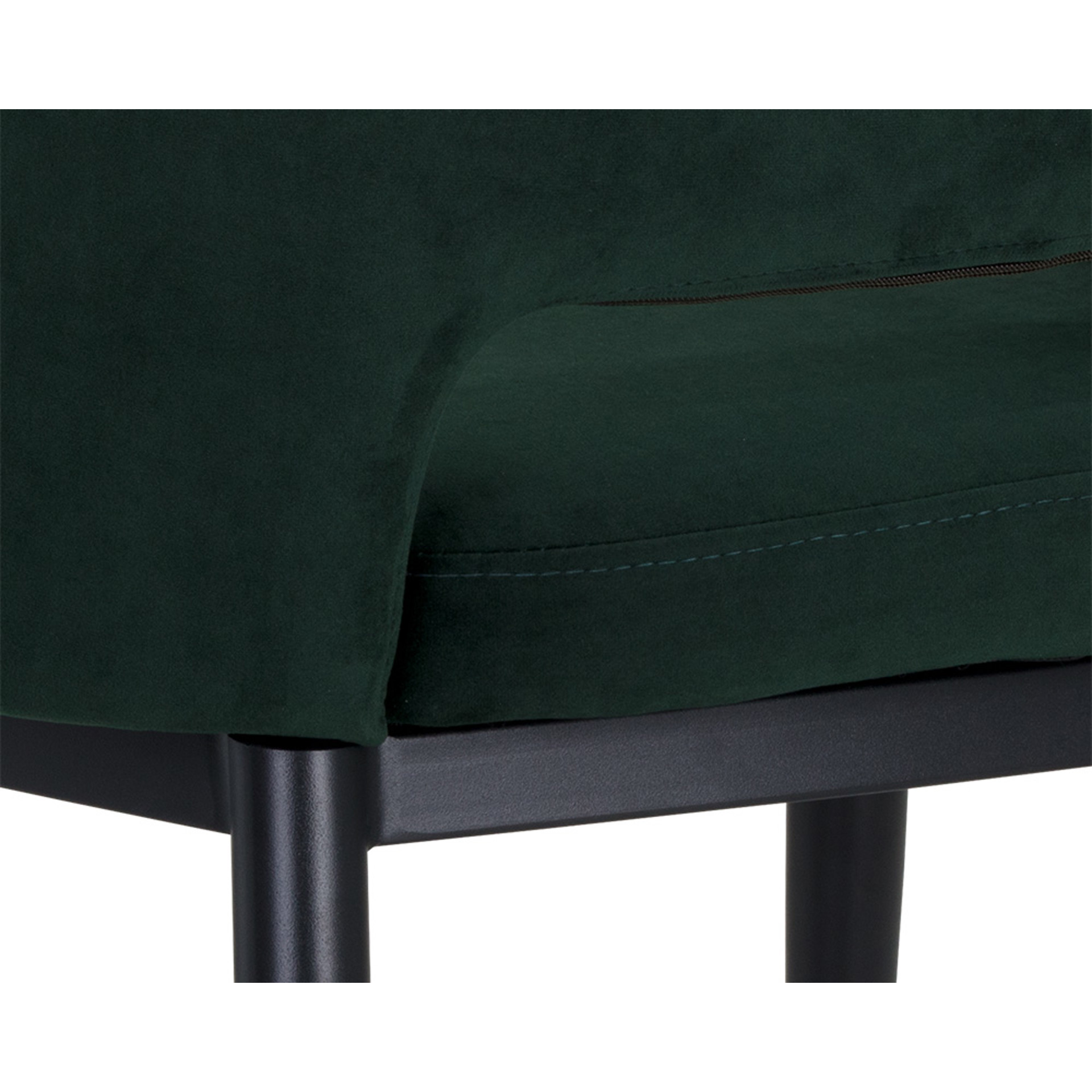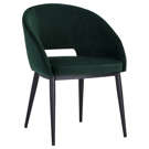 Ce fauteuil de salle à manger compact à dossier tonneau de notre collection Urban Unity est sans effort. Disponible en simili cuir gris antique, en tissu ciel violet fard à joues ou vert foncé avec un cadre en acier enduit de poudre noire, ou en simili cuir onyx et neige avec un cadre en acier laiton antique.