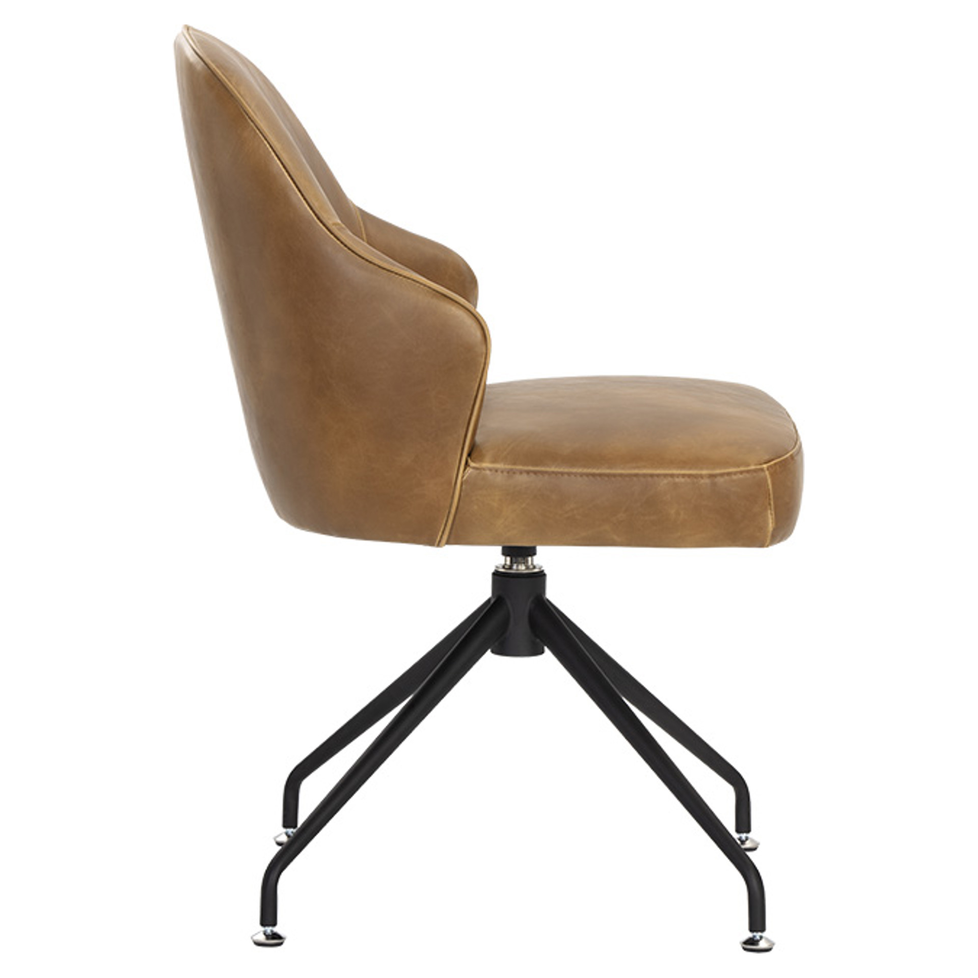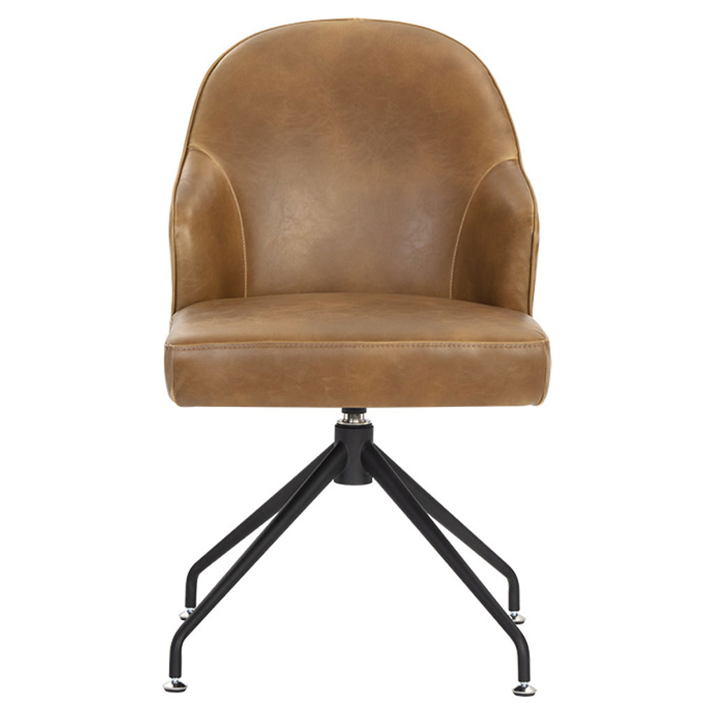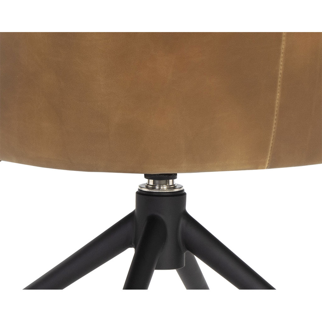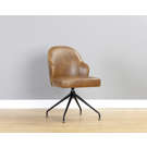 La chaise Bretta allie élégance contemporaine et confort exceptionnel pour transformer votre espace de vie. Son revêtement en cuir synthétique brun sophistiqué résiste à l'usure quotidienne tout en conservant son allure raffinée. La silhouette enveloppante de l'assise épouse parfaitement vos contours, tandis que la base pivotante en métal noir offre une mobilité fluide et un style industriel moderne.