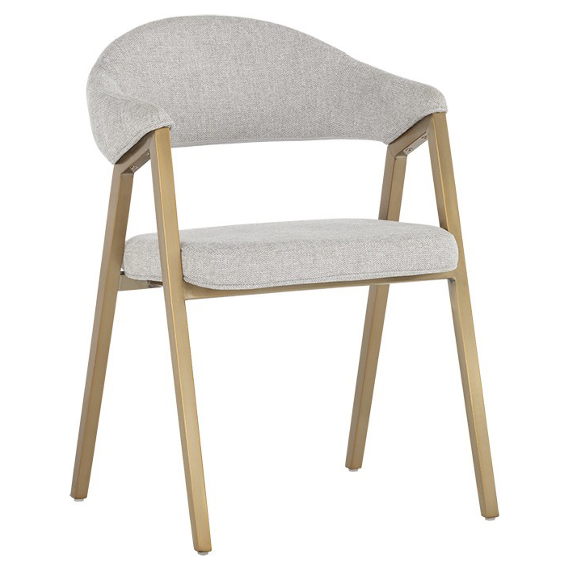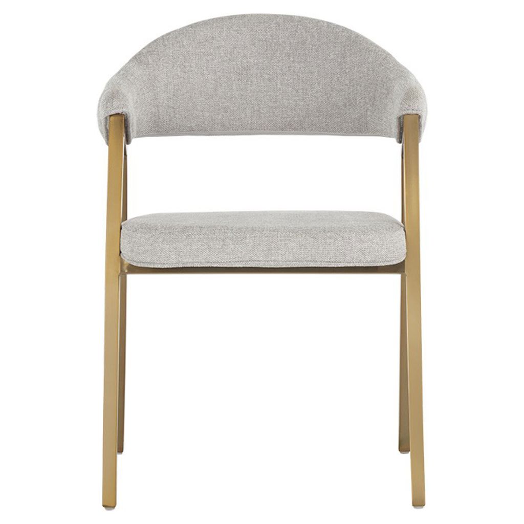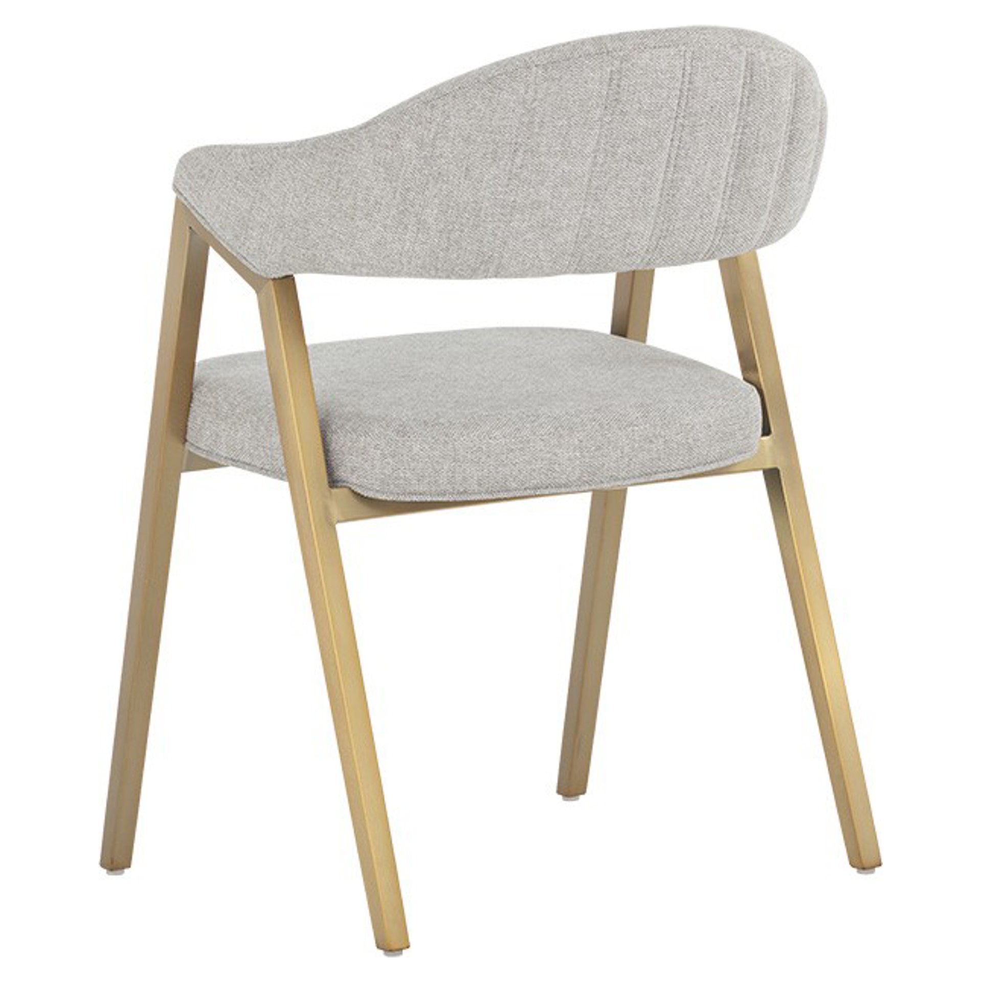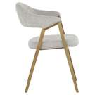 Cette chaise moderne de la collection Ikon charmera les invités. Comporte un dossier incurvé avec le capitonnage de canal à l'extérieur en tissu gris chiné de belfast, complété par un cadre en acier inoxydable or brossé.
