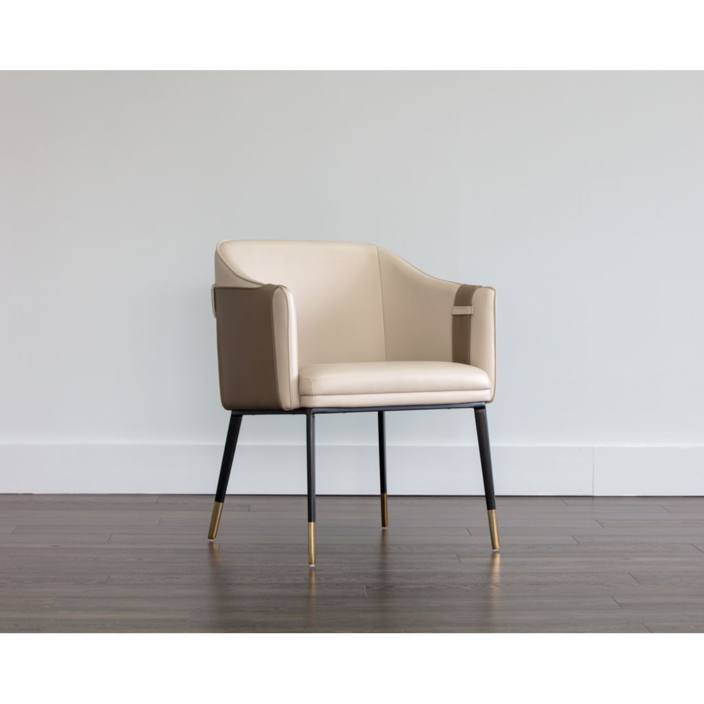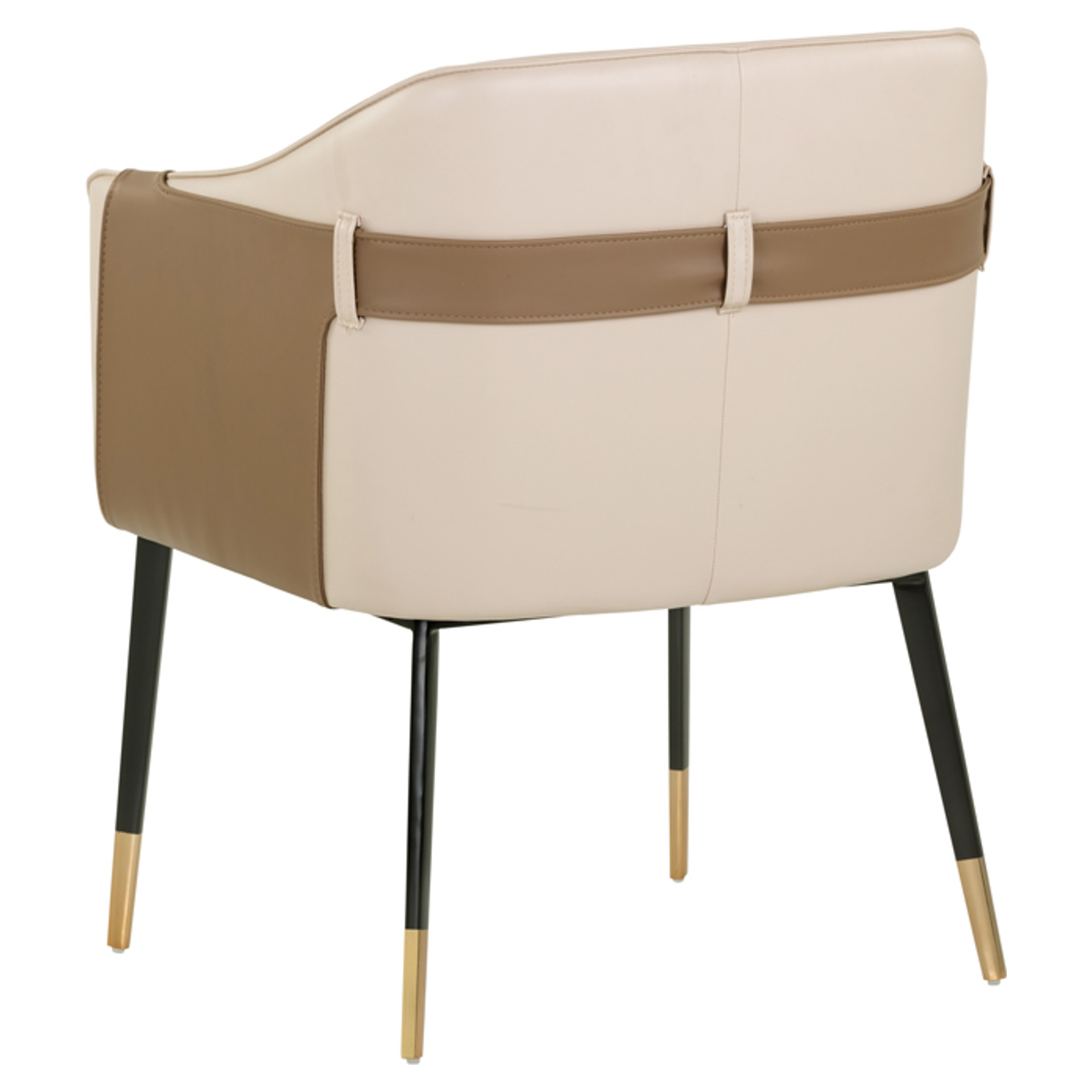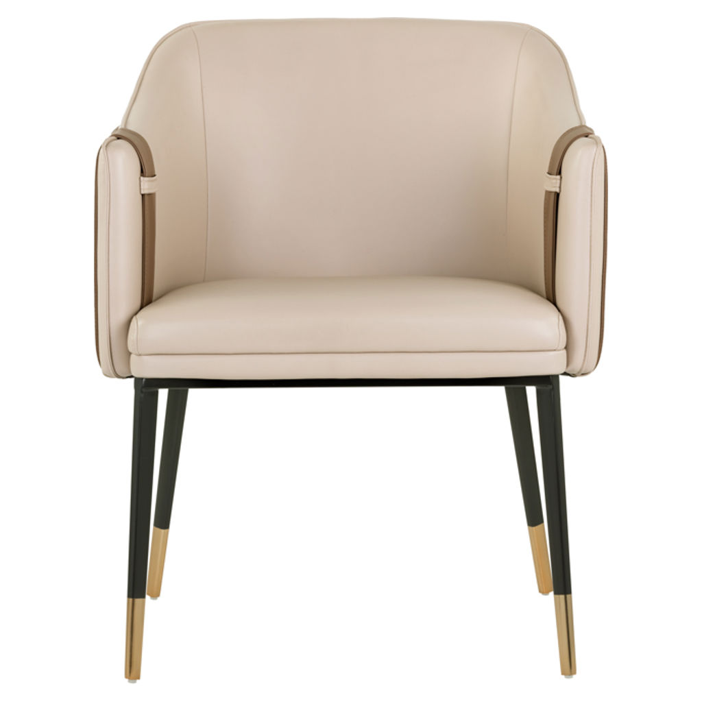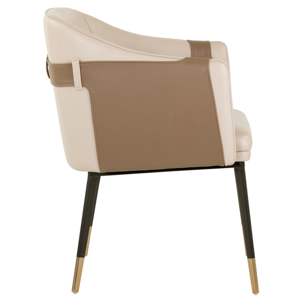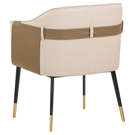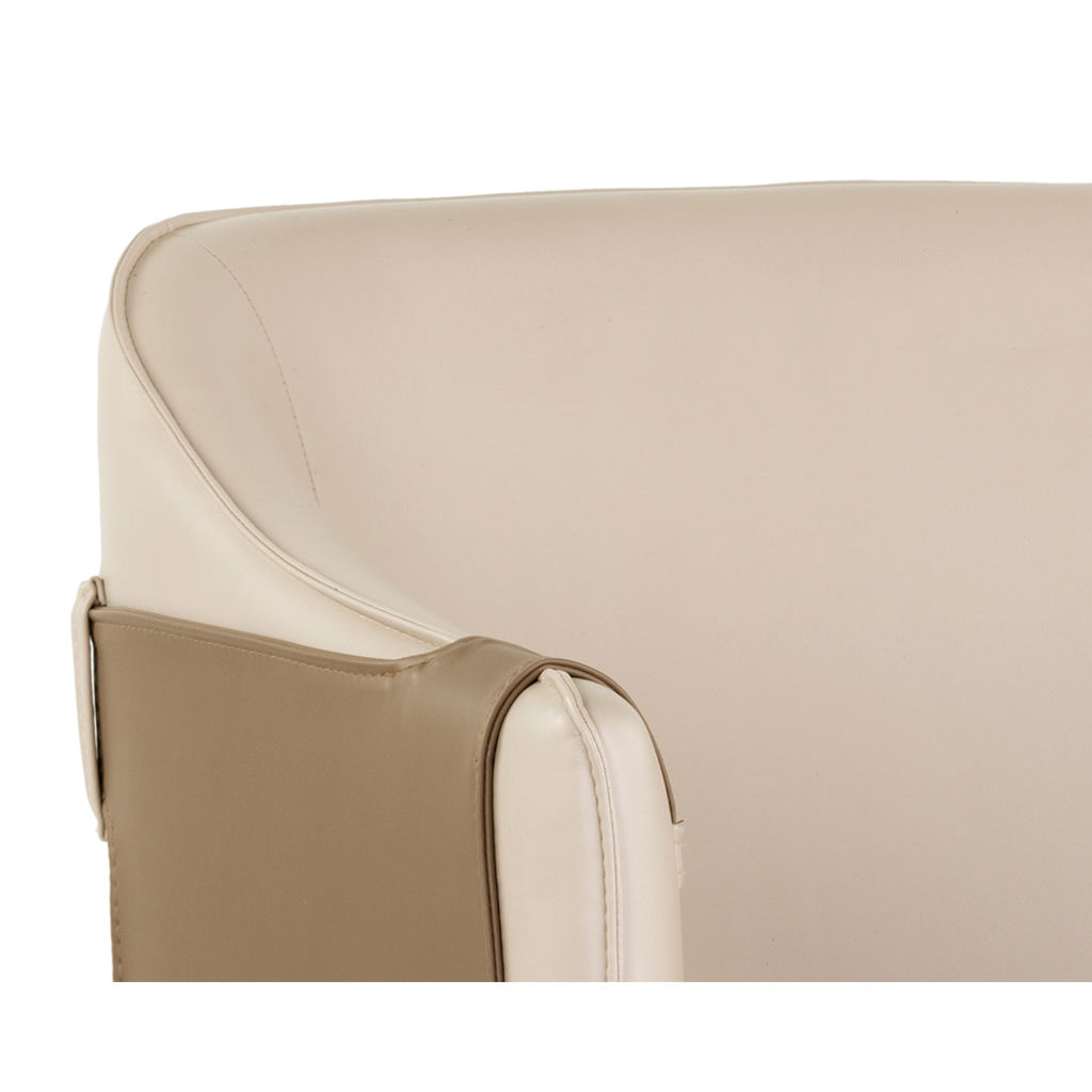 Le cuir synthétique beige offre une surface douce et résistante, facile d'entretien au quotidien. Les détails contrastés en brun et les coutures soignées révèlent un savoir-faire exceptionnel. Ses pieds élégants, rehaussés de touches dorées, apportent une note de raffinement qui ne passe pas inaperçue.