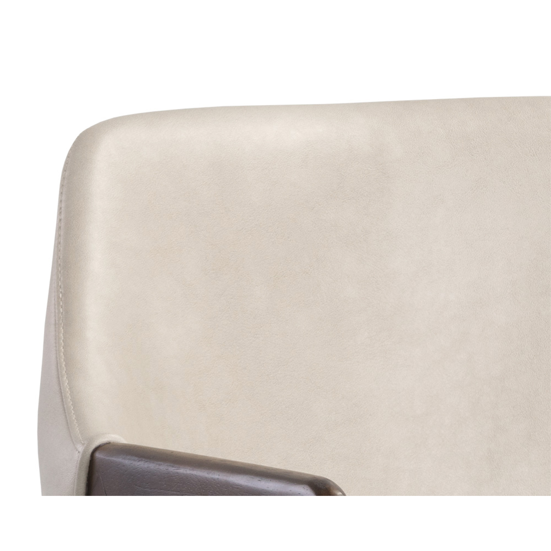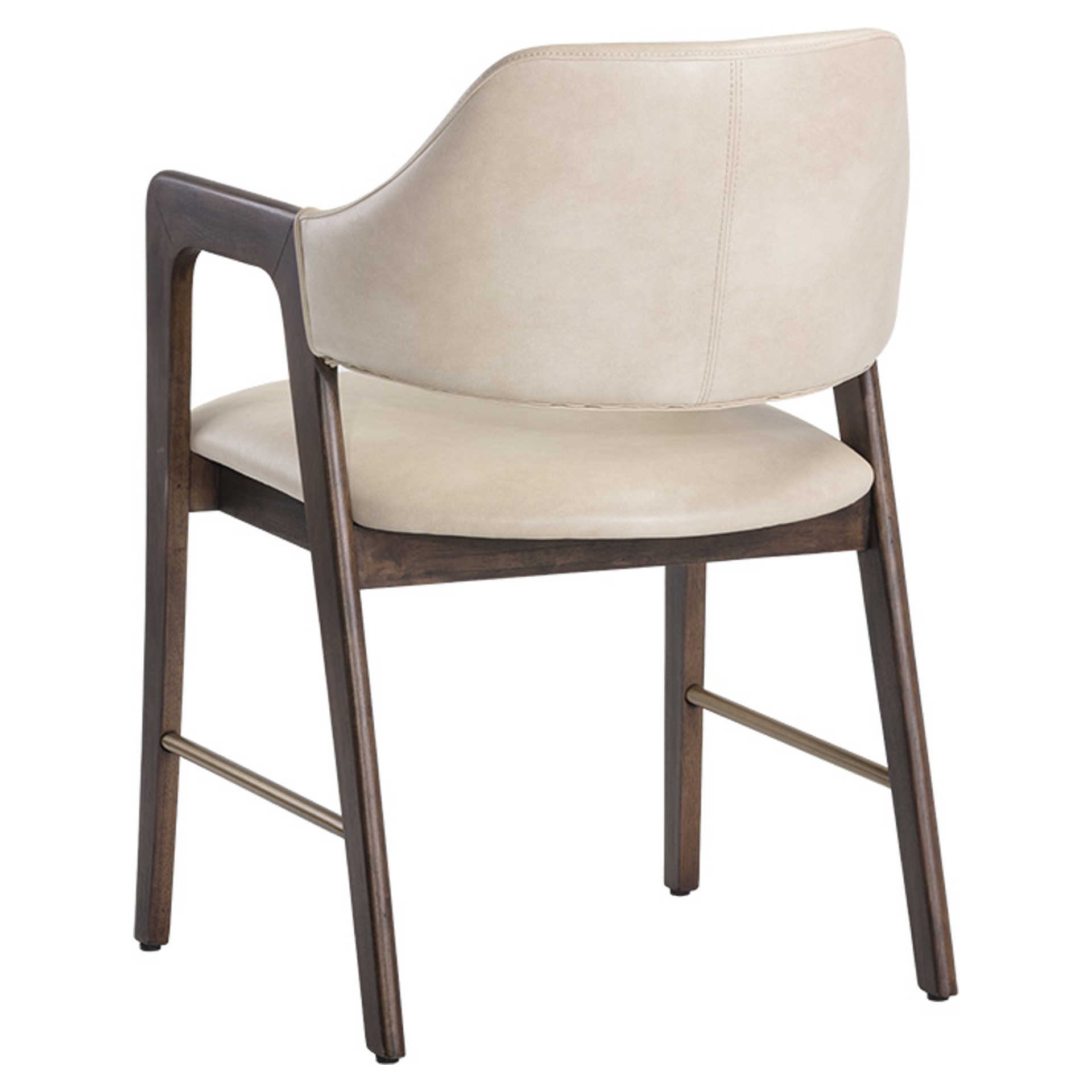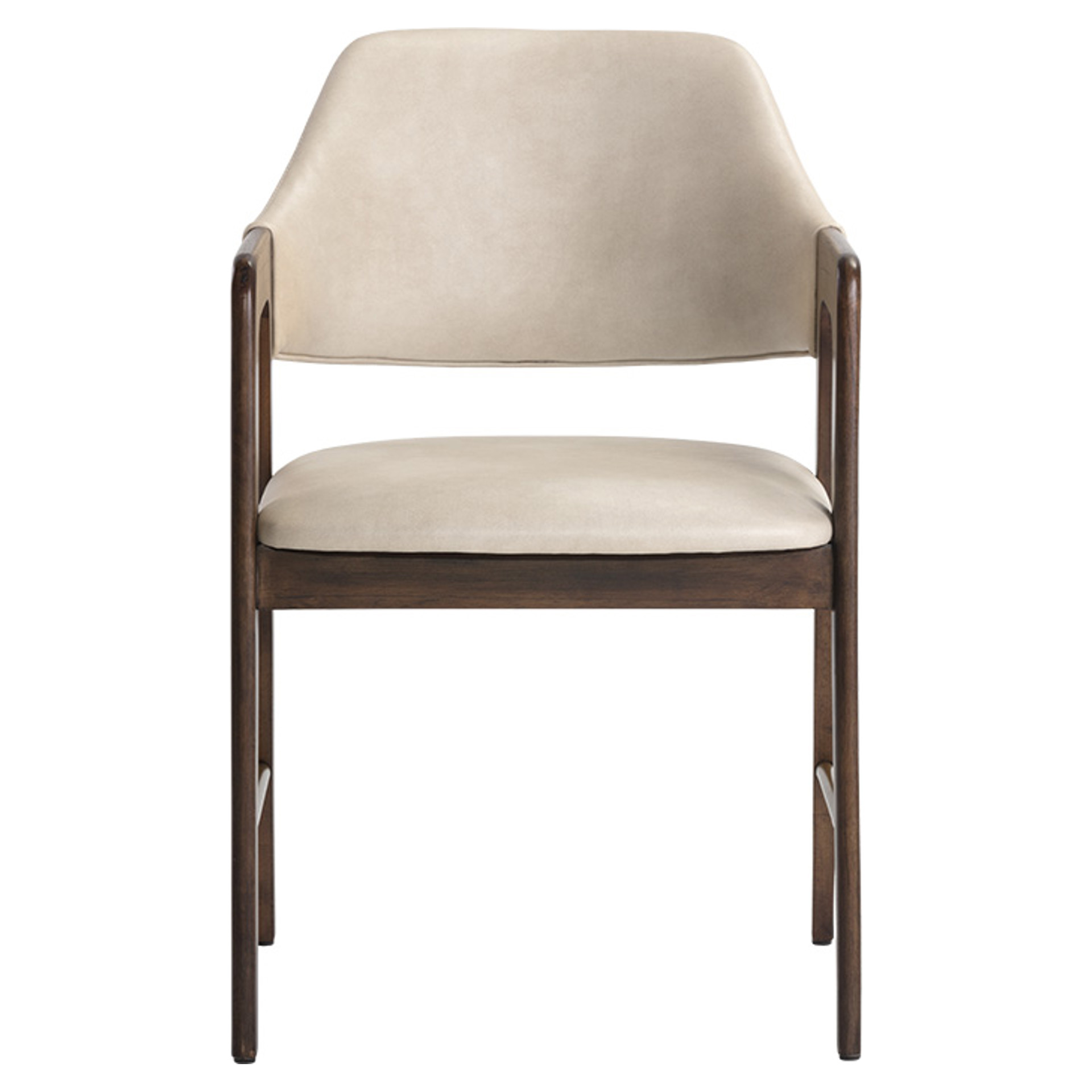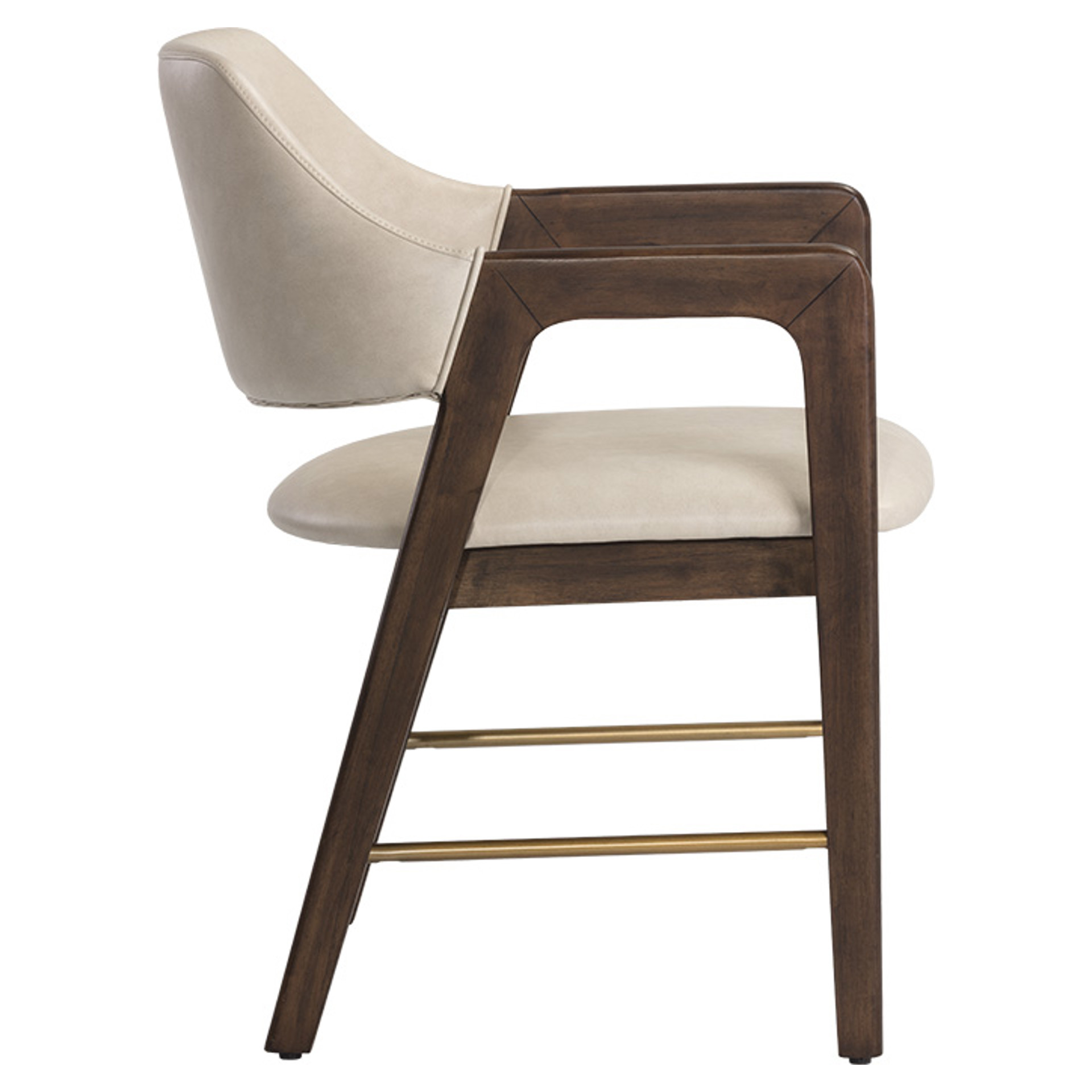 Découvrez la chaise Milton, où le design sophistiqué s'unit à un confort exceptionnel. Son cadre en bois de noyer richement veiné apporte une chaleur naturelle à votre espace, tandis que son revêtement en cuir synthétique beige offre une douceur soyeuse au toucher.