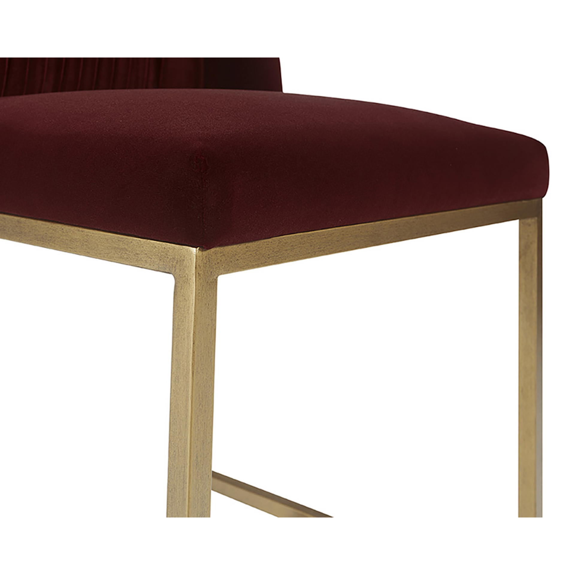Une chaise de salle à manger de transition de notre collection MIXT qui offre style et confort. Comporte des fronces délicates sur le dossier arrondi et des pieds en laiton antique exposés. Conçu en mousseline performance. Le tissu de performance est hydrofuge, résistant aux taches et facile à nettoyer.