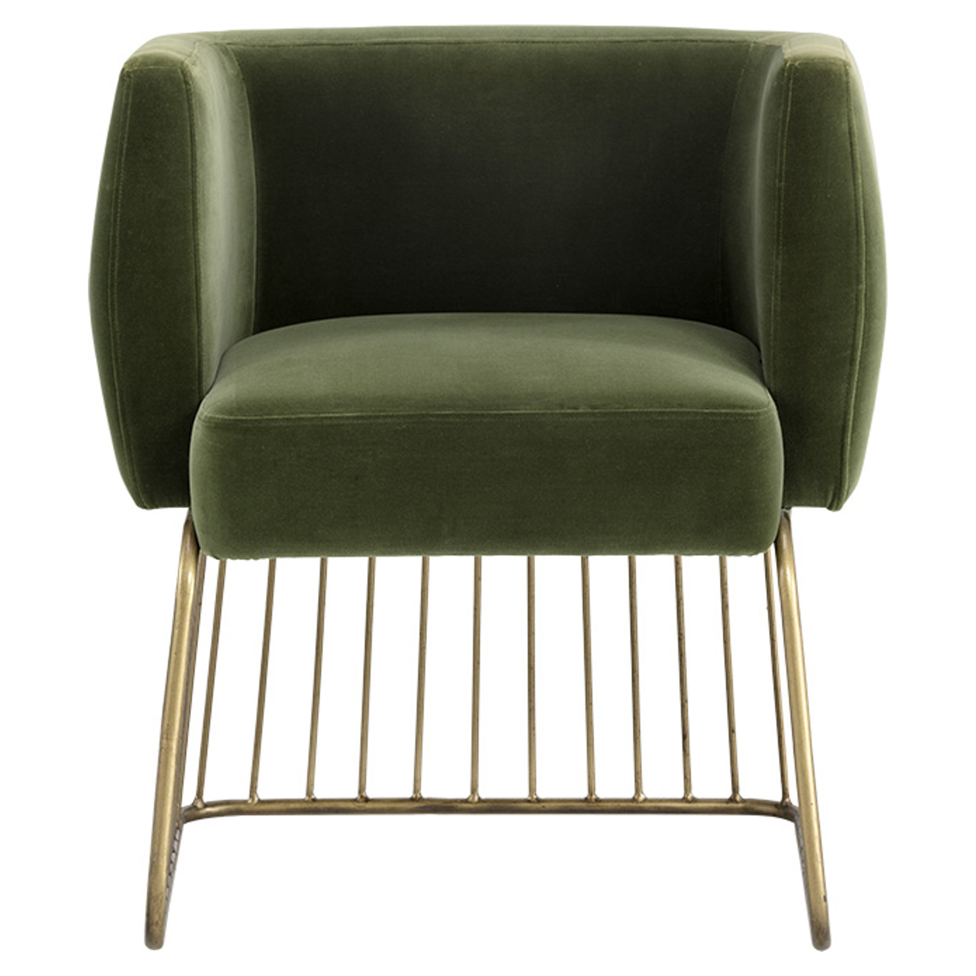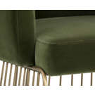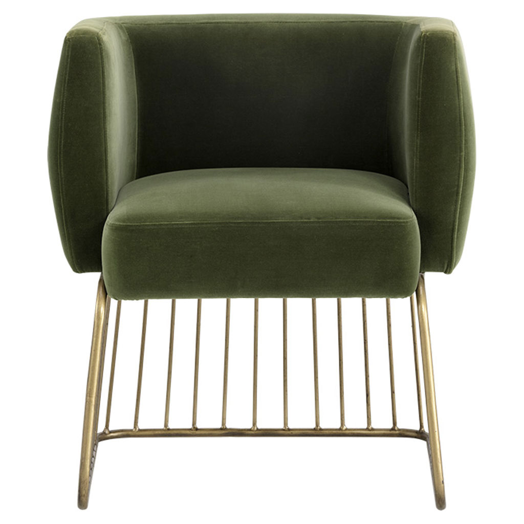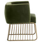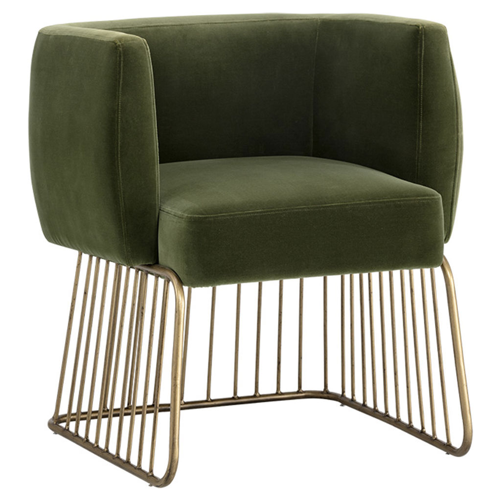 Le charme rustique et moderne se marient dans cette chaise de salle à manger de notre collection MIXT. Fabriquée dans notre tissu doux vert forêt et gris ombre avec un siège confortable et une base unique de style cage en laiton antique brossé. Parfaite pour les espaces de restauration, de salon et de bureau.
