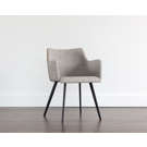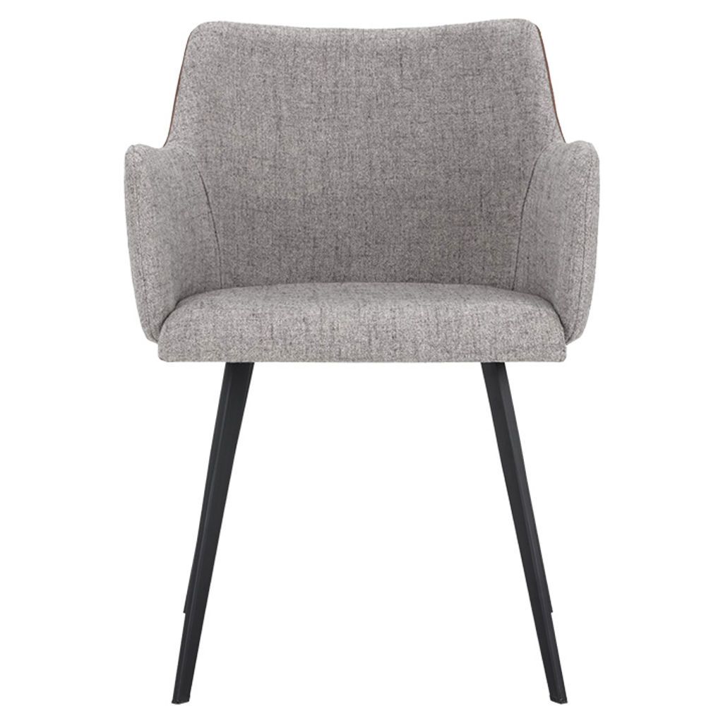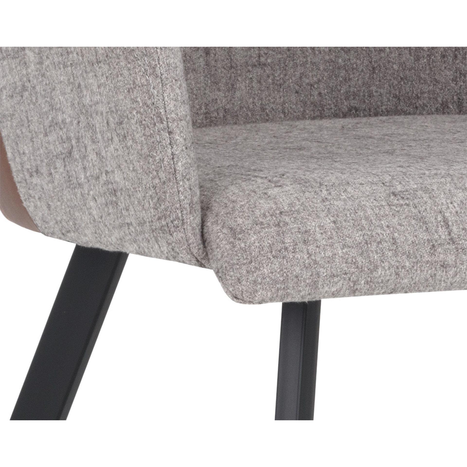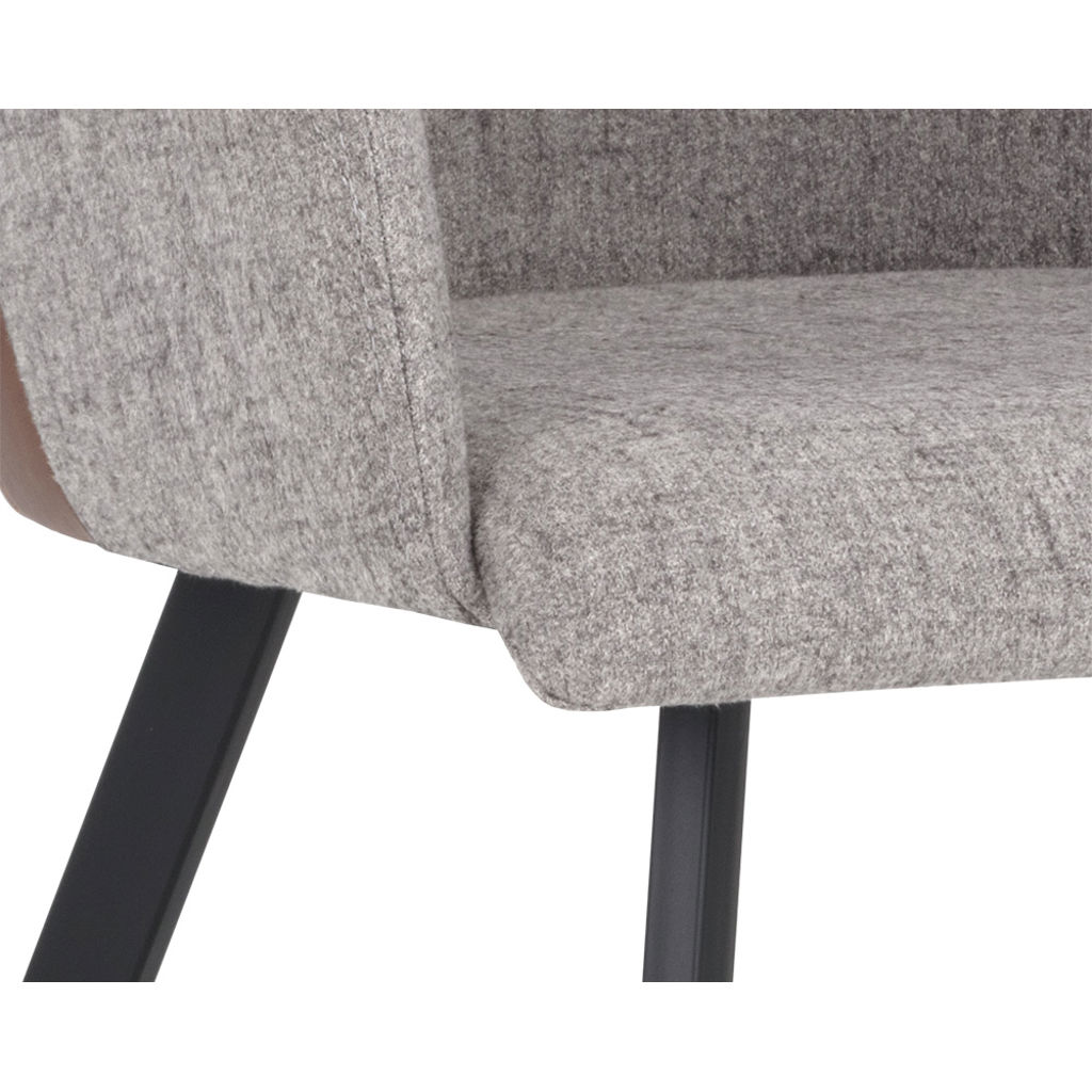 Cette cahise de salle à manger moderne apportera confort et style à tout espace résidentiel ou commercial. Comprend un siège intérieur en tissu gris November et un dossier de siège extérieur à coutures contrastantes en similicuir cognac bravo. Fini avec des pieds en fer enduits de poudre noire robustes.