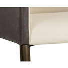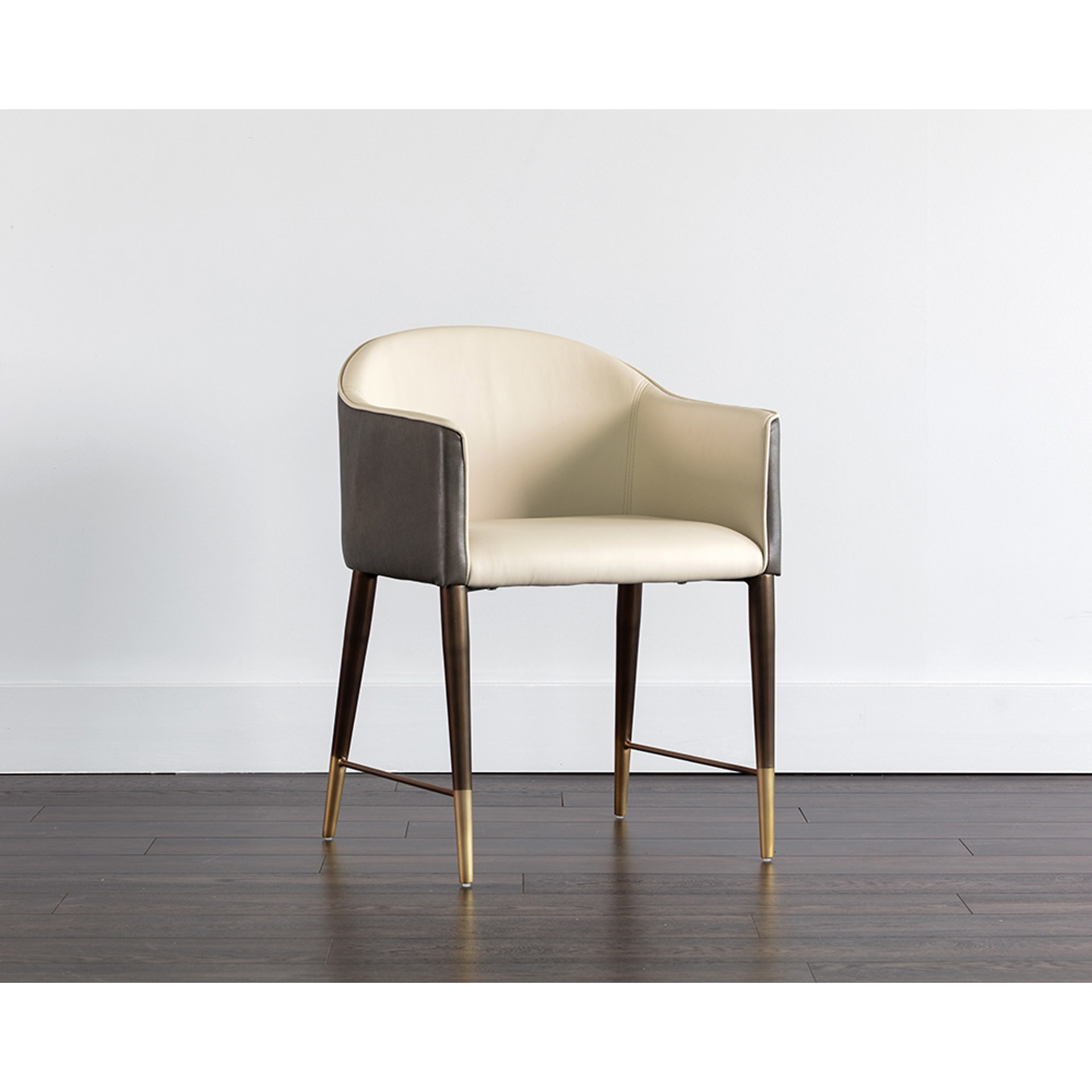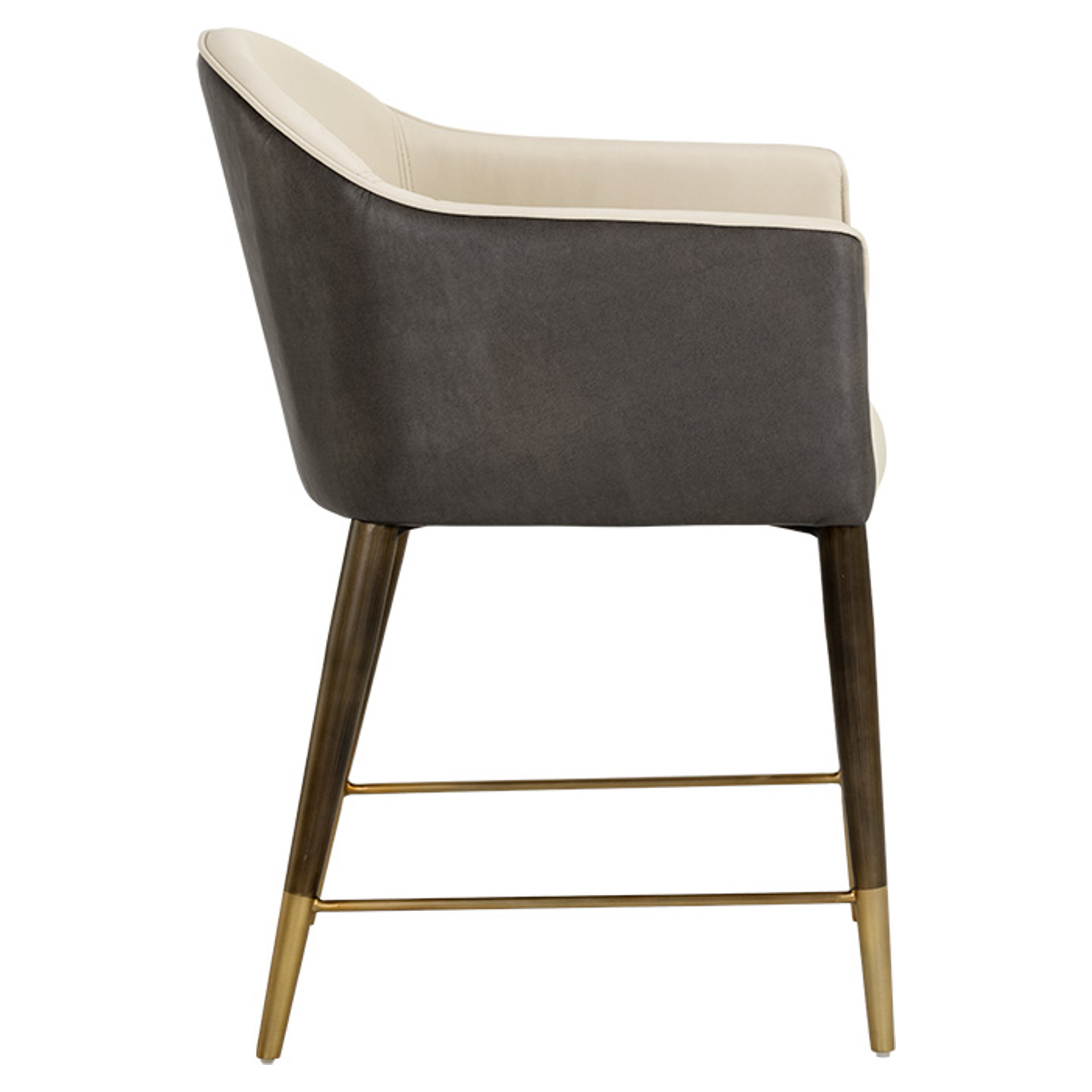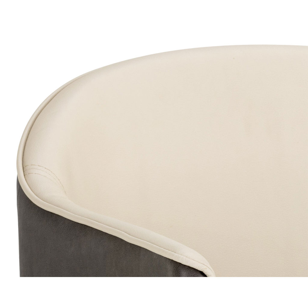 La combinaison harmonieuse du cuir synthétique crème et du tissu anthracite crée un contraste sophistiqué qui attire le regard. Ses pieds en acier brossé aux finitions dorées apportent une touche de luxe discret à l'ensemble.