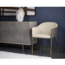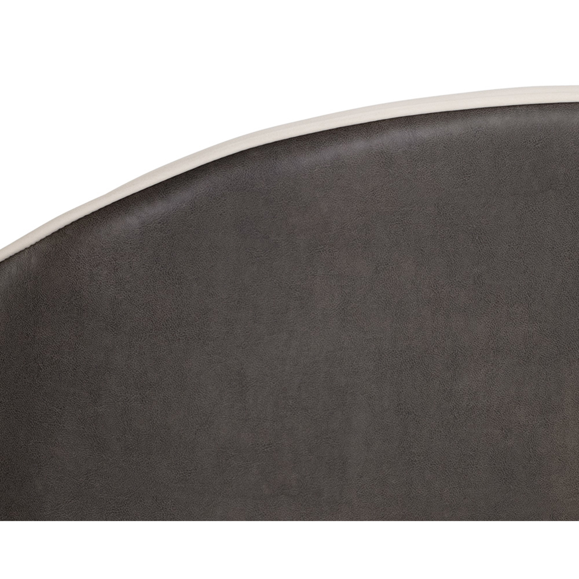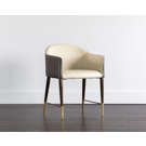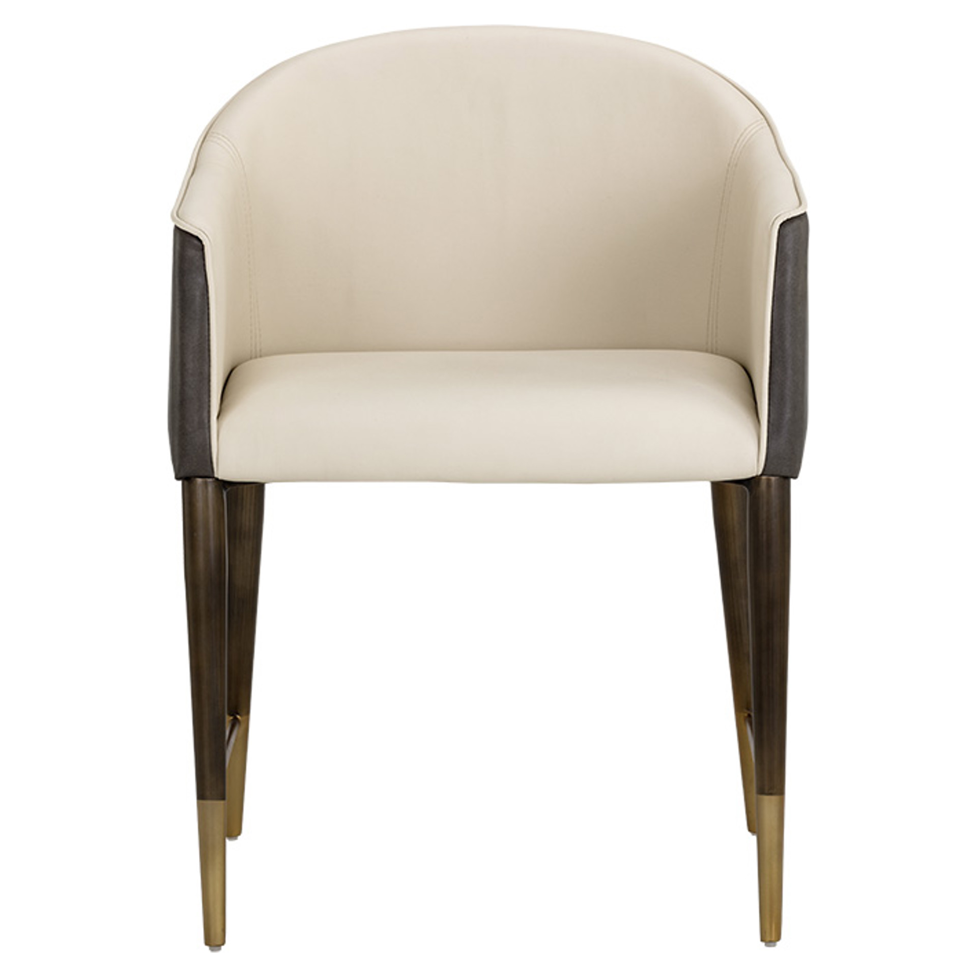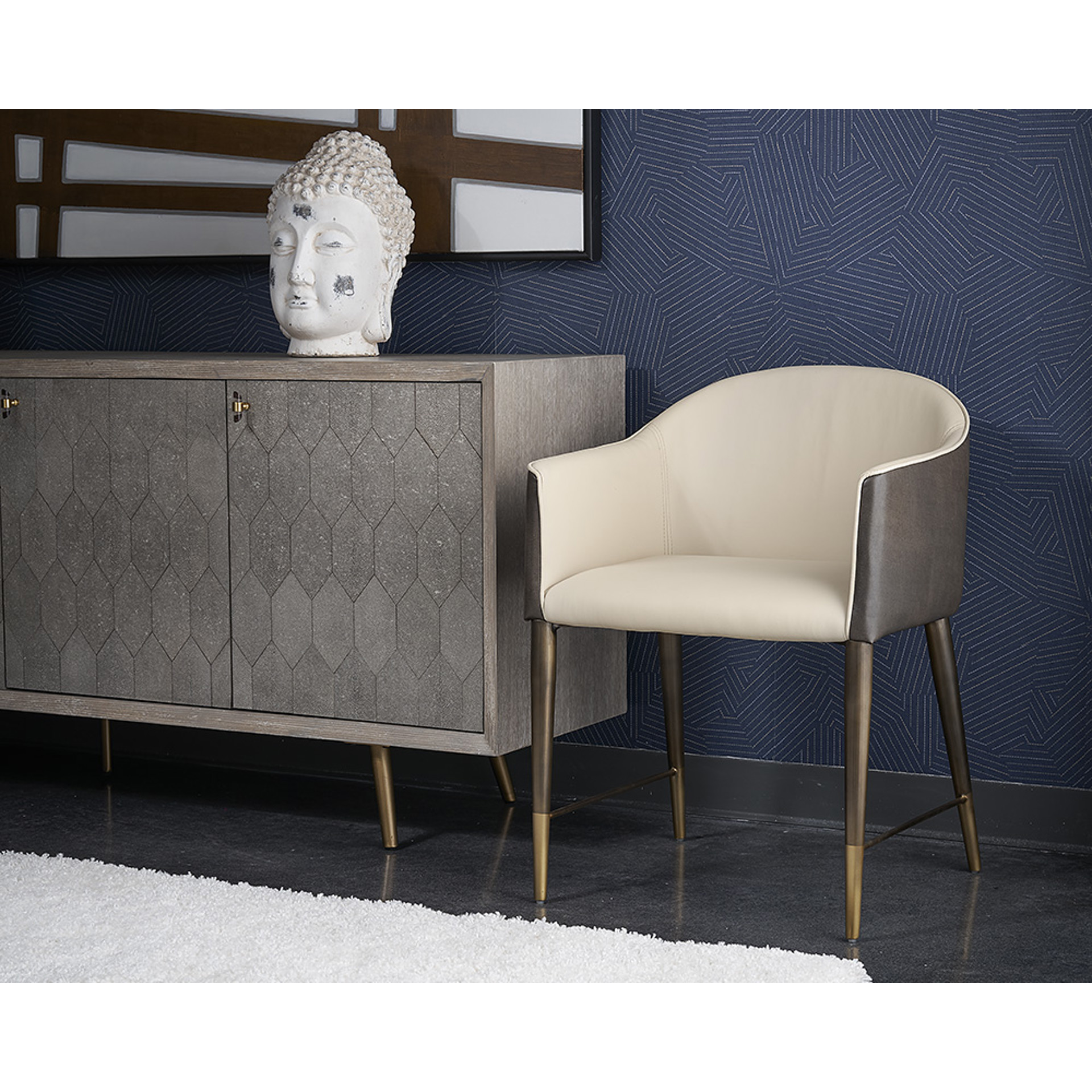 La combinaison harmonieuse du cuir synthétique crème et du tissu anthracite crée un contraste sophistiqué qui attire le regard. Ses pieds en acier brossé aux finitions dorées apportent une touche de luxe discret à l'ensemble.