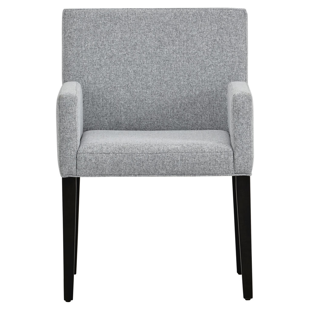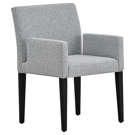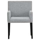 Les accoudoirs généreux et l'assise rembourrée vous offrent un soutien optimal, même lors des longs repas entre amis ou en famille. La structure robuste avec pieds en bois foncé garantit stabilité et durabilité au quotidien.