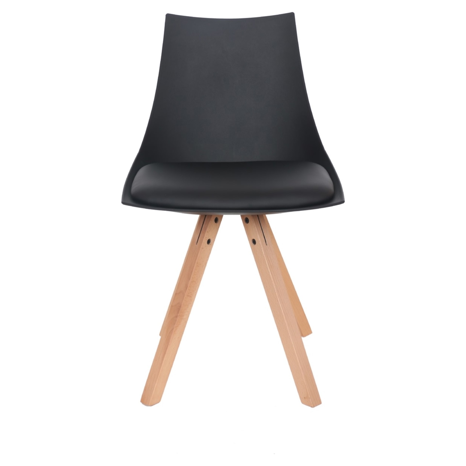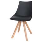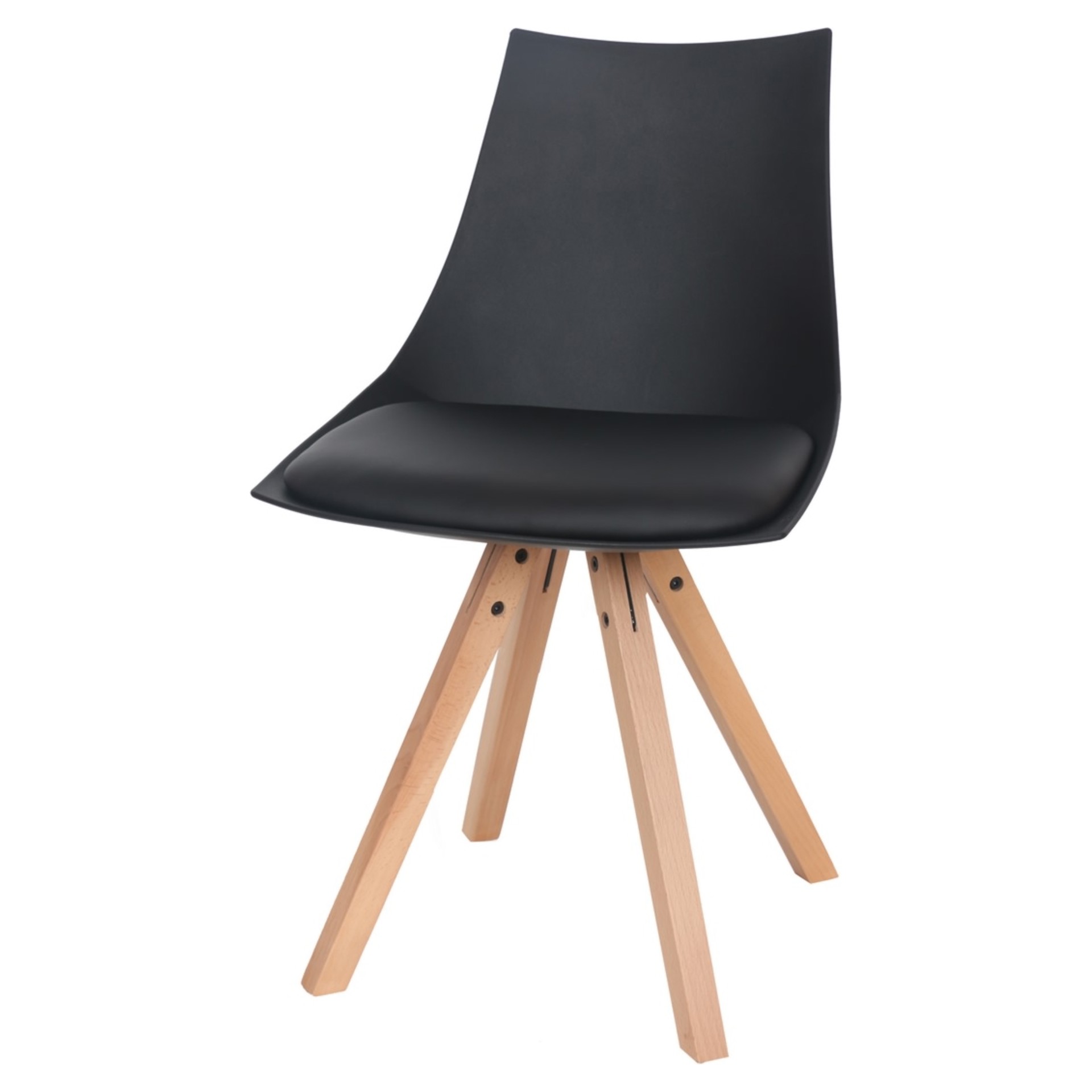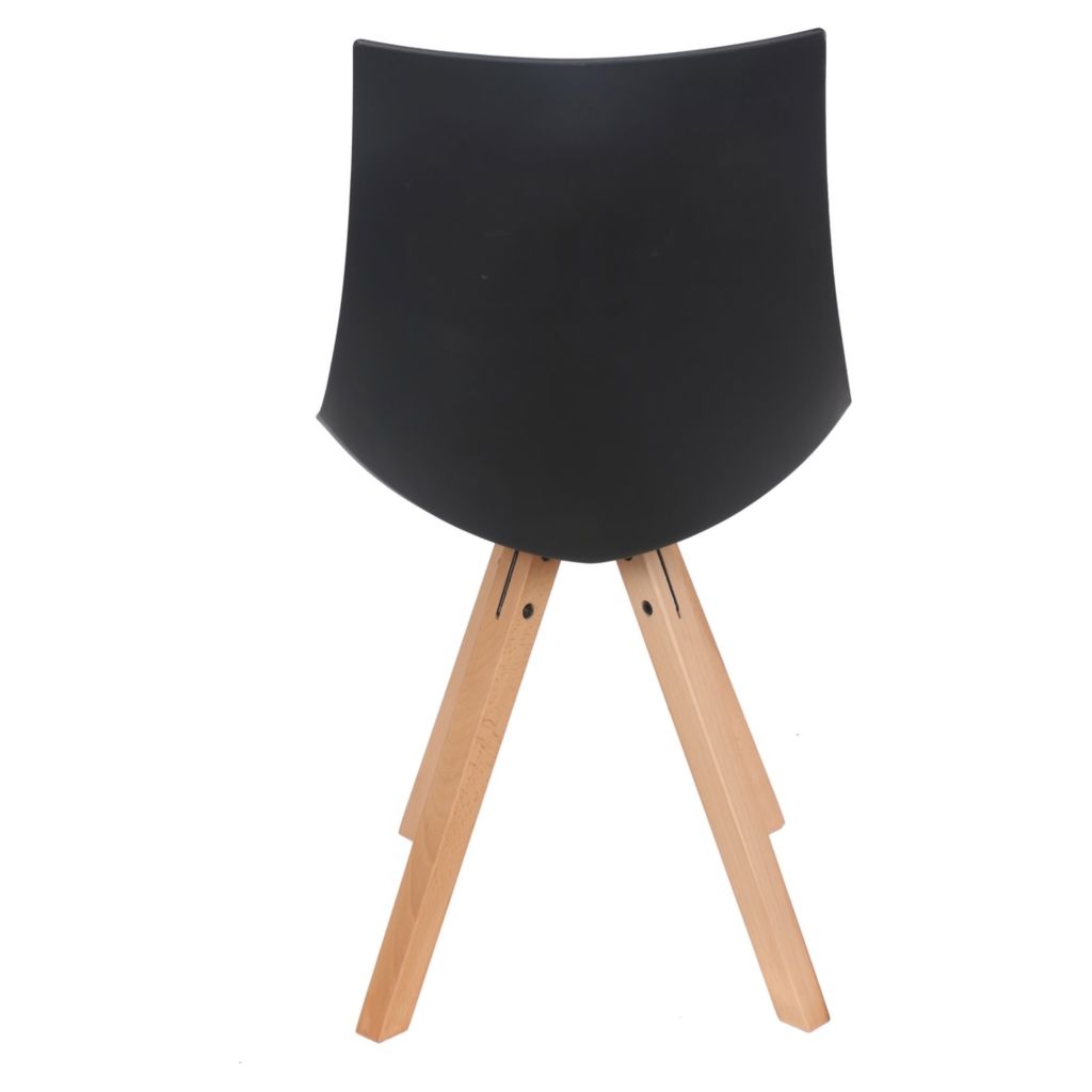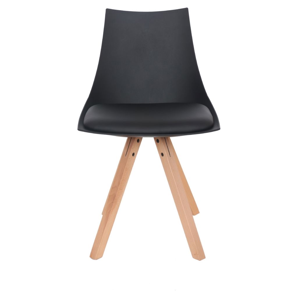 Cette chaise Modern allie parfaitement style contemporain et confort quotidien. Son design épuré avec piètement en bois naturel et assise en cuir synthétique noir s'intègre harmonieusement dans tous les intérieurs modernes.