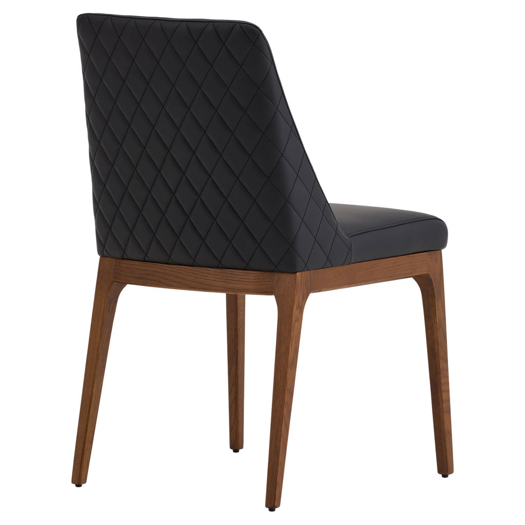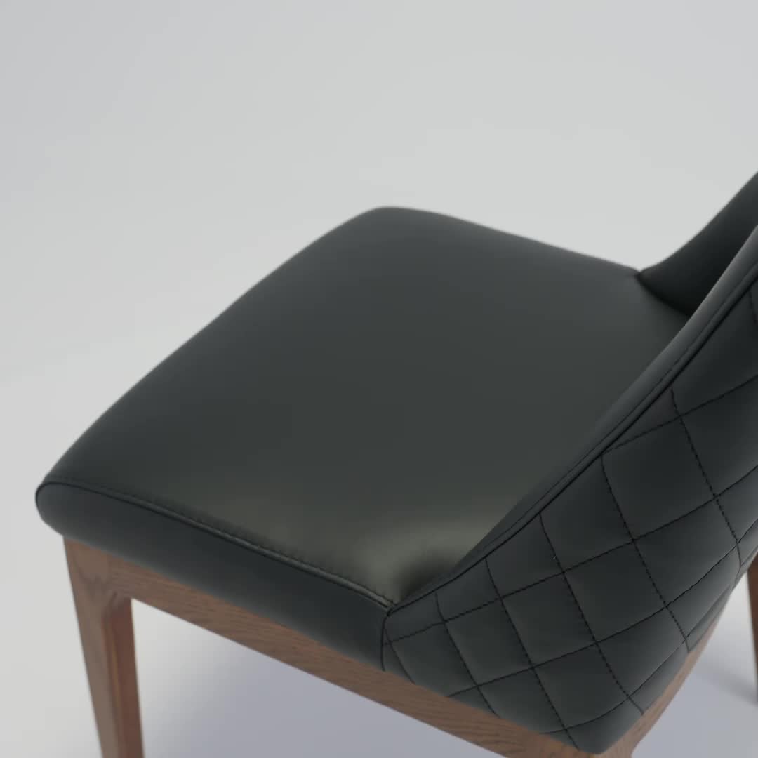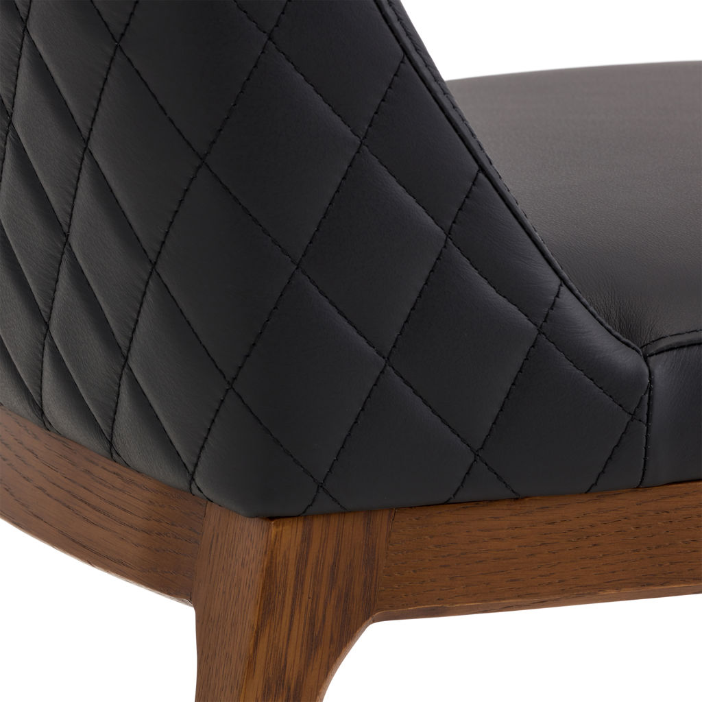 Transformez votre espace repas avec la chaise Gigi, où le raffinement rencontre le confort. Son cuir véritable noir aux surpiqûres diamant apporte une touche de luxe discret, tandis que sa structure en bois naturel réchauffe l'ensemble.