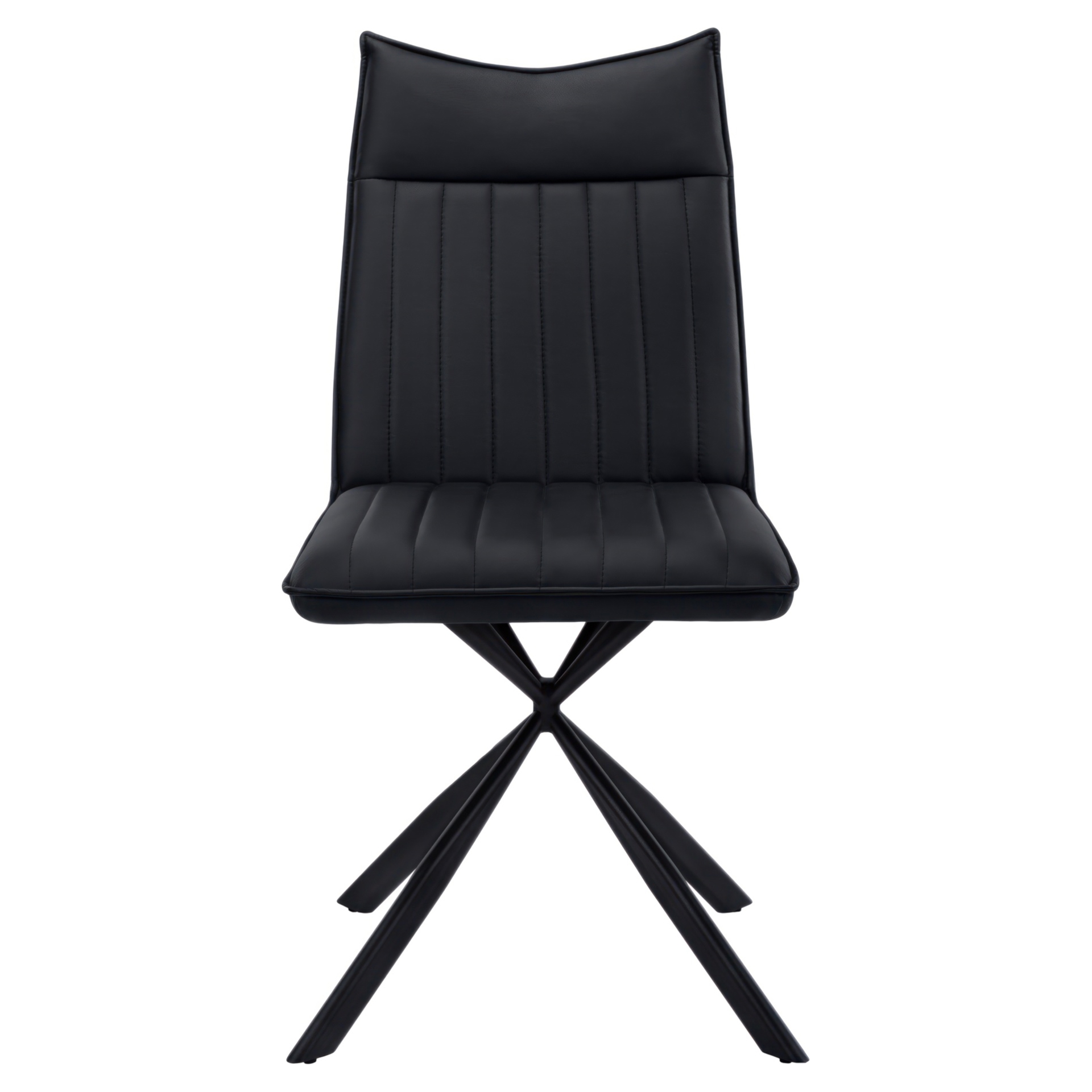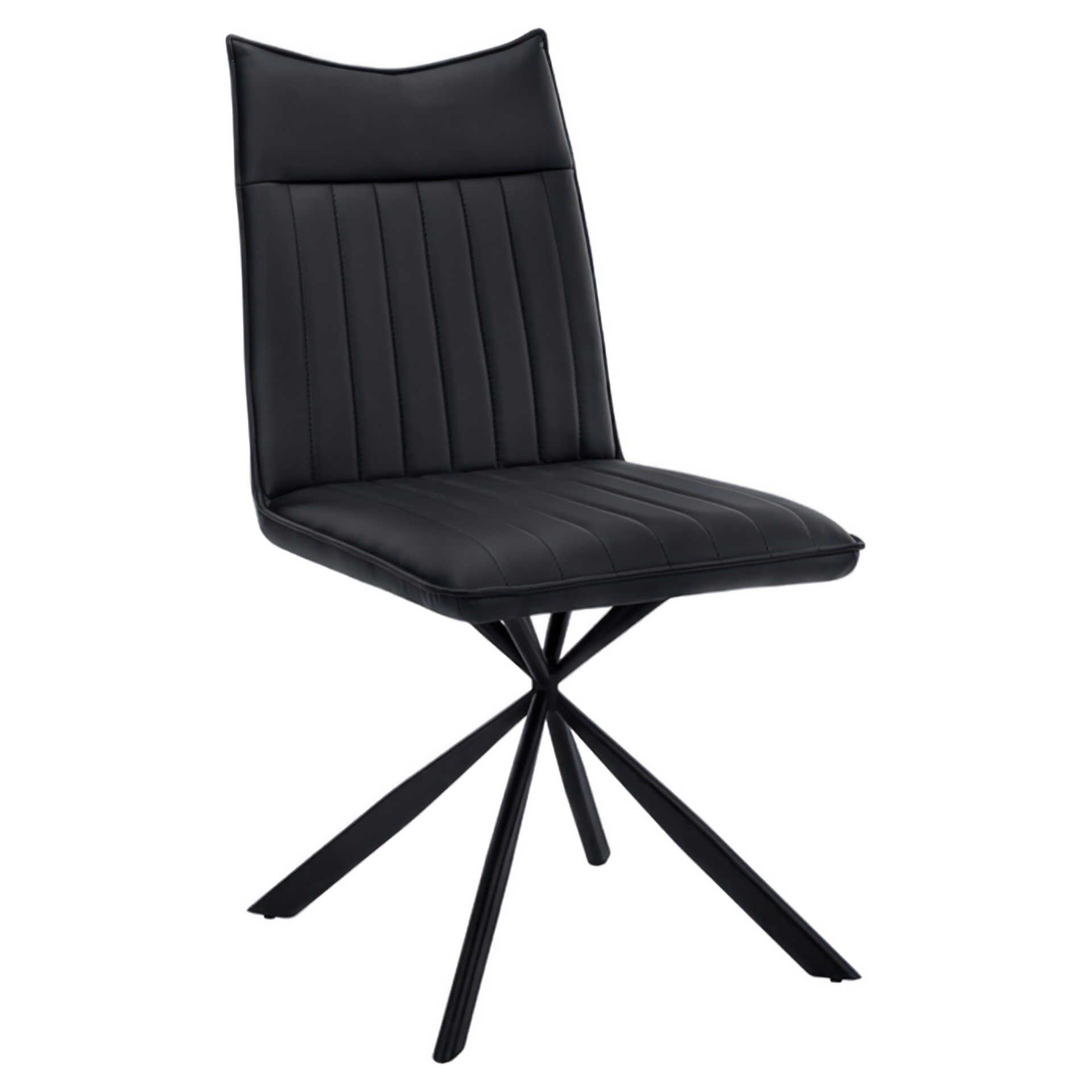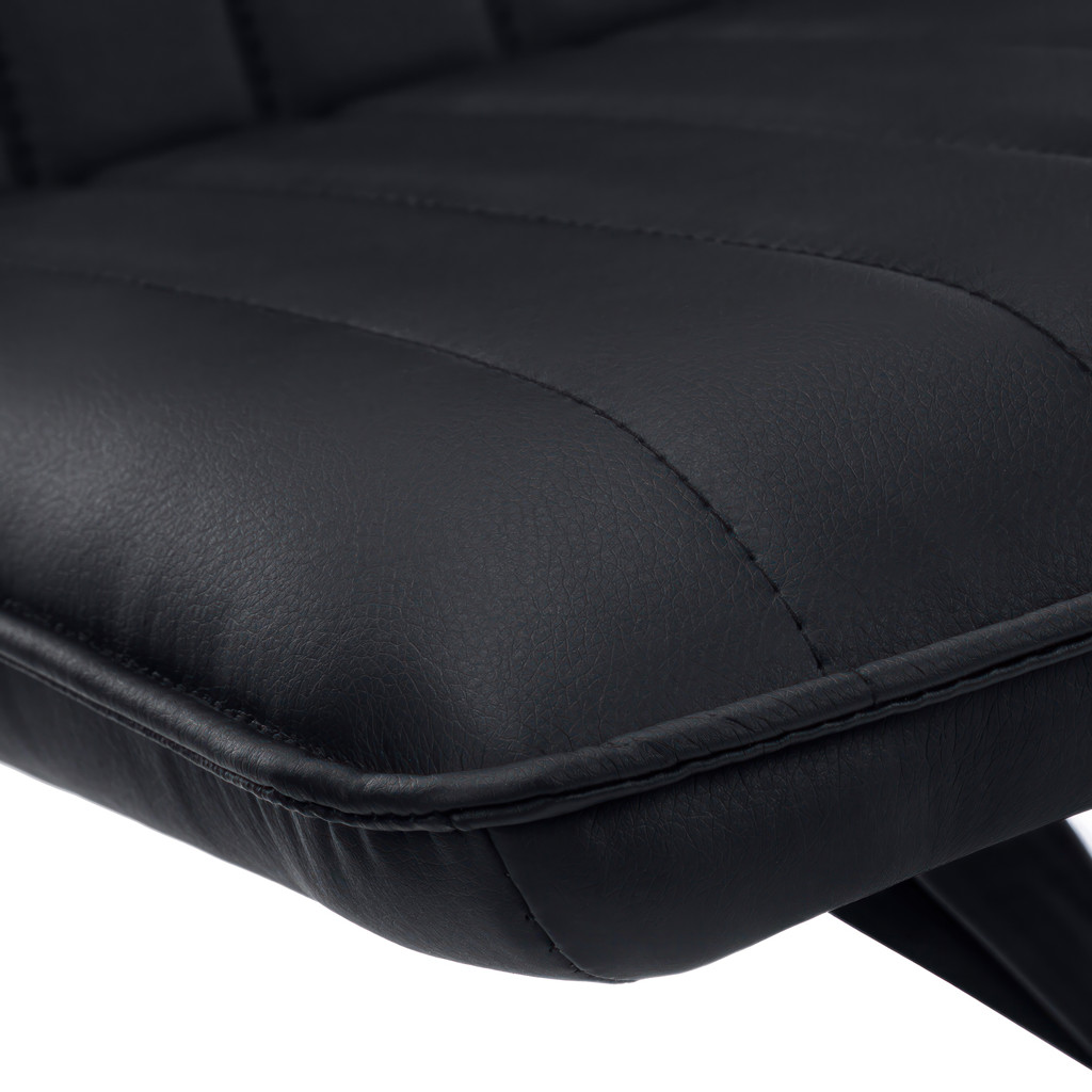 Cette chaise moderne allie élégance et confort avec son design épuré tout en noir. Son siège et dossier en cuir synthétique offrent un toucher agréable et une facilité d'entretien remarquable. Les surpiqûres verticales apportent une touche sophistiquée qui s'intègre parfaitement dans tous les intérieurs contemporains.