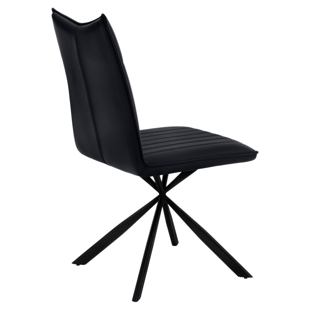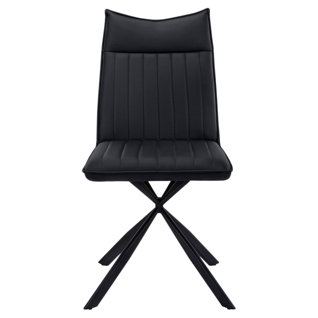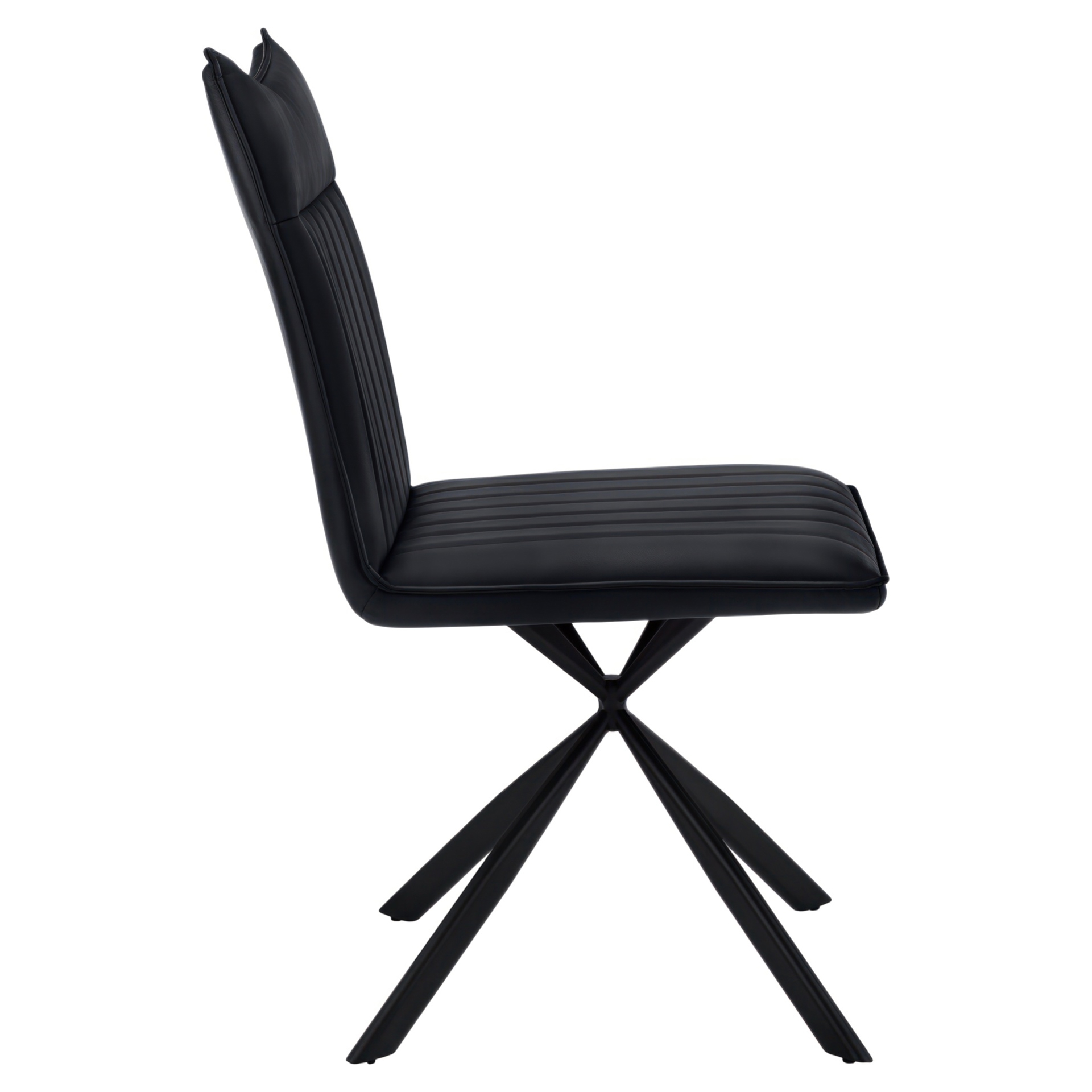 Cette chaise moderne allie élégance et confort avec son design épuré tout en noir. Son siège et dossier en cuir synthétique offrent un toucher agréable et une facilité d'entretien remarquable. Les surpiqûres verticales apportent une touche sophistiquée qui s'intègre parfaitement dans tous les intérieurs contemporains.