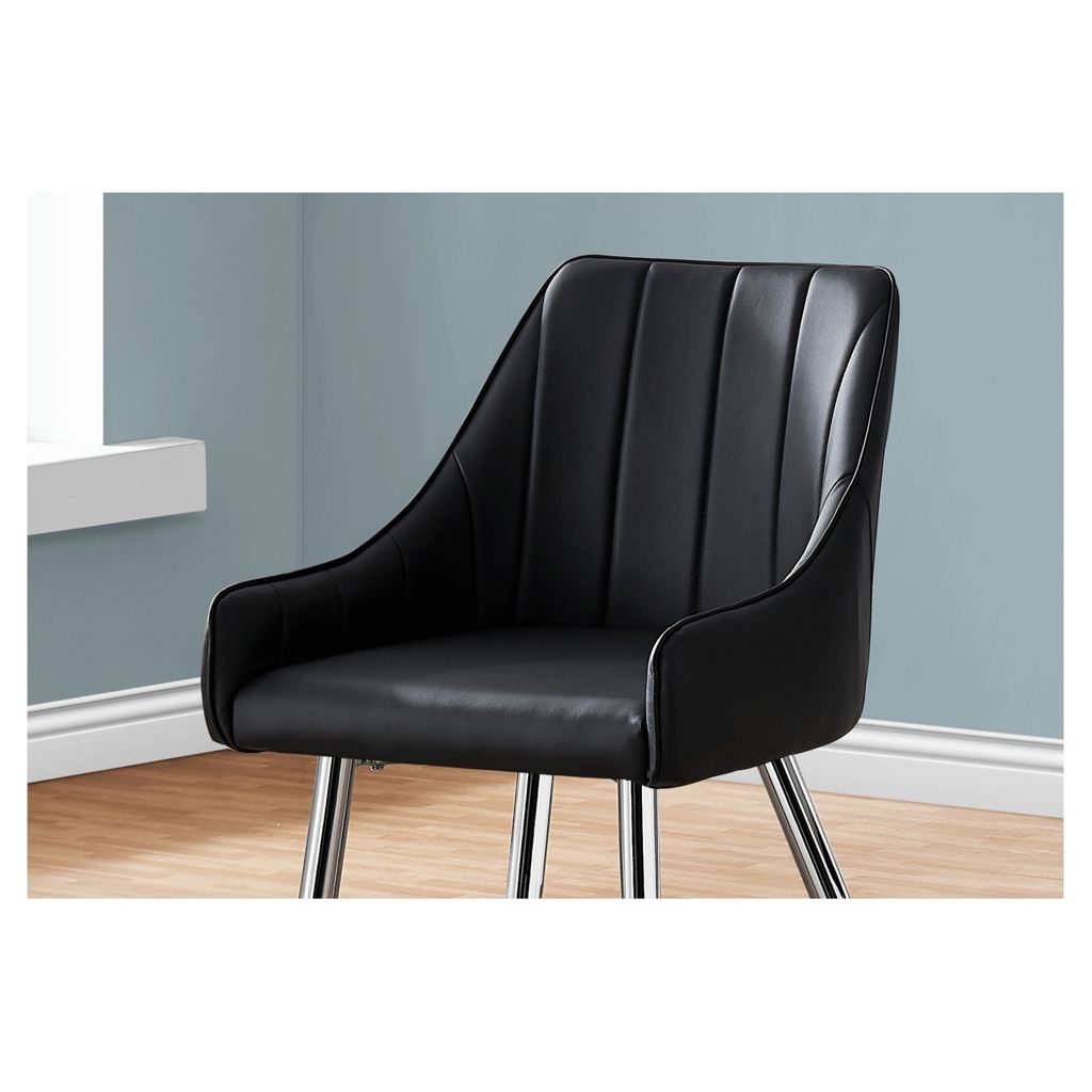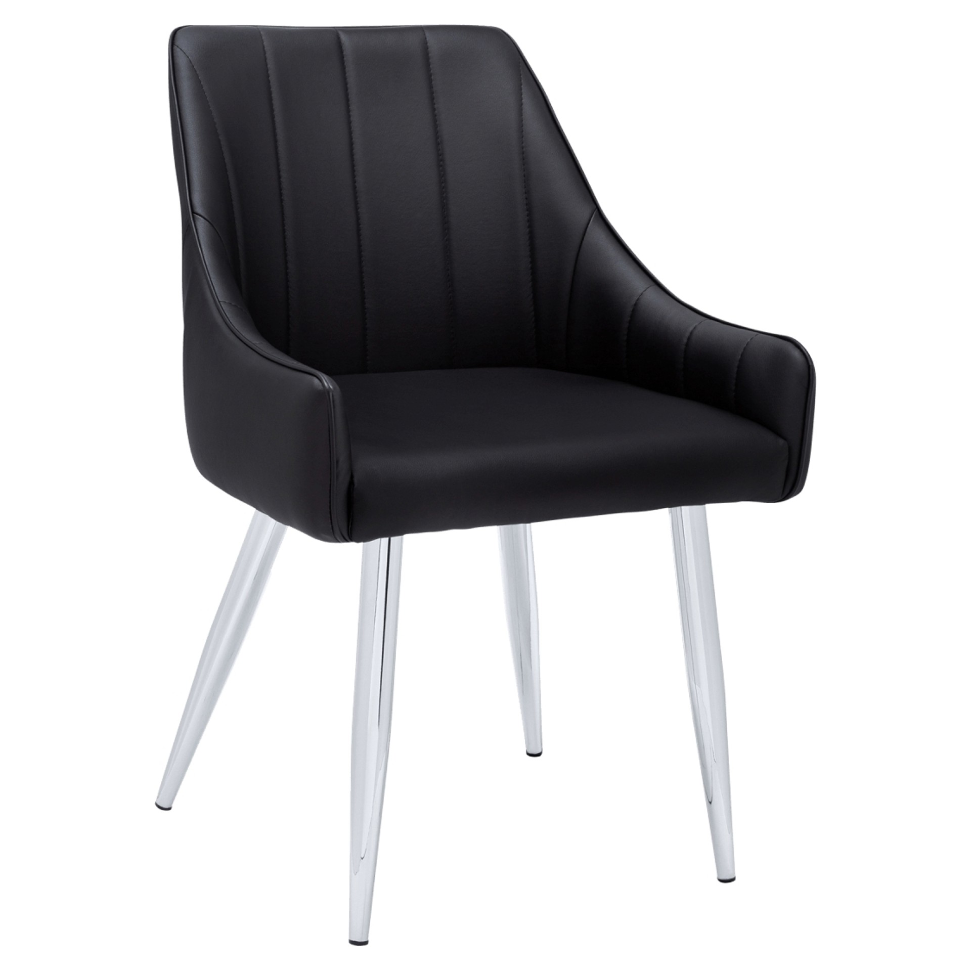 Cette chaise moderne apporte une élégance intemporelle à votre espace repas. Son revêtement en cuir synthétique noir offre un confort optimal tout en étant facile d'entretien - parfait pour les familles actives.