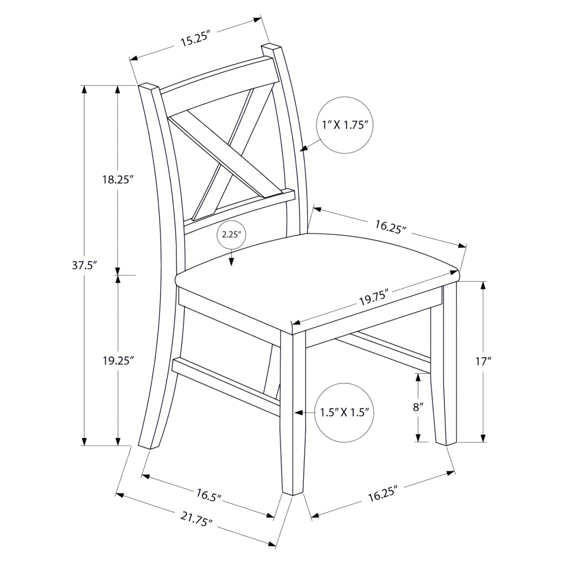 Ensemble de 2 chaises de salle à manger Monarch Specialties I 1333