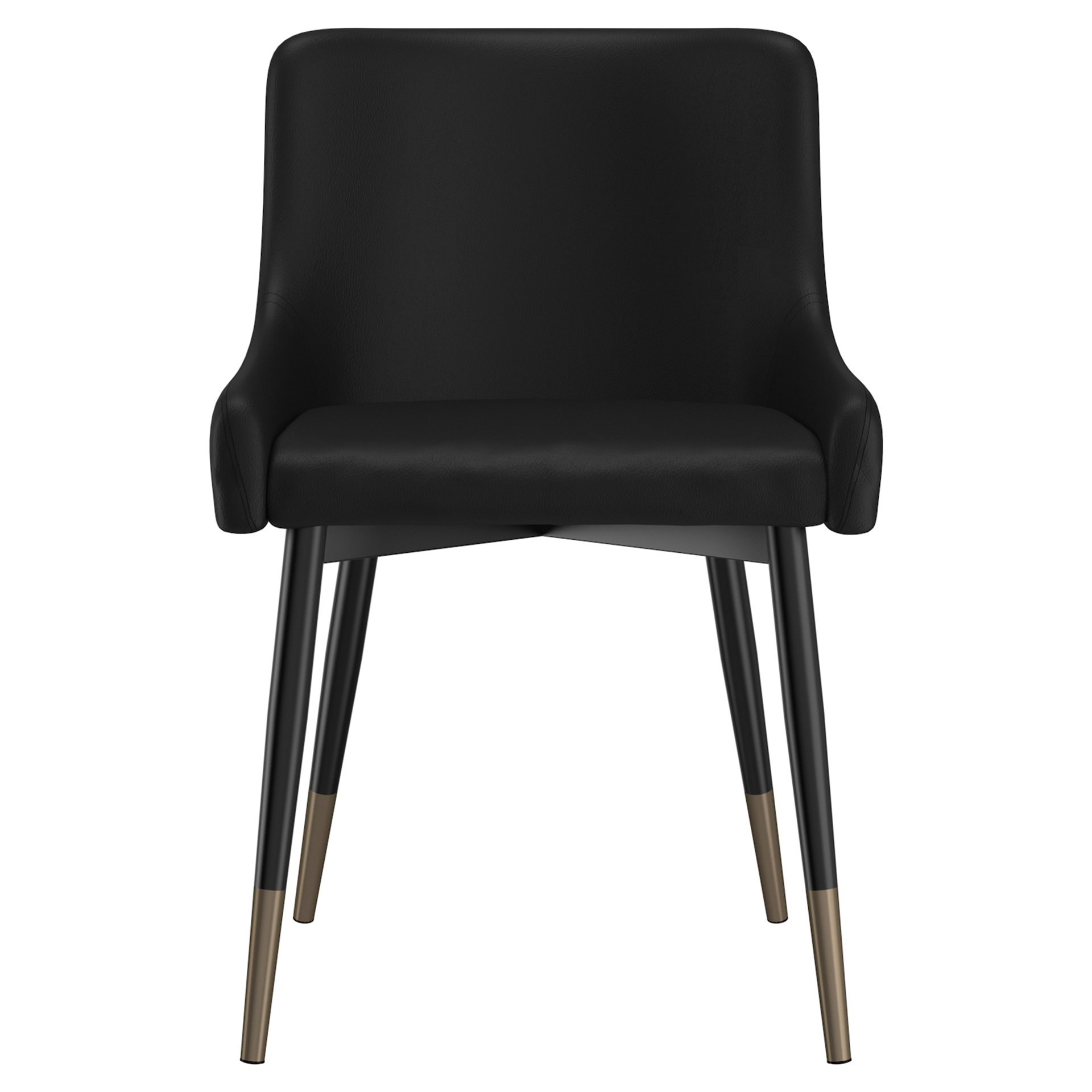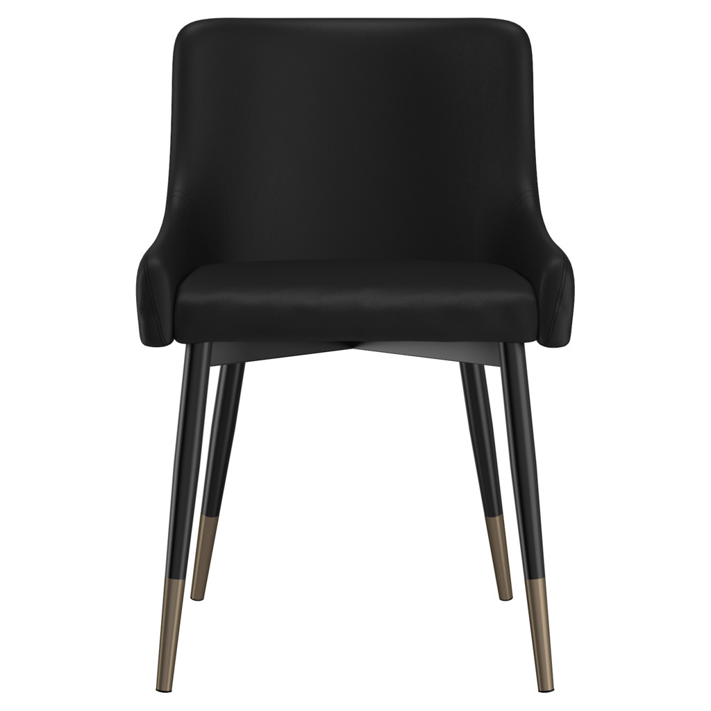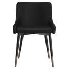 Ses lignes contemporaines et ses pieds bicolores noir et bronze créent un contraste saisissant qui s'adapte à tous les styles de décoration. Le dossier légèrement incurvé et l'assise généreuse garantissent un confort optimal pour vos repas et moments de convivialité.