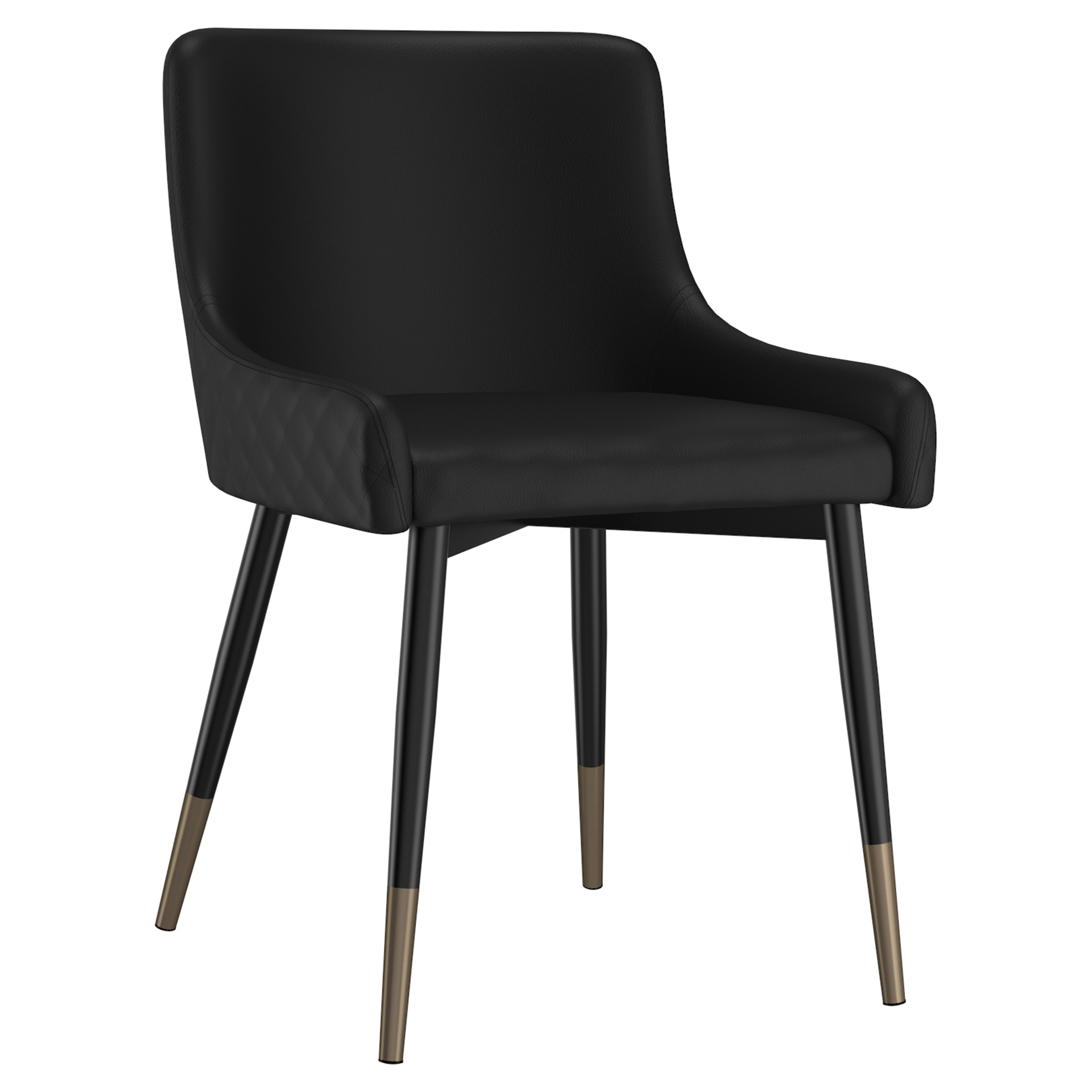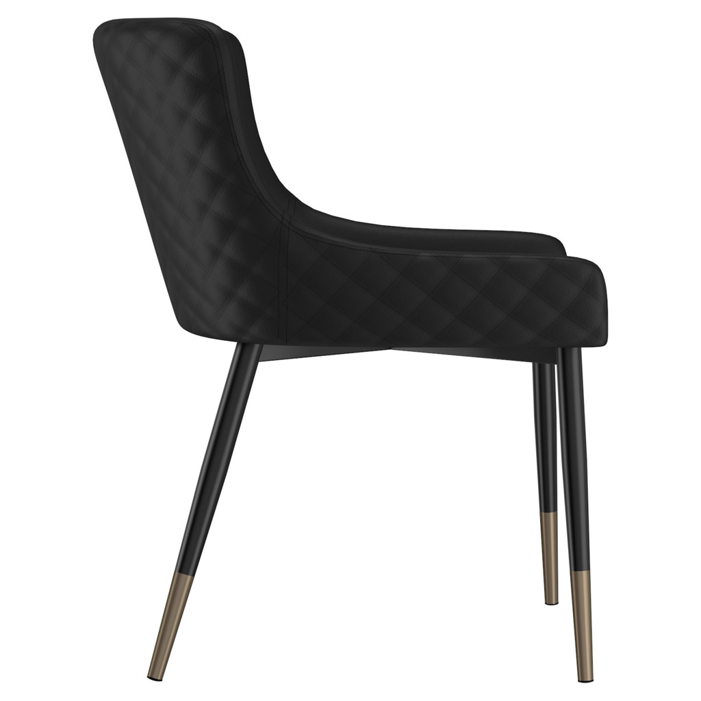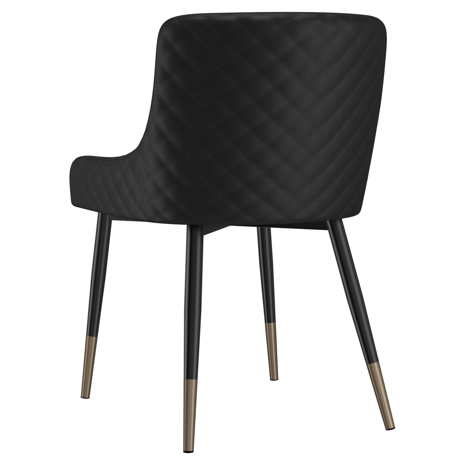 Découvrez la parfaite alliance entre confort et sophistication avec la chaise Xander. Son revêtement en cuir synthétique noir, rehaussé d'un élégant matelassage losangé, apporte une touche raffinée à votre espace repas.