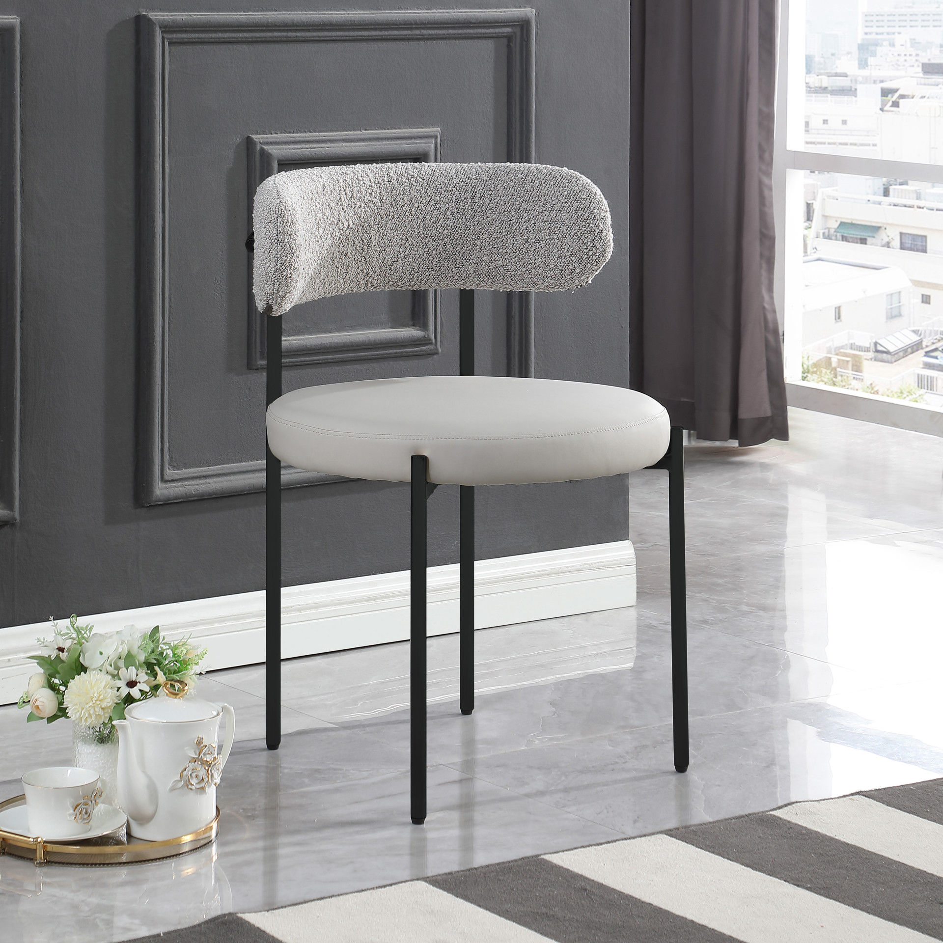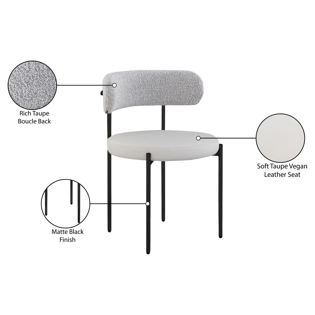Apportez un confort moderne à votre salle à manger avec cette chaise de salle à manger en similicuir taupe et tissu bouclé Beacon.