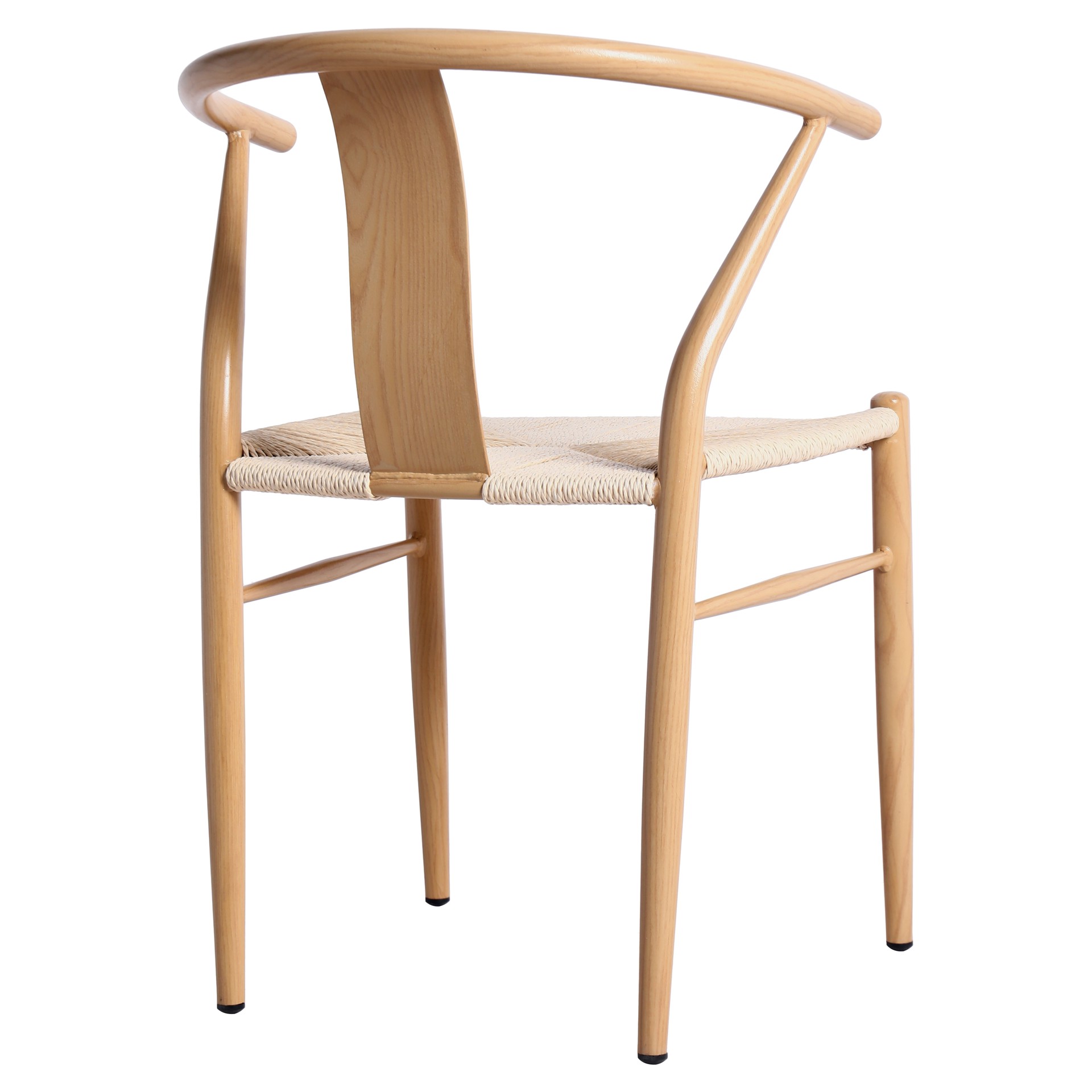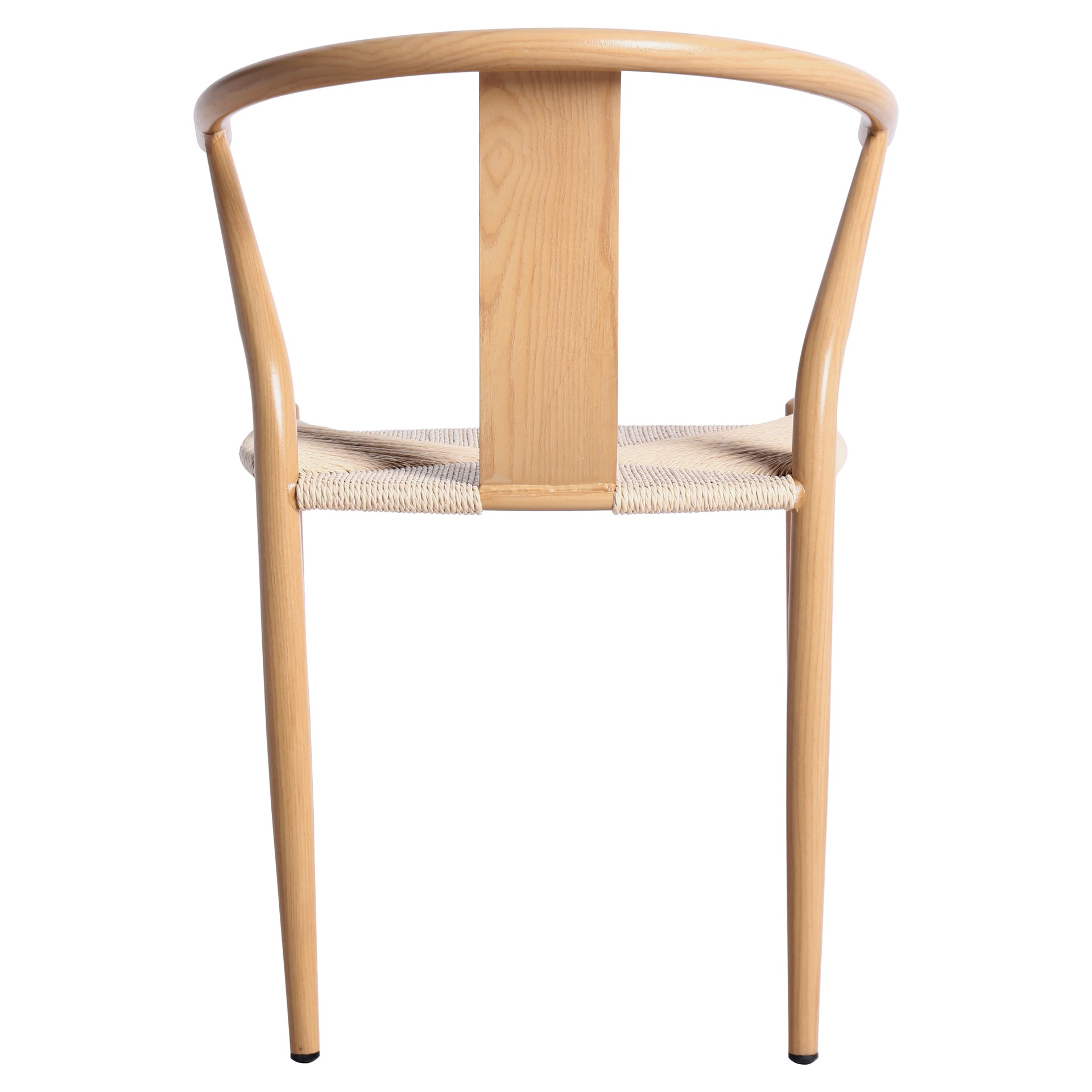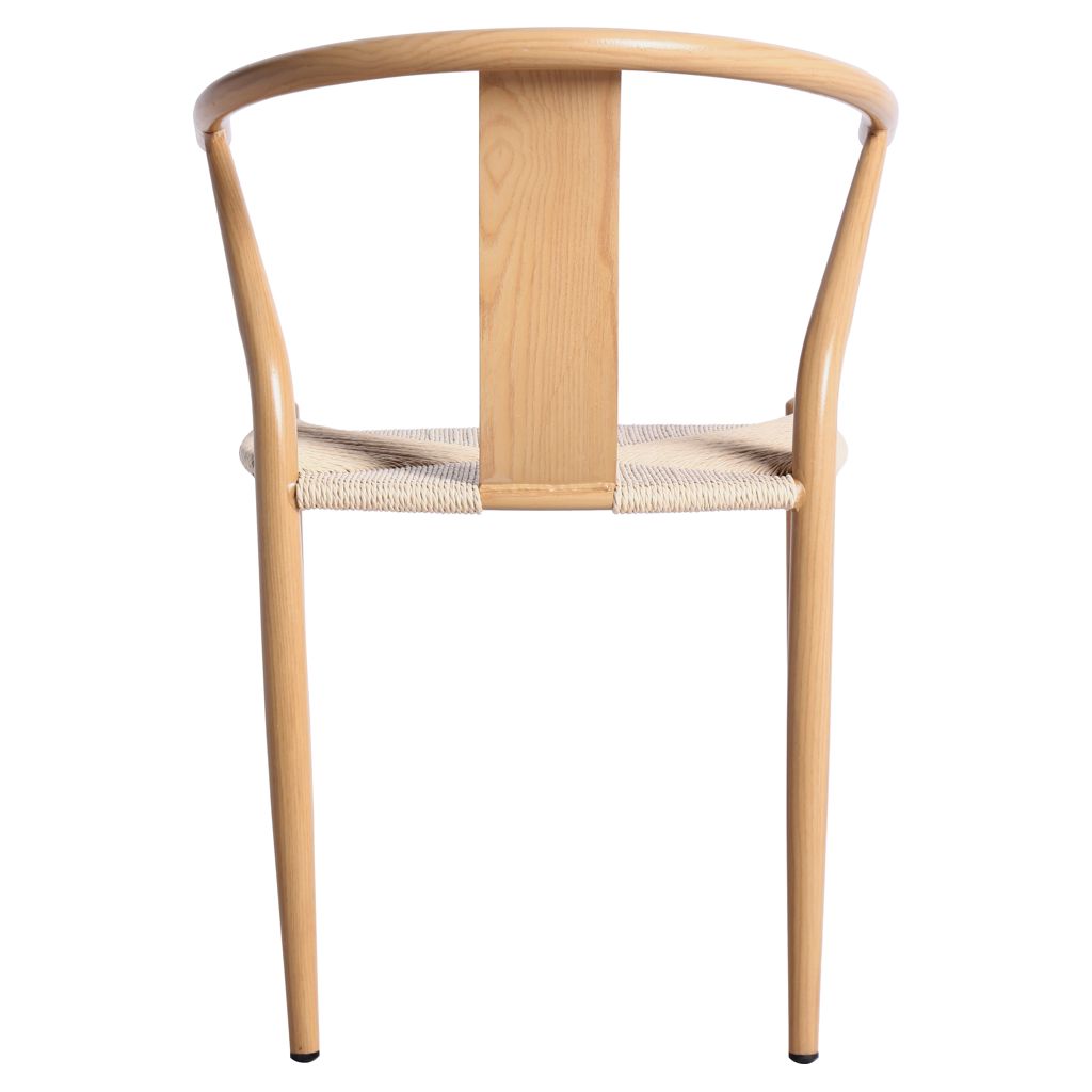 Le design moderne du milieu du siècle prend vie avec le siège en corde tissée à la main de couleur beige qui ajoute une touche définitive de richesse à ce siège à dossier arrondi.