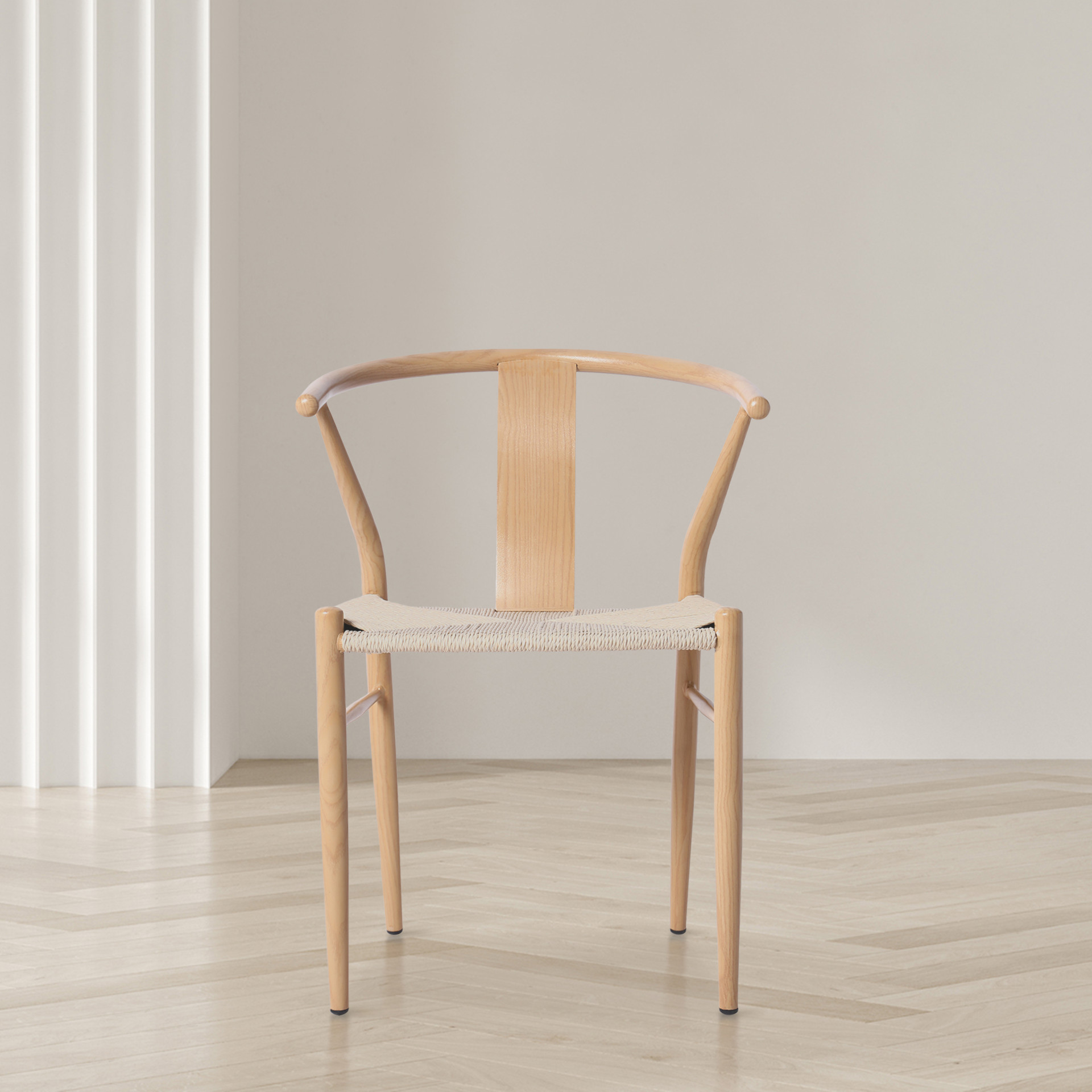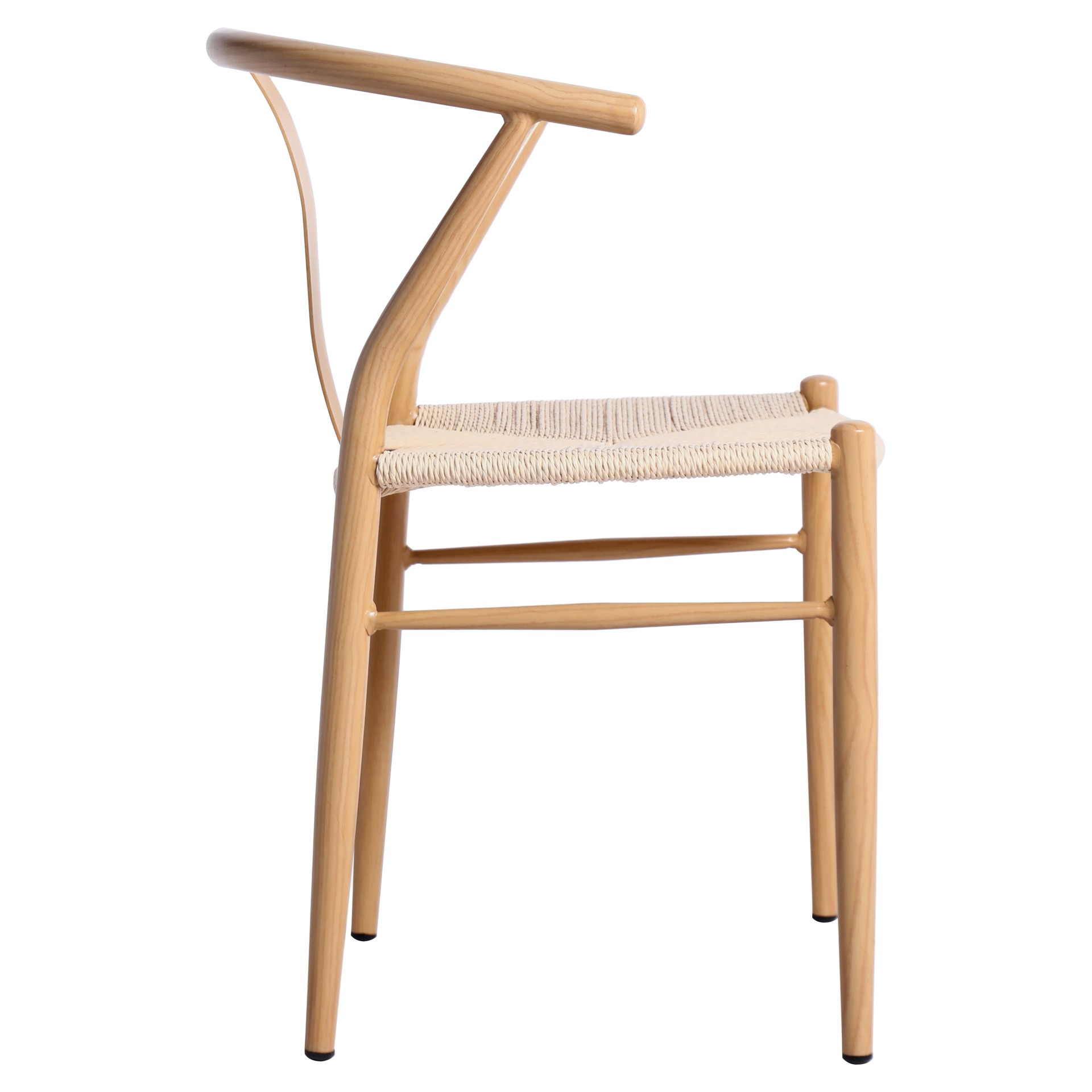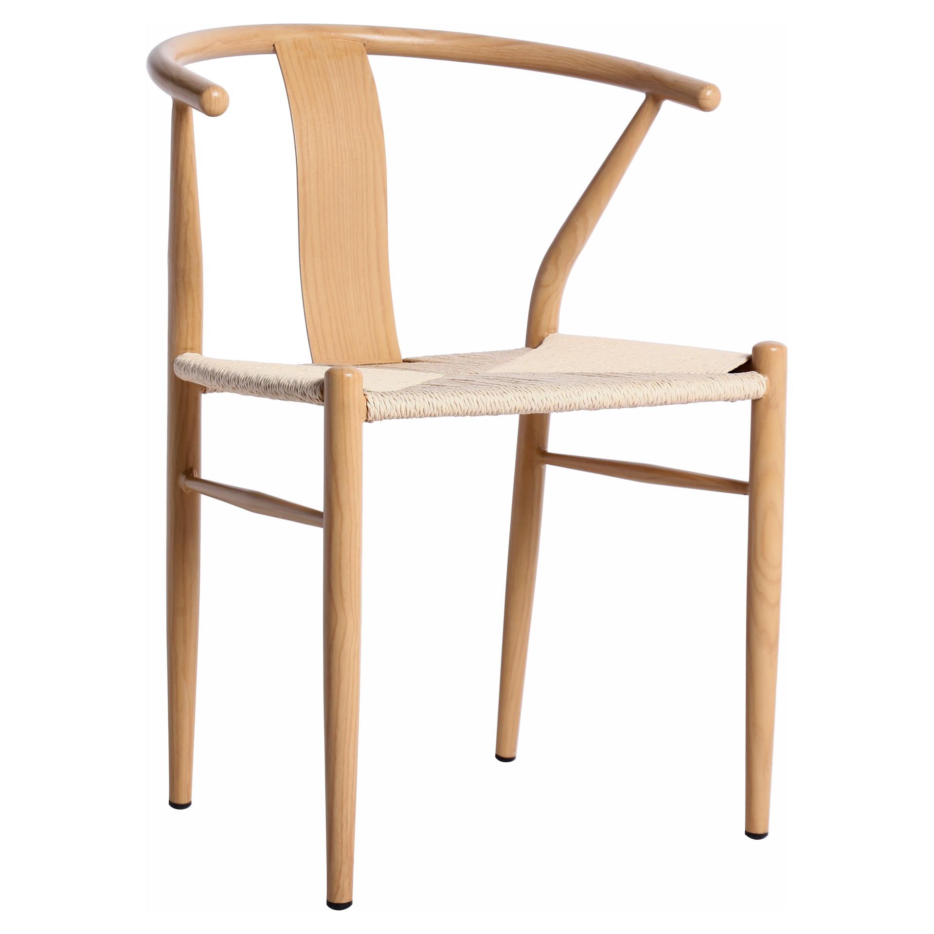 Le design moderne du milieu du siècle prend vie avec le siège en corde tissée à la main de couleur beige qui ajoute une touche définitive de richesse à ce siège à dossier arrondi.