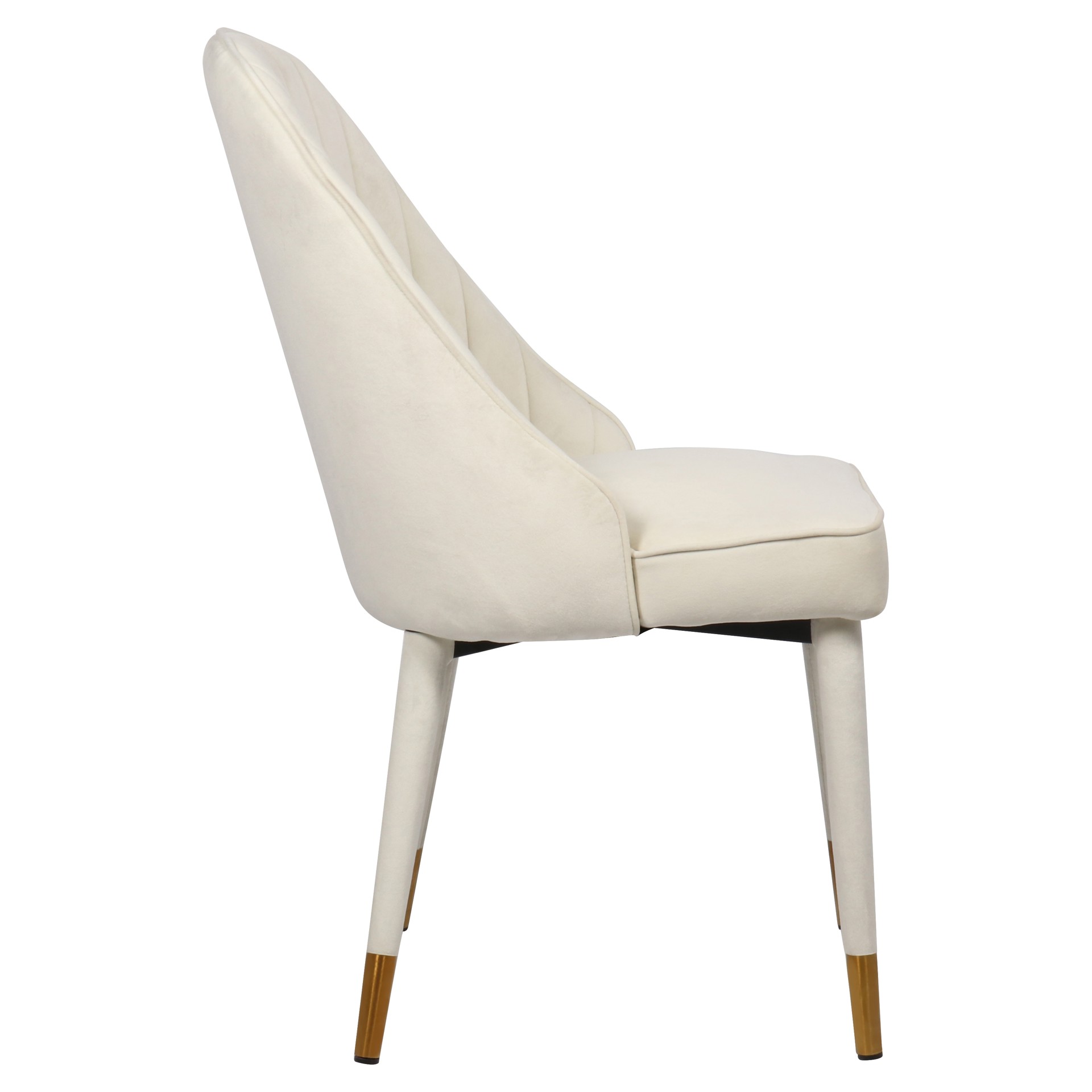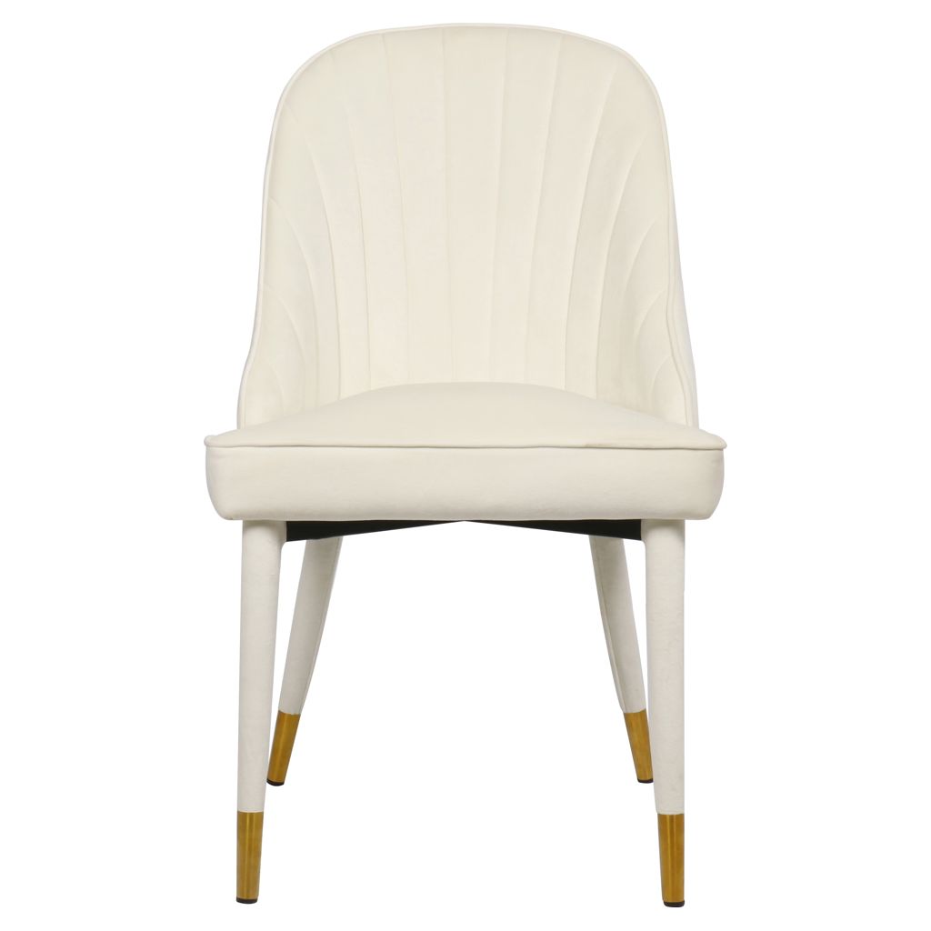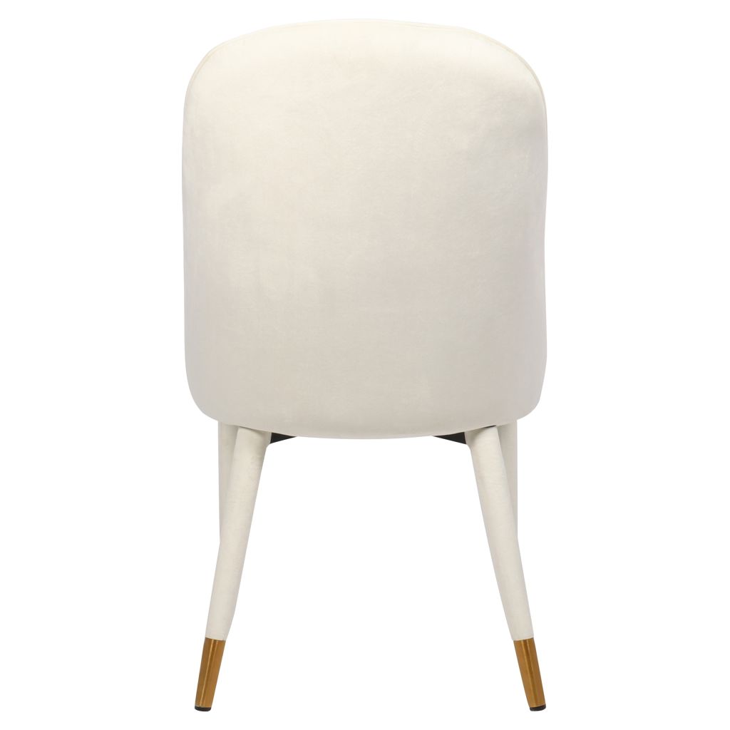 Un somptueux revêtement en velours crème doux recouvre l'extérieur de la chaise, ajoutant à son aspect luxueux et haut de gamme et à sa sensation douce et élégante.
